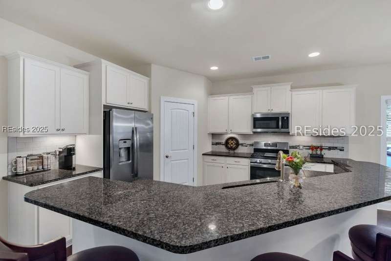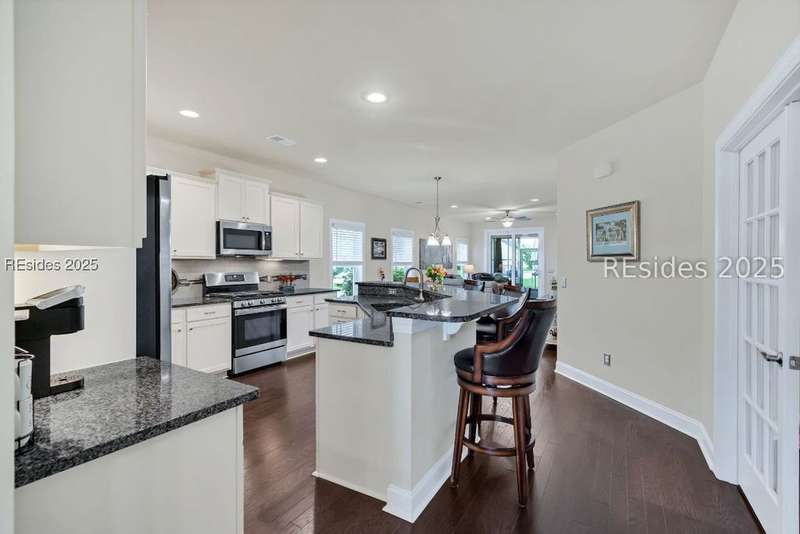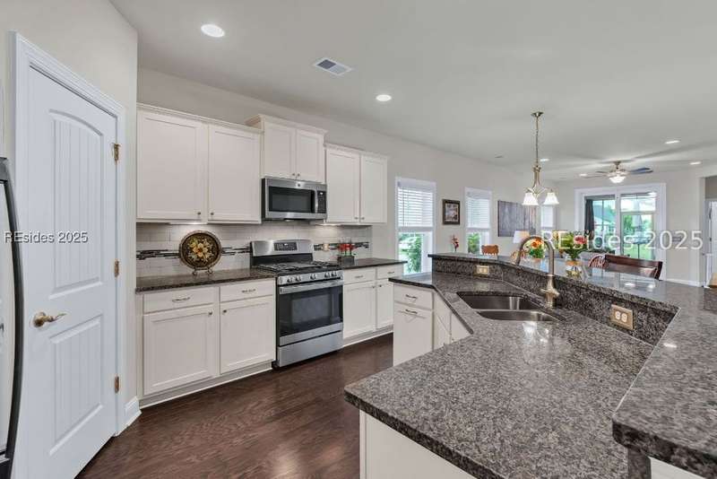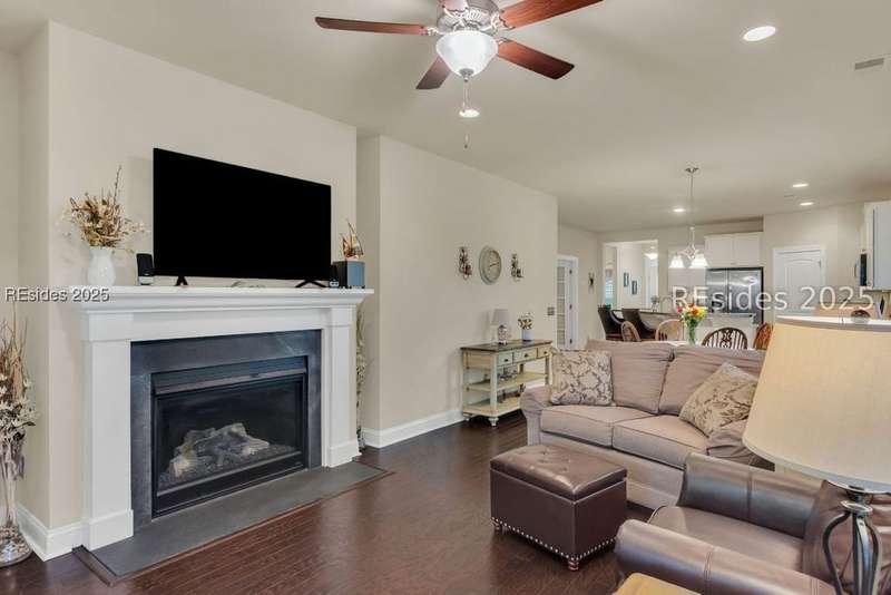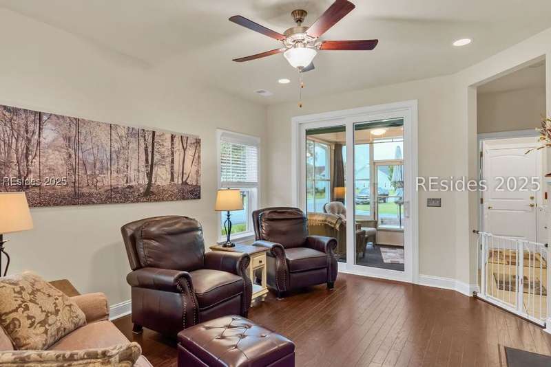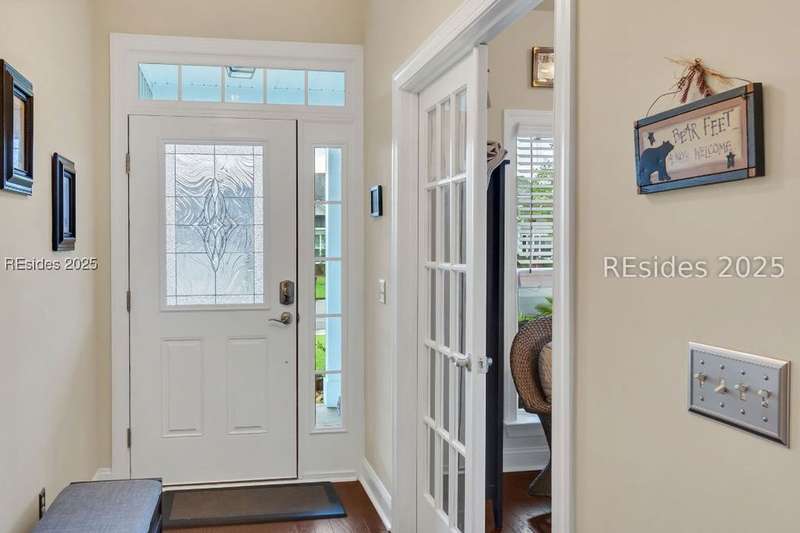 Walk to the golf club, pool, pickle ball, & gym!! Located behind the gates, in the original section of Hilton Head Lakes. This RealStar built, Orchid model features one level living, open concept w/hardwood floors throughout, kitchen w/many cabinets, granite, stylish backsplash, gas stove, walk-in pantry, two-flex rooms w/French doors- can be a formal dining room and home office, living room w/gas fireplace. Primary suite w/luxurious ensuite, double vanities, gorgeous walk-in shower. 2 Car Garage w/golf cart extension. Tankless water heater. 3-Seasons porch, screened w/vinyl sliders & roll-up sunshades. All on a corner lot w/premium landscaping. Perfect primary or second home. Community boat/RV storage. Conveniently located a short drive from Bluffton, Hilton Head, Beaufort, Savannah.