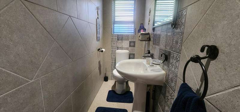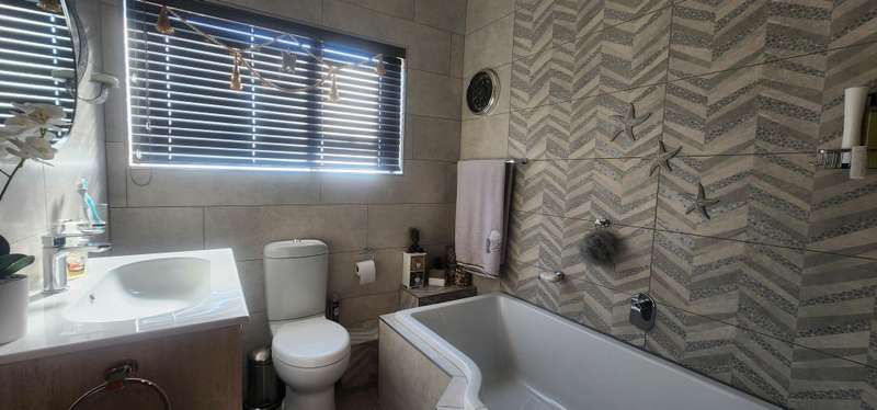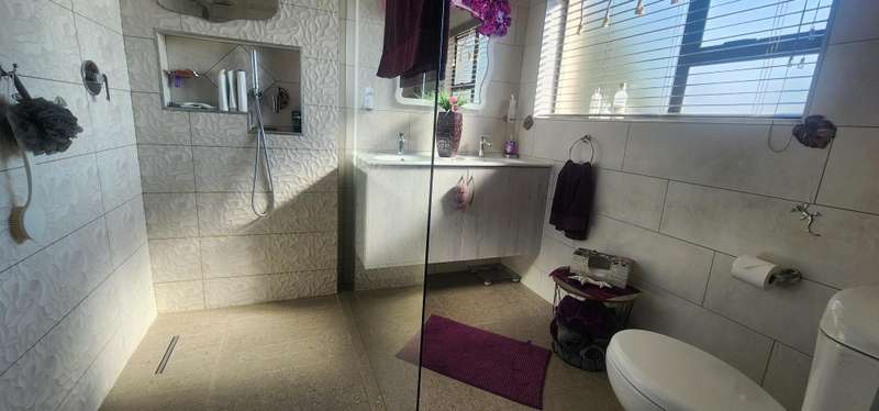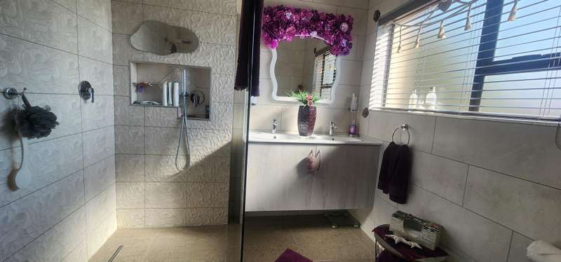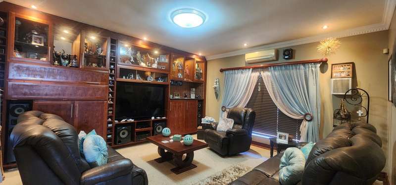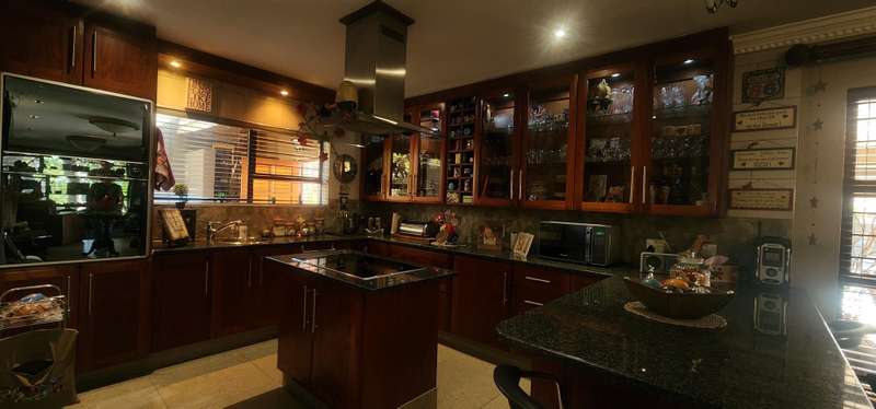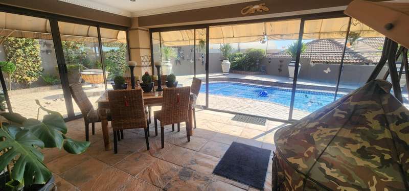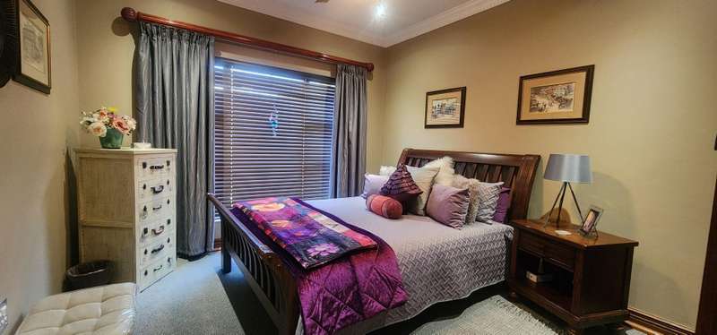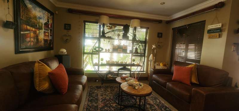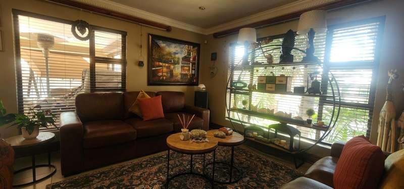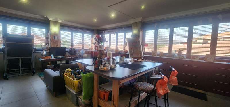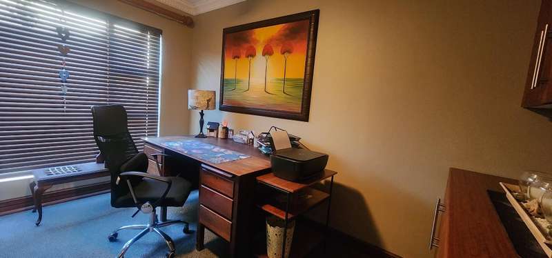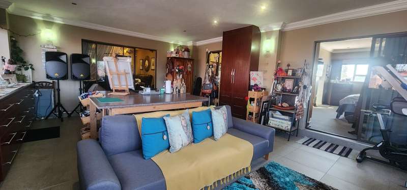 Light, bright and comfortable living arears. Opening onto under roof braai and pool area. Kitchen with solid cherry wood units, glass hob and granite tops. Study and guest bathroom. Upstairs there are 3 sunny bedrooms, 2 bathrooms and a warm inviting PJ lounge as well as an art studio. Two garages and double carport Jo-jo tank, 11KWA generator, Trellidors and blinds on all windows. Immaculate home! Move in ready!