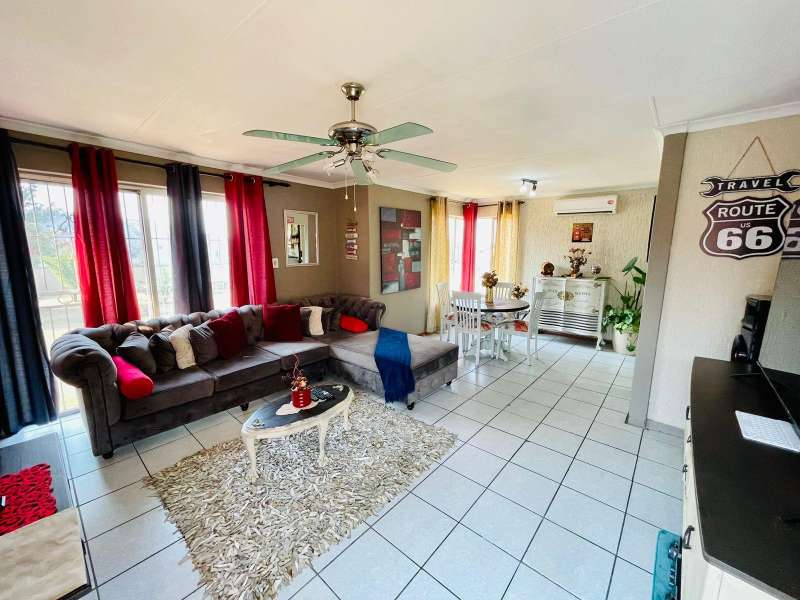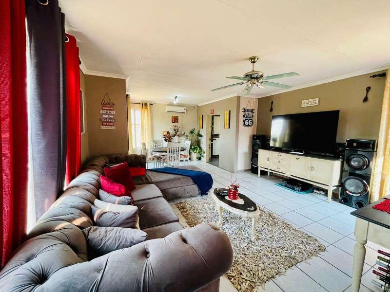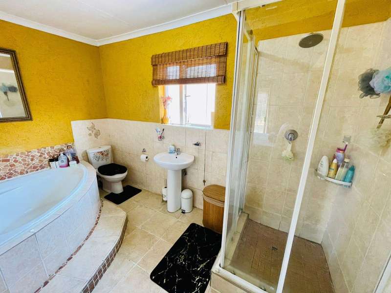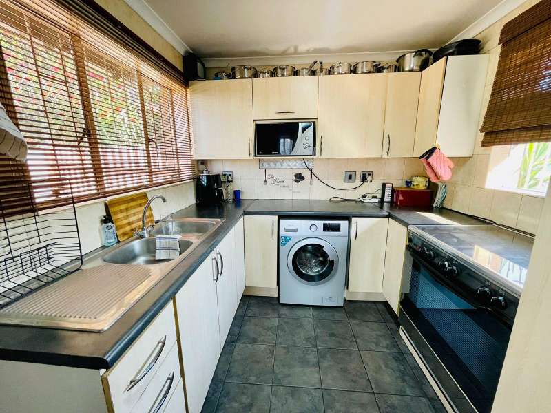 SPACIOUS FAMILY HOME consisting of 3 sunny bedrooms, 2 full bathrooms with shower, bath, basin & loo. Main bedroom with laminated flooring and rooms fitted with B.I.C.