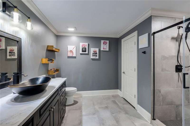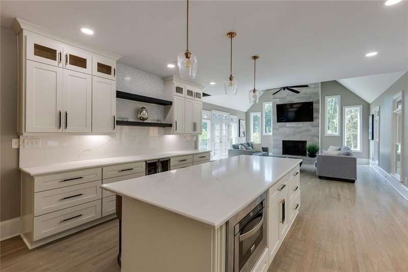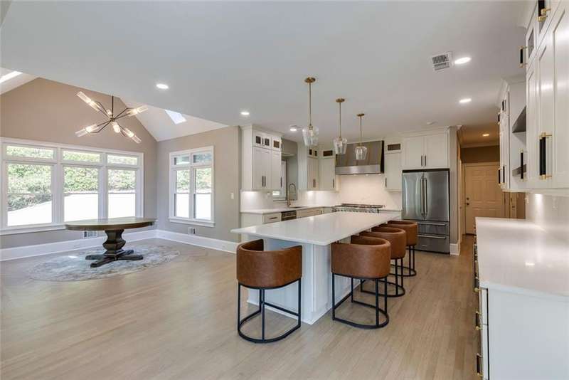 This stunning home, beautifully designed and thoughtfully renovated, sits on over an acre in a private cul-de-sac in the desirable Jett Ferry Manor neighborhood. Surrounded by professionally landscaped grounds, the home has been impeccably maintained and offers the perfect blend of elegance, comfort, and modern sophistication.The grand two-story marble foyer opens to soaring ceilings, hardwood floors, and both front and rear staircases. The formal living room with fireplace flows into a banquet-sized dining room, while the breathtaking two-story great room features a dramatic wall of windows, stacked-stone fireplace, and custom cabinetry, opening to an expansive two-tier deck overlooking the private fenced backyard. The chefs kitchen is a showpiece with custom white cabinetry, quartz counters, tile backsplash, professional-grade appliances, walk-in pantry, and a large center island where family and friends are sure to gather. A bright breakfast room with skylights connects to the vaulted family room with fireplace, creating an inviting everyday space. The oversized owners suite has an optional sitting area, spa-inspired bath, dual vanities, soaking tub, walk-in shower, and two spacious walk-in closets. Upstairs are three large ensuite bedrooms with large walk-in closets. A hidden sitting room is shared by two of the bedrooms-perfect for teenagers. The terrace level is built for entertaining and is equipped with a game room, full bar area, family room with fireplace, home theatre with custom seating and a state-of-the-art sound system. Not to be missed is a spectacular night sky ceiling. Additional spaces include a bedroom, full bath, office, exercise room, and flexible areas for whatever your lifestyle requires. With four fireplaces, new windows, an open layout, and attention to detail throughout, this home truly has it all. Located in Sandy Springs, its close to top public and private schools, shopping, dining, Dunwoody Country Club, and has offers convenient access to interstates for enjoying all Atlanta has to offer.