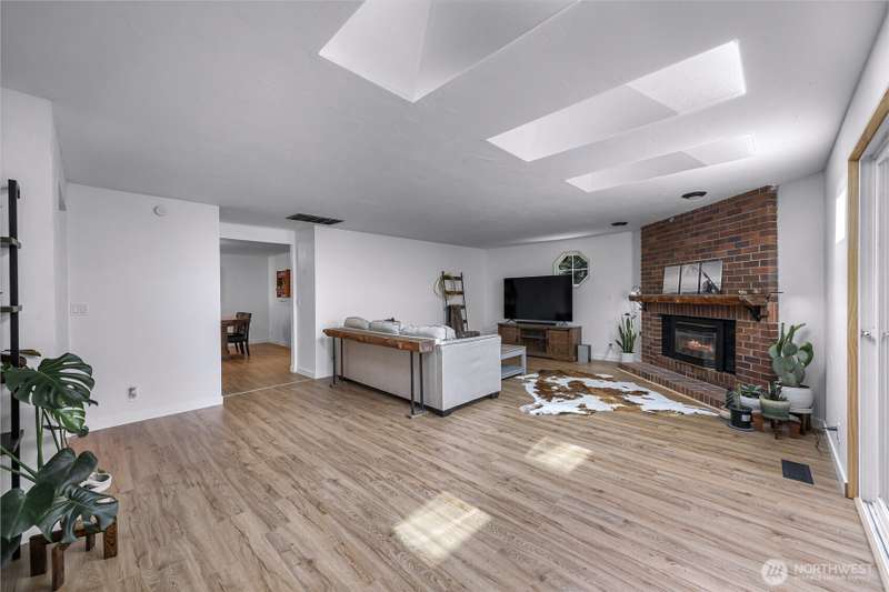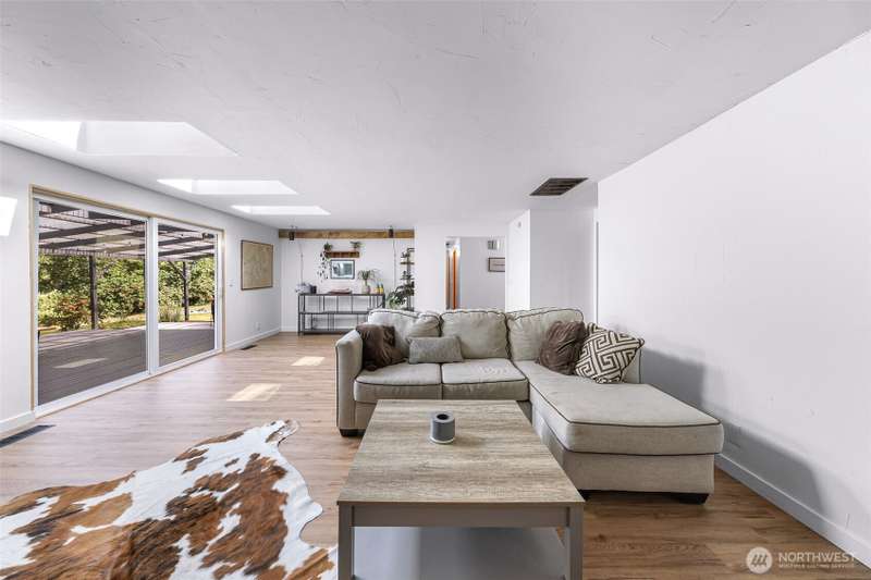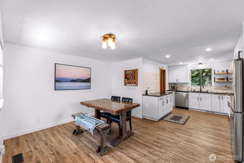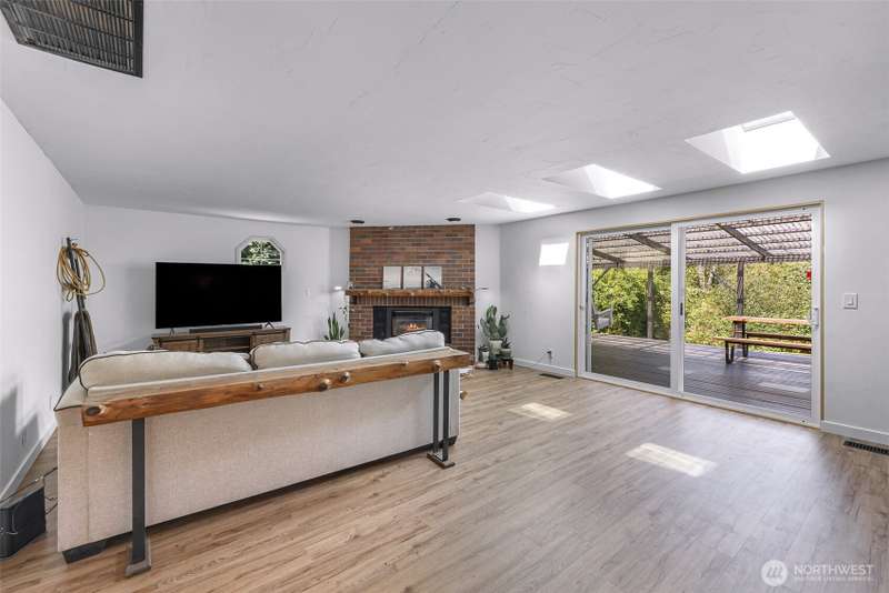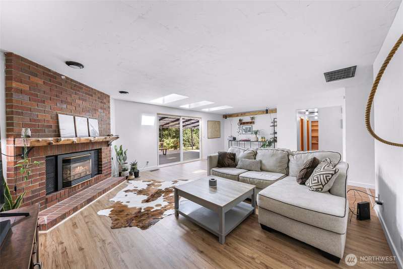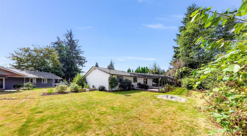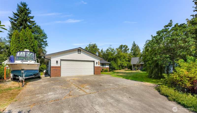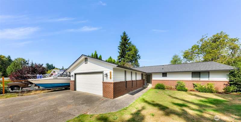 Wonderfully updated single level home on the Samish river. Huge living room with fireplace, skylights, & slider to the large covered back deck. Great back yard is just steps to the river to watch the salmon swim up-river to spawn. Established garden space with watering system, firepit, well cared for landscaping, & newer exterior paint. Open kitchen features new soapstone countertops, open shelving, & stainless steel appliances. Large garage connects to home through oversized utility room with new washer & dryer. Good sized bedrooms and baths with lots of updates throughout including LVP flooring, bathroom updates, new lighting, & A/C! Large lot with room for boat or RV parking on side of home. Come see all this great home has to offer!