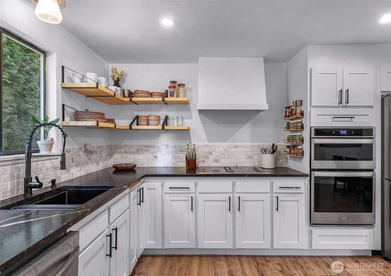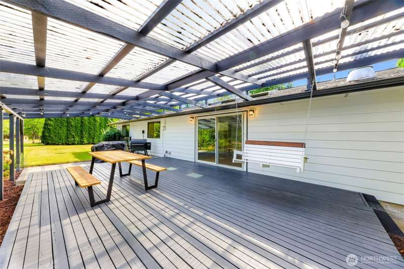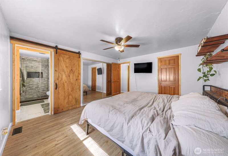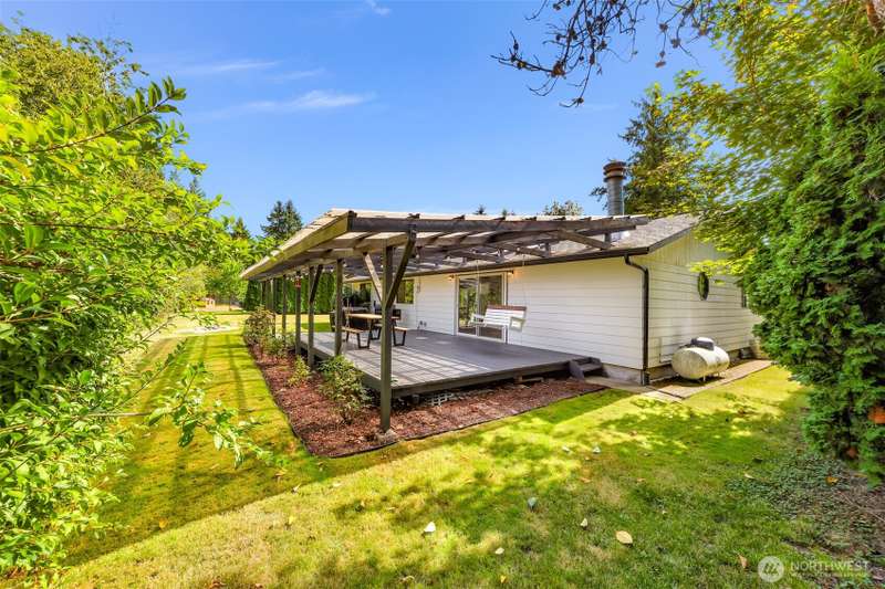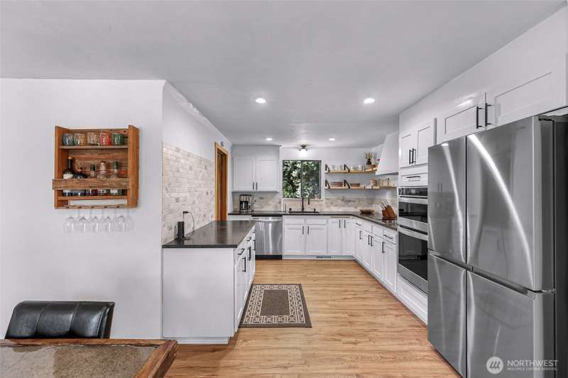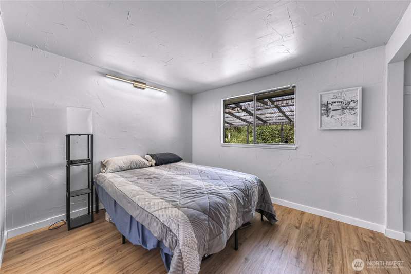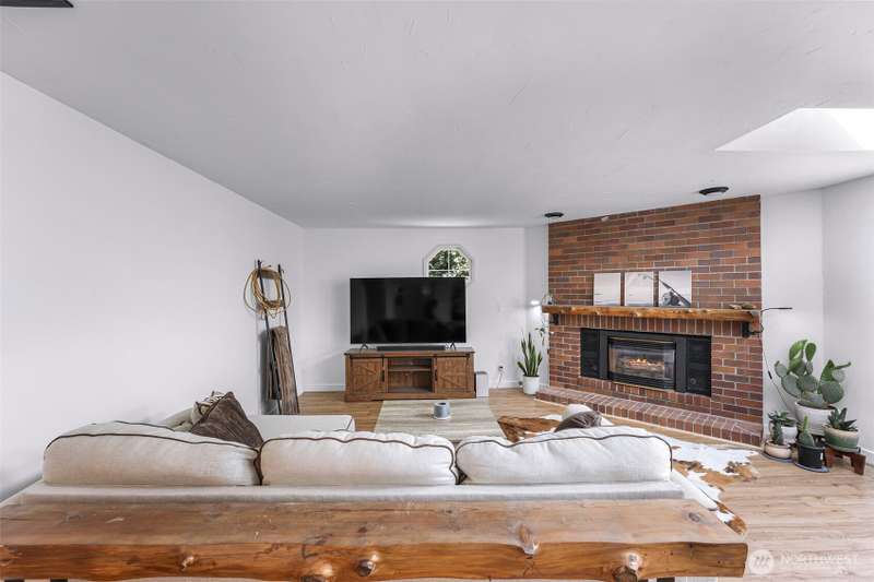 Wonderfully updated single level home on the Samish river. Huge living room with fireplace, skylights, & slider to the large covered back deck. Great back yard is just steps to the river to watch the salmon swim up-river to spawn. Established garden space with watering system, firepit, well cared for landscaping, & newer exterior paint. Open kitchen features new soapstone countertops, open shelving, & stainless steel appliances. Large garage connects to home through oversized utility room with new washer & dryer. Good sized bedrooms and baths with lots of updates throughout including LVP flooring, bathroom updates, new lighting, & A/C! Large lot with room for boat or RV parking on side of home. Come see all this great home has to offer!