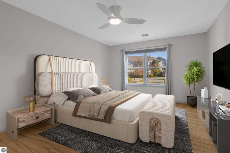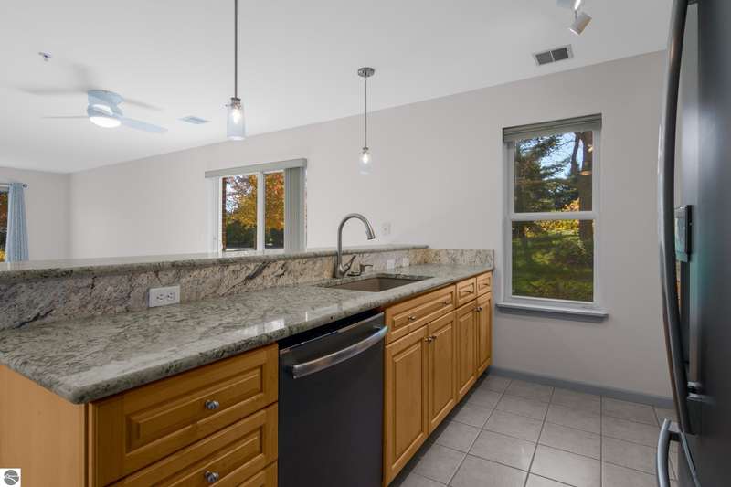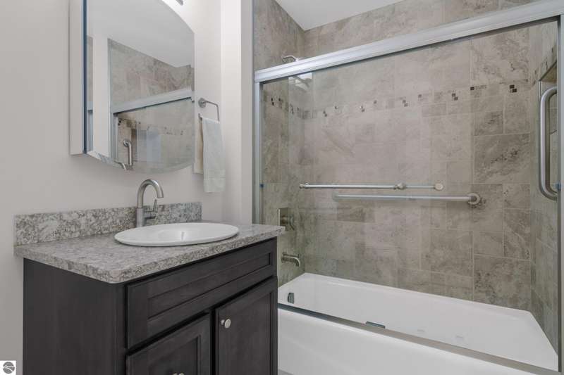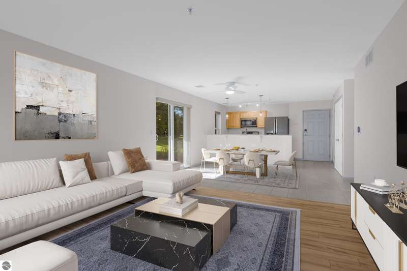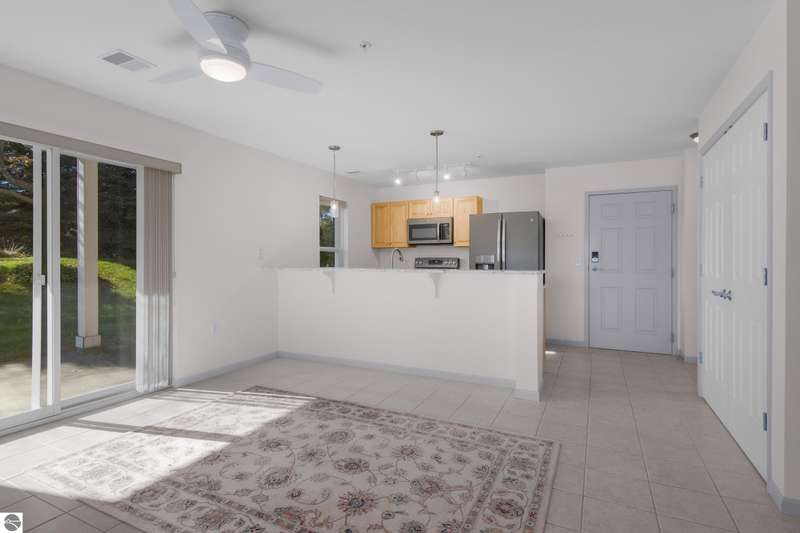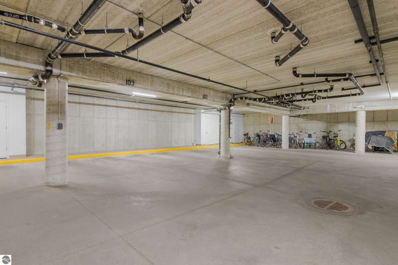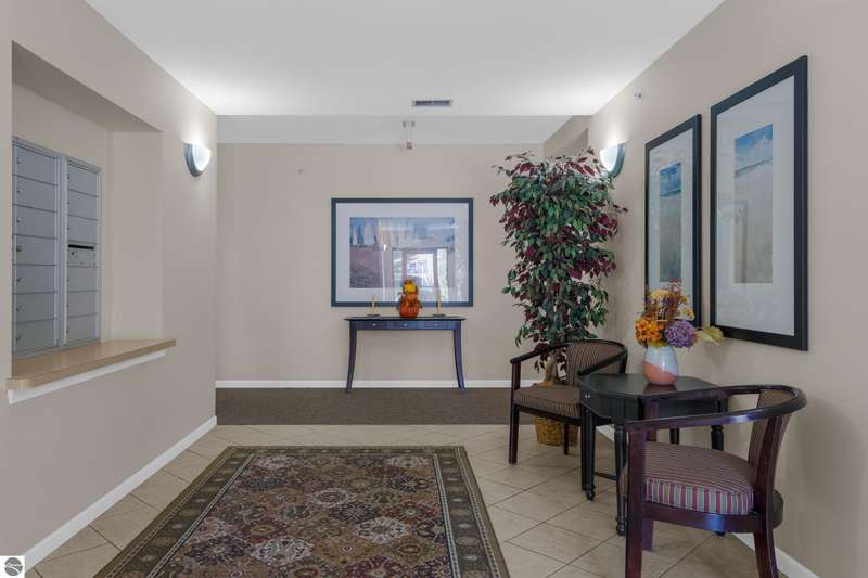 Easy lakeside living! Enjoy the convenience of first floor, one level living in this beautifully updated 2BR/2BA condo with a south facing walk-out patio, (perfect for soaking up the sun or relaxing with a morning coffee), and 700 feet of shared Boardman Lake frontage. The kitchen and bathroom have been tastefully remodeled and the spacious primary suite includes a large bathroom and walk in closet. This condo also includes the convenience of a secure assigned parking space in the heated underground garage as well as a secure storage unit. Pets are welcome!
