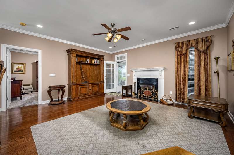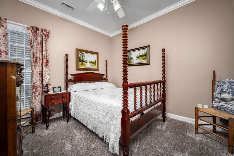SOUGHT AFTER GREYSTONE! This zero-lot-line, single-story 3 bedroom 2 bath home offers a condo-style living experience, situated at the end of a street on a double-sized lot within a cul-de-sac. The open floor plan features nine-foot ceilings with crown molding, a spacious family room complete with a fireplace, and a kitchen equipped with a large raised bar plus a dining area. The pantry is an added convenience, and all kitchen appliances are included. Additionally, the property boasts a covered patio, a new roof, and a permanent stairway leading to a storage area above the two-car garage.