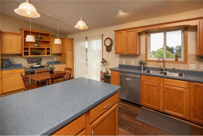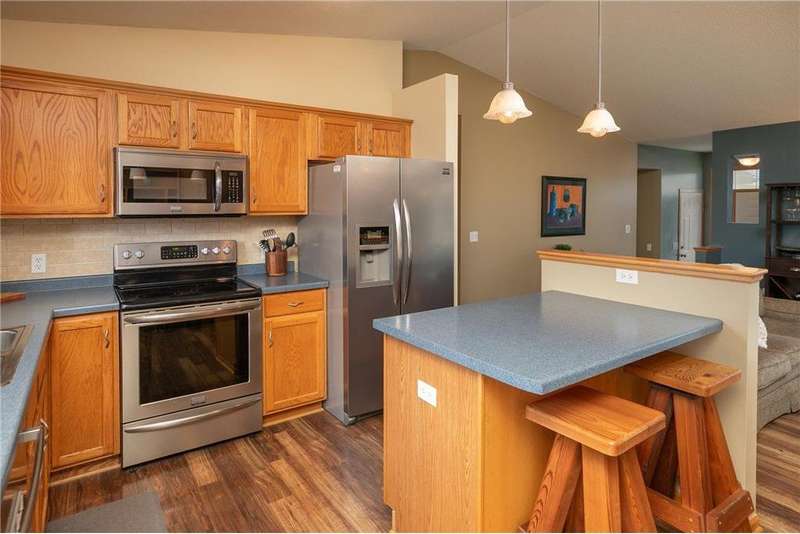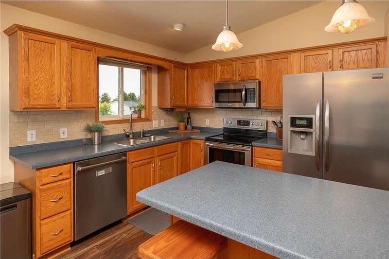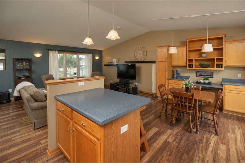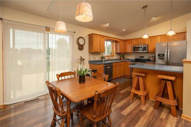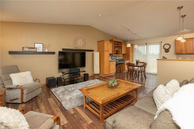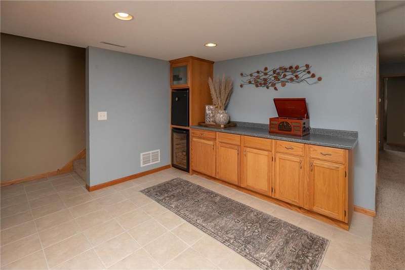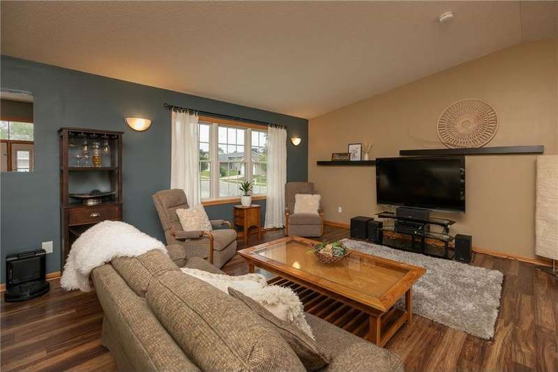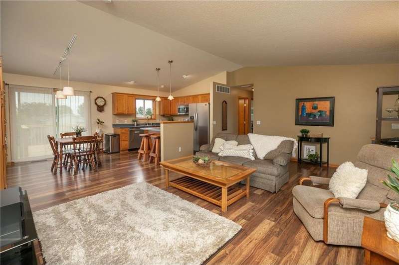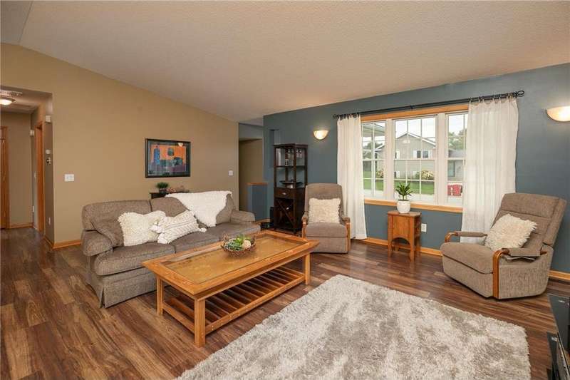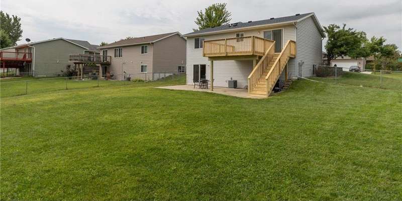 This spacious 4 bedroom, 2 bath walkout raised ranch offers more living area than a traditional ranch design. You feel it the moment you enter the two-story foyer featuring a custom wood accent wall that makes a striking first impression. The sun-filled and very spacious living room showcases vaulted ceilings and beautiful wood plank flooring. The open floor plan flows into the dining space with a built-in command center giving plenty of extra cabinet and pantry storage and is also a great space for a coffee bar. Step outside to the brand-new oversized deck and fully fenced backyard perfect for relaxing or entertaining. You’ll love the spacious main-floor primary bedroom with two closets, while the second main-floor bedroom is also generously sized. The bright, open lower level features a large family room with wine and beverage fridges, plumbing ready for a future wet bar, and walks out to a huge patio. Two additional bedrooms and a second full bath complete this level, along with a large laundry room and abundant storage in the mechanical room. Plenty of space indoors and out! Schedule your tour today! Updates & Features: Furnace/AC (2019), Roof (2016), Water Softener (2023), Dishwasher (2024).