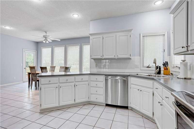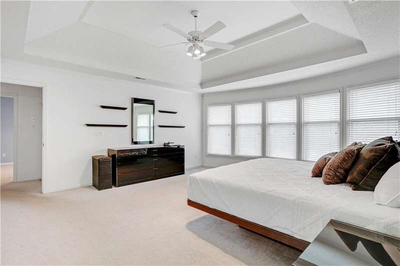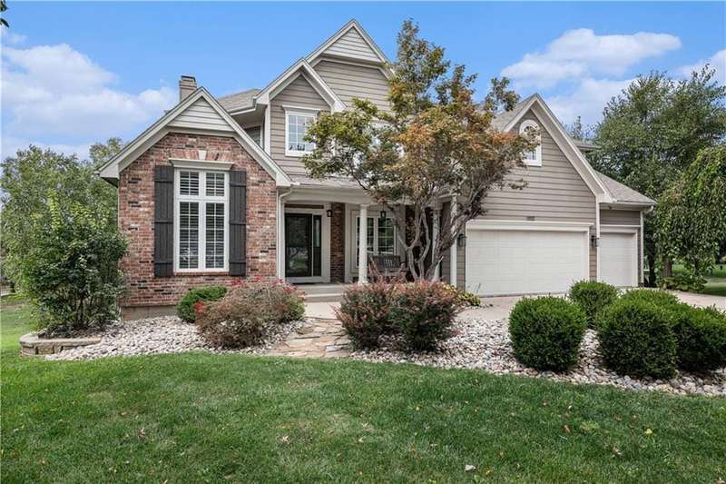 Located in sought after Bridgestone of Windham Park, this corner lot home on a cul-de-sac has an Extra Large side entry THREE CAR Garage with new High Bay Doors, LiftMaster Jackshaft openers (Wi-Fi), and a Full Width drive. Outside there is an Oversized Multi Level Paver Patio with seating, New Exterior Paint (5/25), and Lifetime Certainteed Grand Manor Roof. Inside the front door you are met with a Double Staircase, Formal Dining Room, Living Room/Office, and Half Bath. To the rear of the home is the Oversized Kitchen with Stainless Steel Appliances, and Eating Area. Off the kitchen is the Laundry Room and access to the Outdoor Paver Patio. Next to the kitchen is a Family Room with Gas Log Fireplace. Upstairs there are 4 Bedrooms. A Very Large Primary Suite with a full bank of windows, Private Bath with double vanity, shower, and jetted tub. Two additional Bedrooms share a Jack and Jill Bathroom, and the Fourth Bedroom has a Private Bath. The Lower Level is Finished with a Built in Entertainment System which stays with the home, stubbed Bar, additional Nonconforming Room that can be used as an Office or Workout Room, which adjoins to a full bath. Blue Valley schools are minutes away, Overland Park trail is accessible at the end of the cul-de-sac, and convenient shopping surrounds the area. Make this large home yours with paint, carpet and some updating. Buyer to verify taxes and square footage.