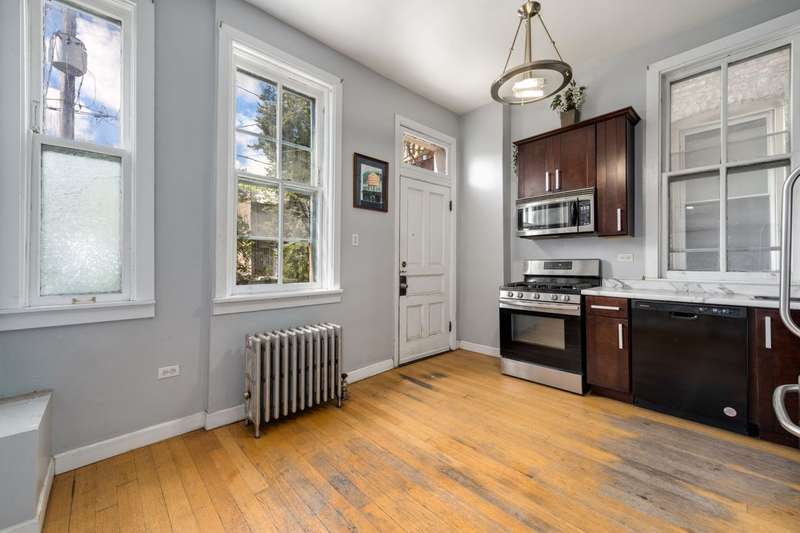 Great opportunity to live on Berkeley Ave. One of the most lovely historic streets in North Kenwood conveniently located with just blocks to the lake, Du Sable LSD & interstate. The property has been updated over the years however still maintains many of the original details through out the home. Some of the wonderful vintage details & craftsmanship include hardwood floors throughout, two fireplaces, original tall wood windows to let in an abundance of natural light and dramatically high ceilings. This architecturally beautiful grey stone row house with landmark status also features 4 bedrooms and 3 bathrooms. Some of the past updates include the kitchen and the first & second floor bathrooms. The walkout basement is awaiting your vision and remodeling ideas to allow for use of this spacious living space. This home has amazing potential for builders with the high interest in the area for move in ready homes that still have kept the vintage charm and also great opportunity for buyers with vision and appreciation for well preserved vintage details that would like to update at their own pace as well!