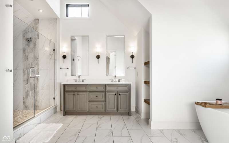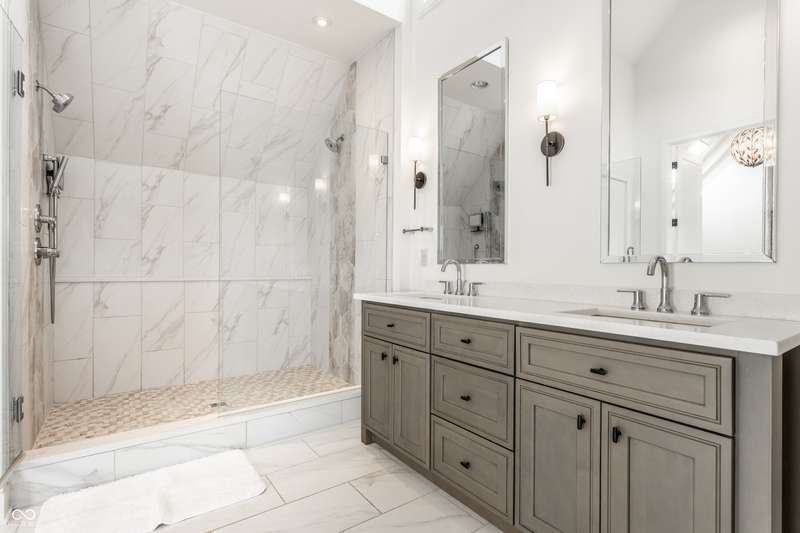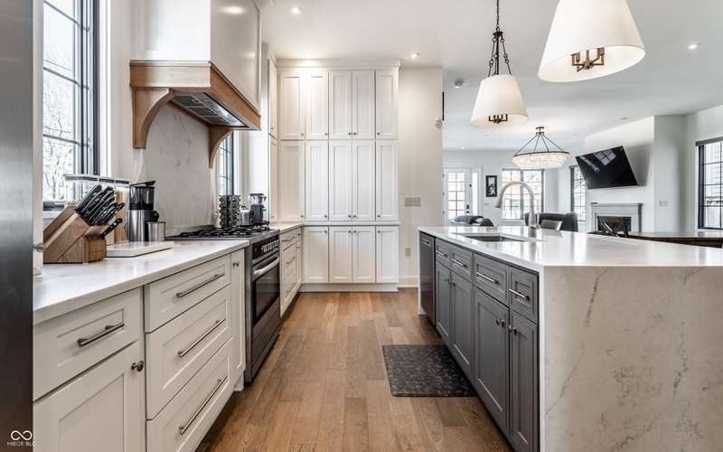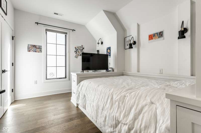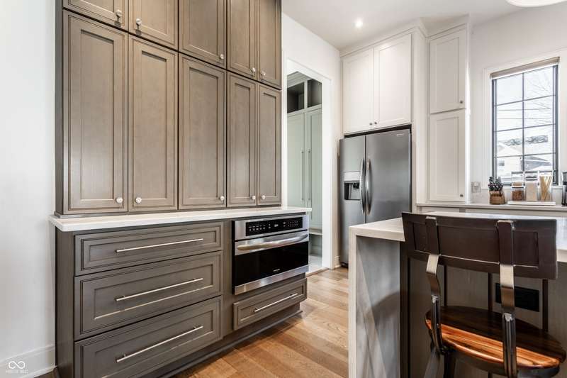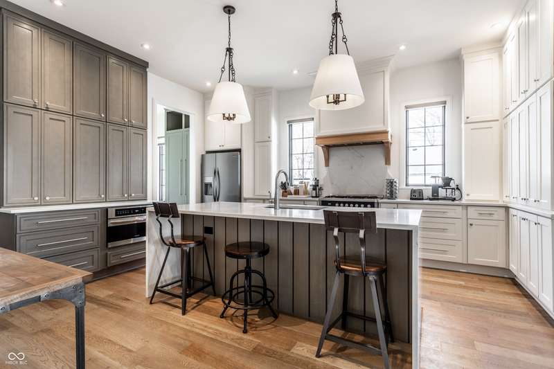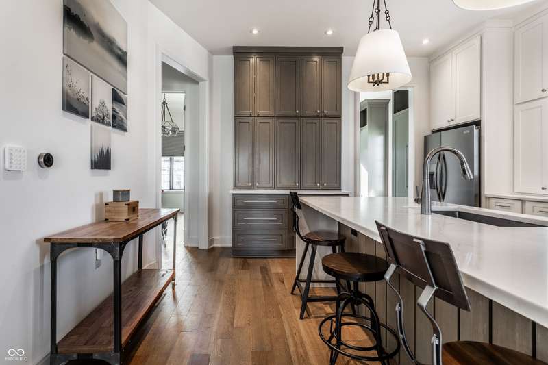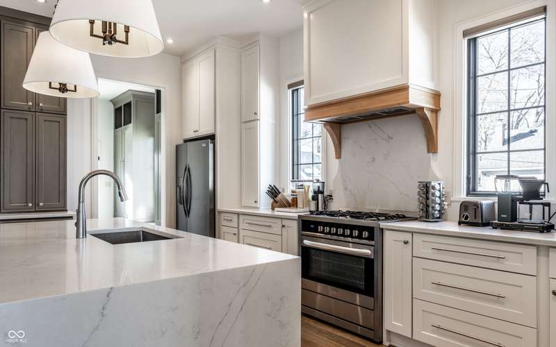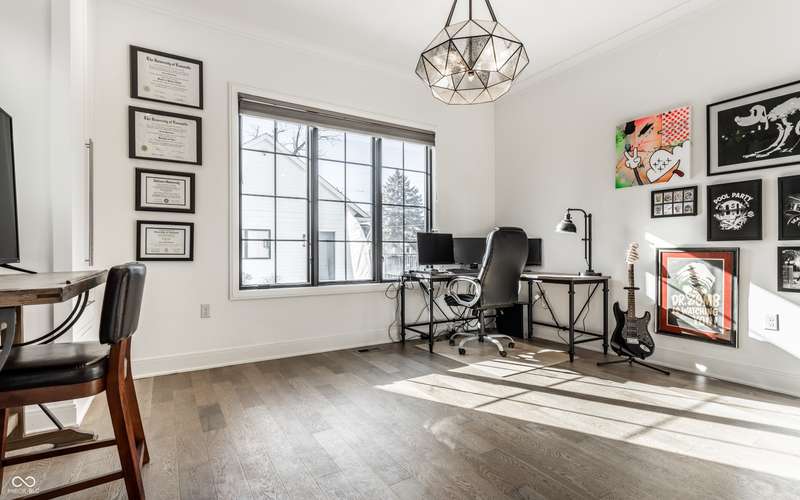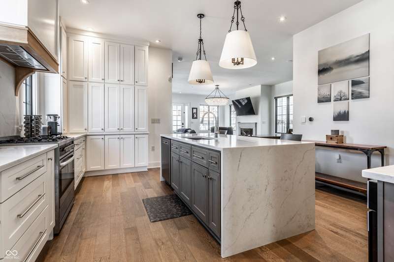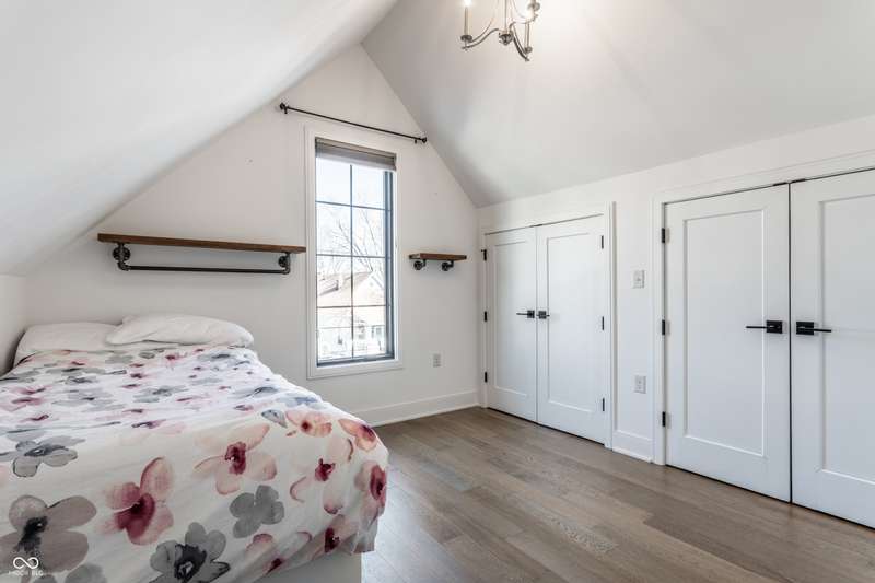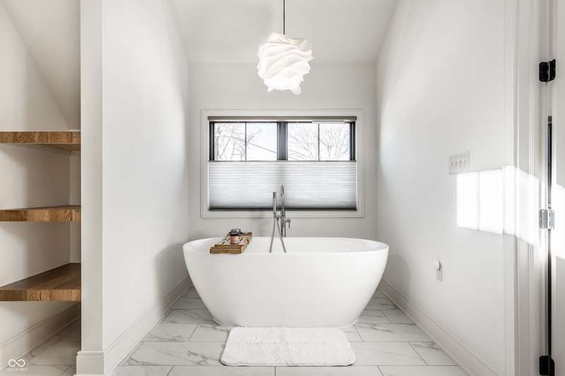Nestled in the center of the vibrant Springdale neighborhood, and renovated with a meticulous eye for detail by renowned local builder, aaNovo, this home is worth slowing your scroll. Full of custom finishes and brimming with sophisticated design including beautiful engineered white oak hardwood floors throughout and custom built-ins at every turn. It is said the heart of a home is the kitchen and this one is no exception: stunning design meets functionality and provides the perfect hosting atmosphere. Custom floor to ceiling, solid wood, soft-close Shaker cabinetry, quartz counters, quality appliances and custom range hood. Open floorplan with large living room where the gas fireplace with custom limestone surround keeps things cozy on cold February nights. Bedroom on main floor with attached jack and jill bath = great guestroom or office setup. Large Pella Proline, Energy Star windows let in loads of natural light - which can be adjusted as needed with custom, electronic blinds. Primary bedroom with skylights, walk-in closet and a bathroom that is swoon-worthy: double sinks, soaking tub and walk in shower with dual shower heads. Second bedroom features really unique built in bed, shelves and desk combo to maximize space. Full privacy fence in the backyard with a poured concrete patio and an oversized garage built in 2019. All of this plus fantastic near eastside amenities within walking distance such as the Pogue's Run Trail, Spades Park, Amelia's, the Kan Kan and one of Indy's most magical events, the Feast of Lanterns. Enjoy an active and engaged neighborhood association, easy interstate access and the convenience of being just minutes from downtown. If you want to love where you live, this home is worth a look!