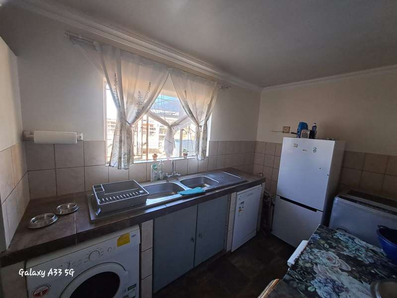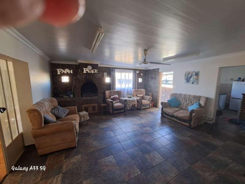 This family home offers you 3 Bedrooms with build in cupboards tiled floors in two bedrooms and the third bedroom with a carpet Open plan kitchen and laundry Kitchen with cupboards gas stove with oven tv room with built in braai dining room and lounge Double garage and double carport motorize garage doors Remote gate fenced Bore hole fully equip nd a big yard the home with a warm hart don't miss out on this offer