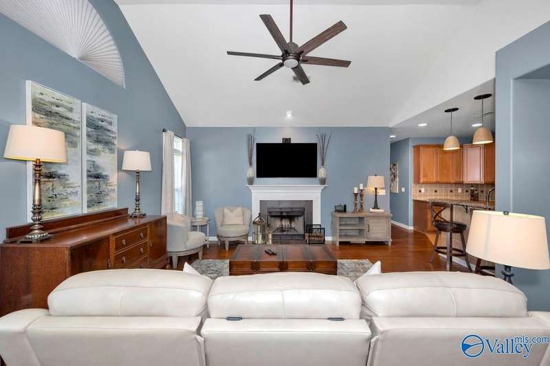 Prime end unit w/ unbeatable convenience! This spacious 2-bedroom, 2-bath townhome showcases beautiful hand-scraped hardwood flowing through the living spaces & thoughtfully updated kitchen & baths. Step into the elegant dining area w/ its striking column details & seamless flow into the family room, w/ soaring vaulted ceilings, a cozy fireplace & floor-to-ceiling windows that flood the space w/ sunlight. The kitchen boasts sleek granite counters, composite sink, stainless appliances, & tile backsplash. Retreat to the generous primary suite with ensuite featuring tile shower and granite countertops. Complete with a 2-car garage, community pool and clubhouse; don't let this one get away!