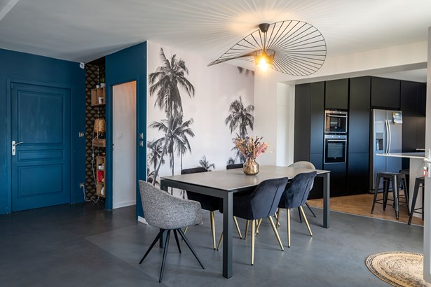 Outside, a lovely terrace overlooks a carefully tended garden planted with trees. A bioclimatic pergola lets you enjoy the space in all seasons, while an in-ground swimming pool adds a relaxing dimension to this living space. The fully enclosed grounds guarantee privacy and security.