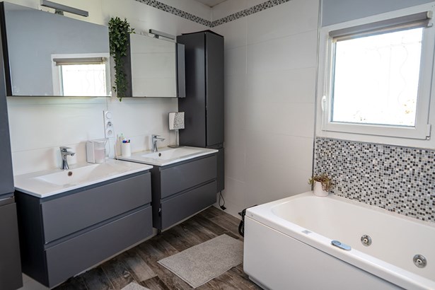 Upstairs, three bedrooms and a shower room provide a separate sleeping area, perfect for welcoming children or guests. The balanced layout, fluid distribution of rooms and quality finishes underline the comfort of this family home.