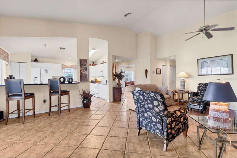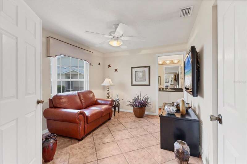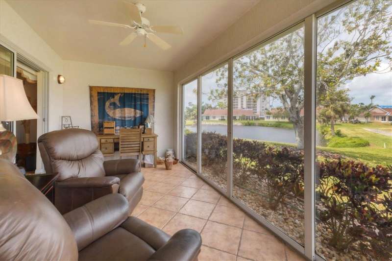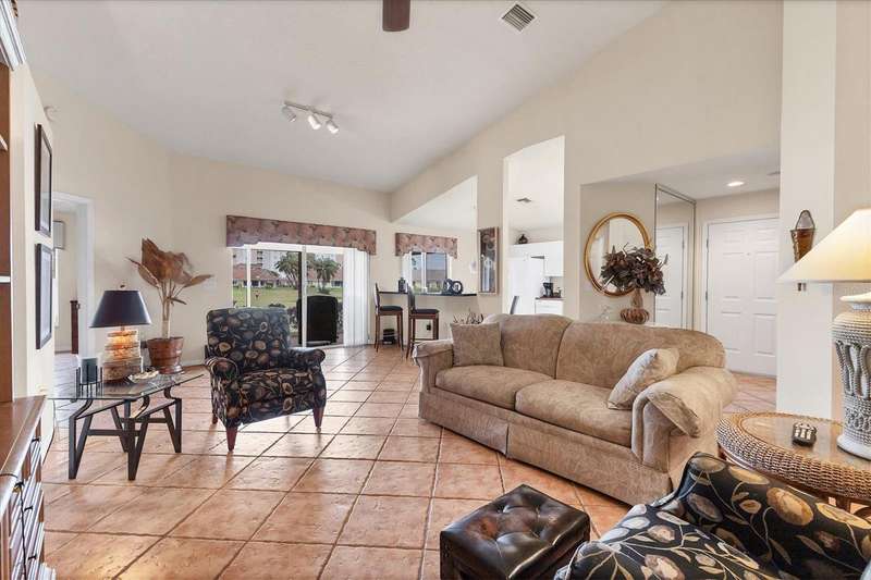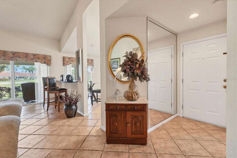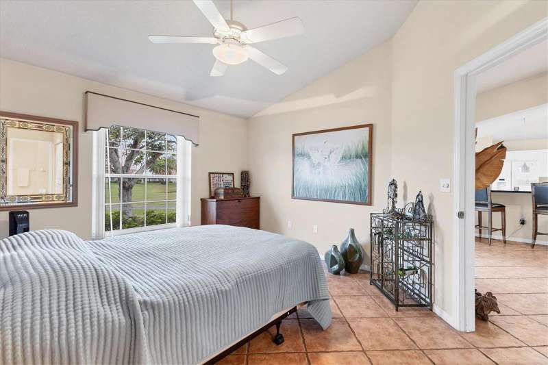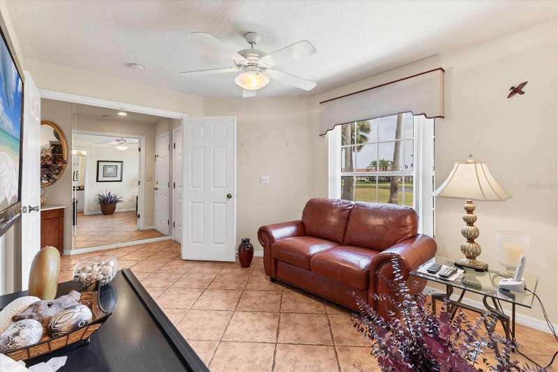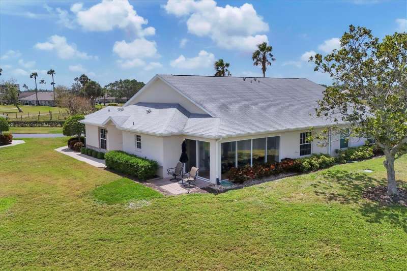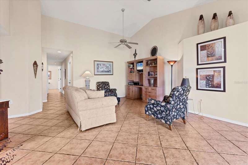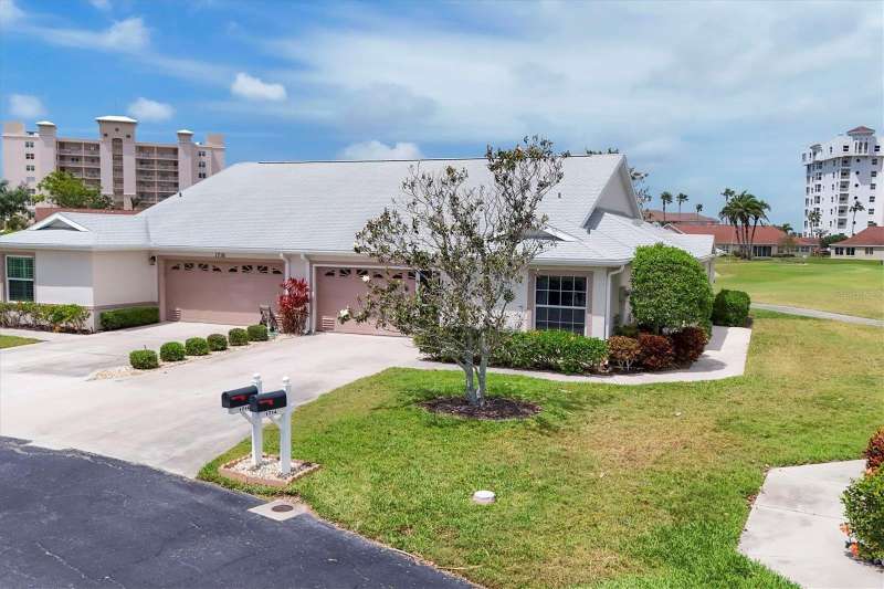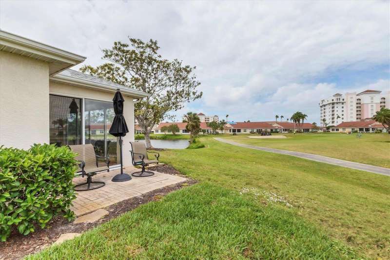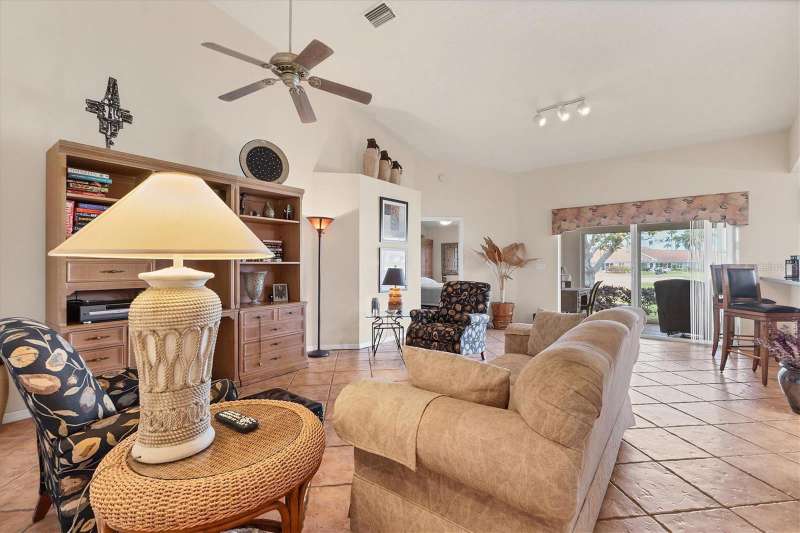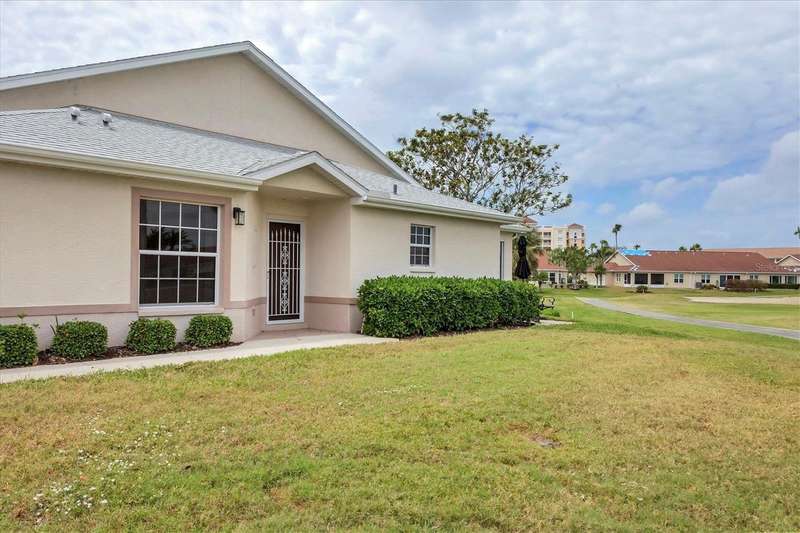 Welcome to this three bedroom, two bath paired villa with a rare two car garage, located on a quiet cul-de-sac in a gated community on Terra Ceia Bay. The home offers an open layout with vaulted ceilings in the great room and peaceful views of the water and golf course from the back of the house. A Florida room under air provides year-round enjoyment, while a side patio offers additional outdoor space. Inside, the primary suite features ample closet space and an en-suite bath with dual vanities and a step-in shower. The second guest bedroom is tucked down the hallway while the third bedroom is currently set up as a den with double doors and pocketed access to the shared hall bath. The laundry area is also conveniently located inside the home. Residents enjoy access to a scenic waterfront boardwalk, nature trails, and a community pool. Optional membership to Terra Ceia Bay Country Club includes golf, racquet courts, a fitness center, and an additional pool. The Back Bay Grill, open to the public, offers a relaxed spot to dine and connect with neighbors.