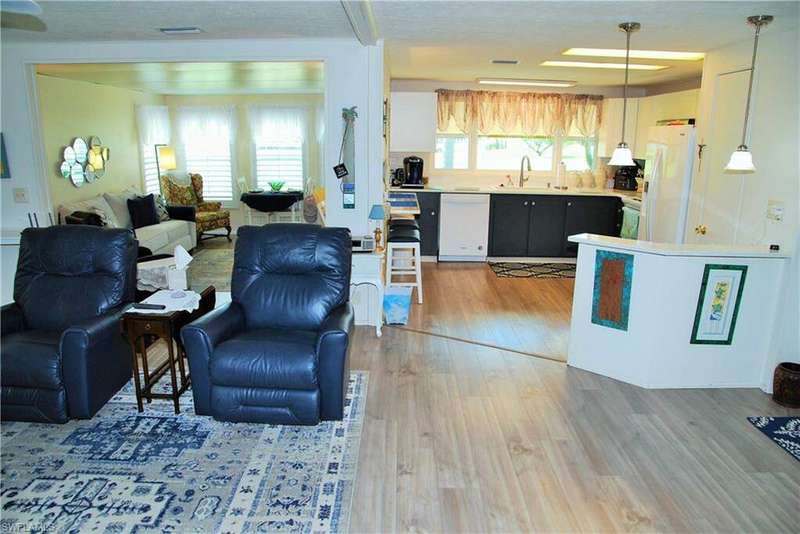 Experience an airy, light-filled retreat with impressive updates and sweeping golf course views in the coveted Six Lakes Country Club. This standout home has undergone a series of essential updates, making it truly exceptional. Recent enhancements include an A/C unit installed in 2023, a 2022 water heater, and a post-Ian roof added in 2022. The extra-large Florida Room now features elegant river rock flooring, perfect for year-round enjoyment. The kitchen is a true showstopper, featuring newer quartz countertops, a newer sink, a faucet, a garbage disposal, matching appliances, a fridge, and a range. Step onto your lanai and enjoy front-row seats to breathtaking sunsets over the golf course, the perfect spot to relax and unwind. The home's fresh, modern appeal is further accentuated by stylish plantation shutters, designer light fixtures, and new windows throughout most of the residence. Other notable upgrades include a new paver driveway (2024), adding to the home's curb appeal, new flooring throughout (except for the master bedroom), newer screen doors on the lanai, and sleek shutters in the large Florida room. The oversized shed boasts space for 2 golf carts. Located in the gated, resident-owned, and self-governed 55+ community of Six Lakes Country Club, this home is more than just a place to live; it's a lifestyle. Six Lakes Golf & Country Club is a well-maintained, vibrant golfing community where the greens are as inviting as the camaraderie. With an active pro shop, thriving men's and women's leagues, and standout events like "Nine and Dine" and thrilling night-light golf, there's always something exciting on the horizon for golf enthusiasts of all skill levels. Additional amenities include a clubhouse with dining, a pool & spa, tennis, pickleball, a fitness center & various curated social activities. Enjoy the best of Florida living today!