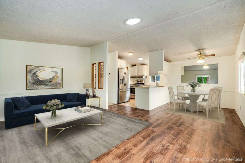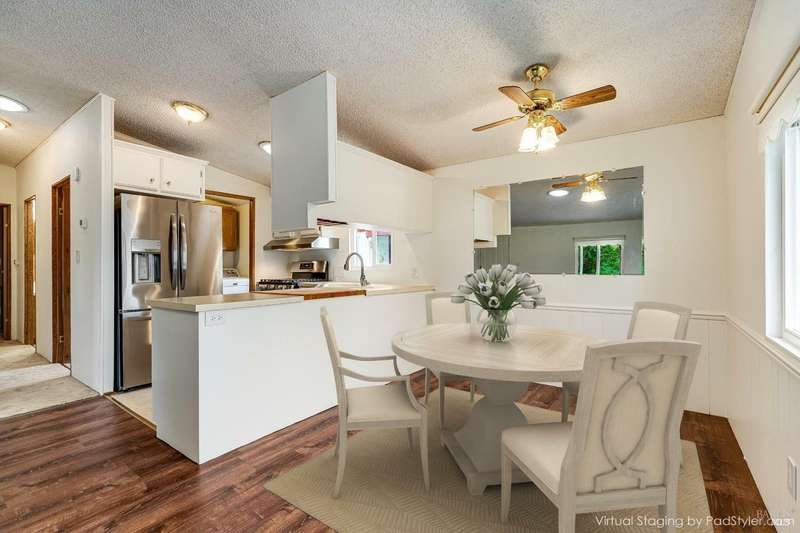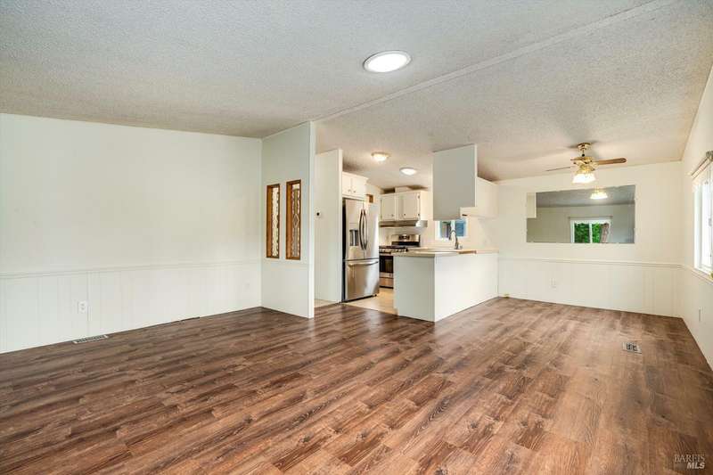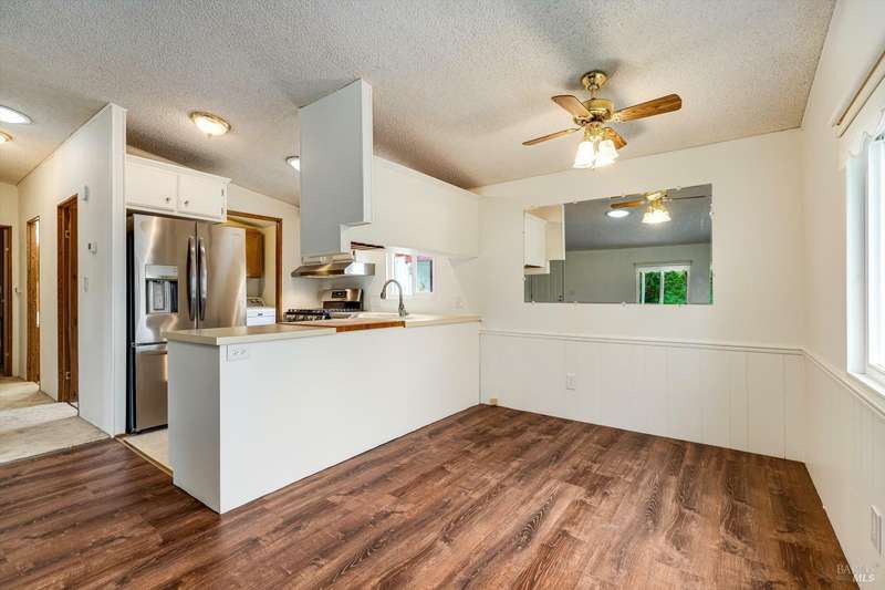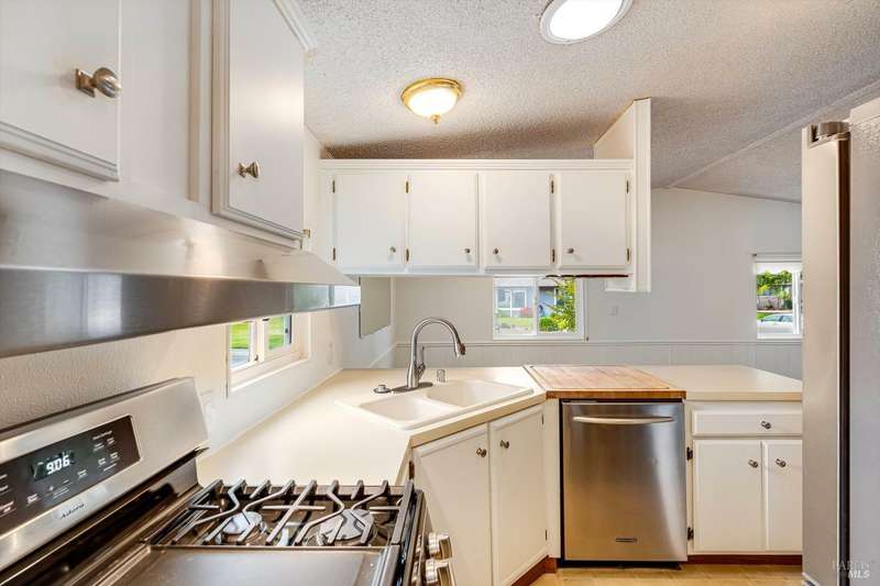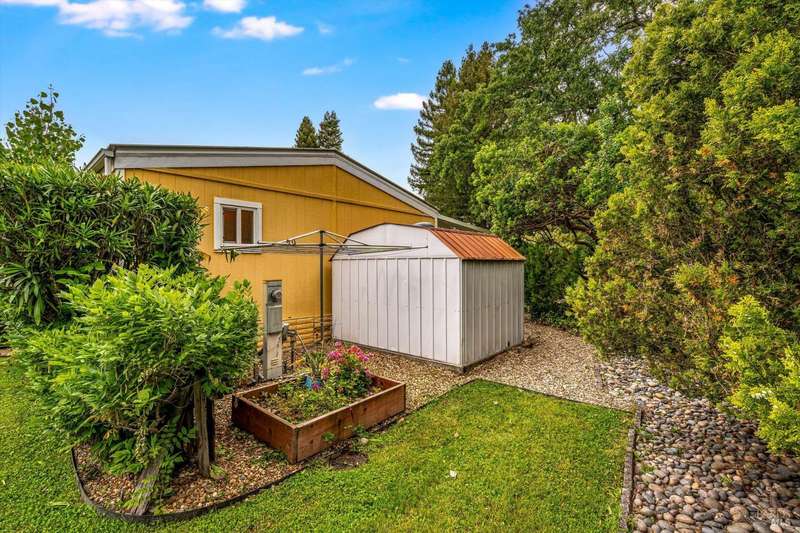 Location, location, location! This cozy 2 bedroom, 2 bath home is on an extra large lot backed by a creek and has additional lawn areas on the north side, more parking for guests, plus no neighbor. Inside, the walls are freshly textured and painted, with solar tubes making it light and bright. The Laminate floors in the main living area are rich looking and comfortable. In the kitchen, a stainless steel fridge and dishwasher plus a big gas range/oven make it fun to create feasts. In an adjacent room there is a washer and dryer with an exit to the lovely garden, complete with a veggie box. Central heat for our rainy winters and A/C for those delightful summer days creates a comfortable environment. Across the street is the Pool and a roomy Clubhouse with event space. Located minutes from the Windsor Town Green activities, the Farmer's market, and fabulous restaurants and wineries. The breathtaking Sonoma Coast and Russian River are a short 30 minute drive away. Come enjoy all Sonoma County life has to offer.