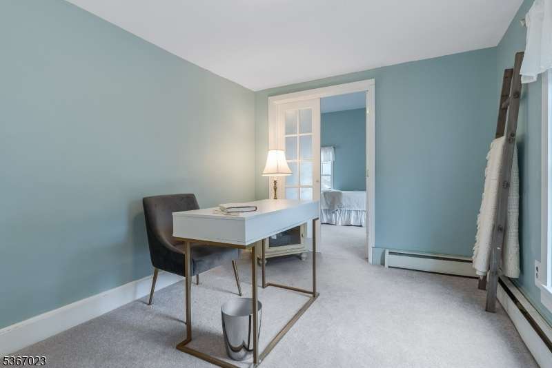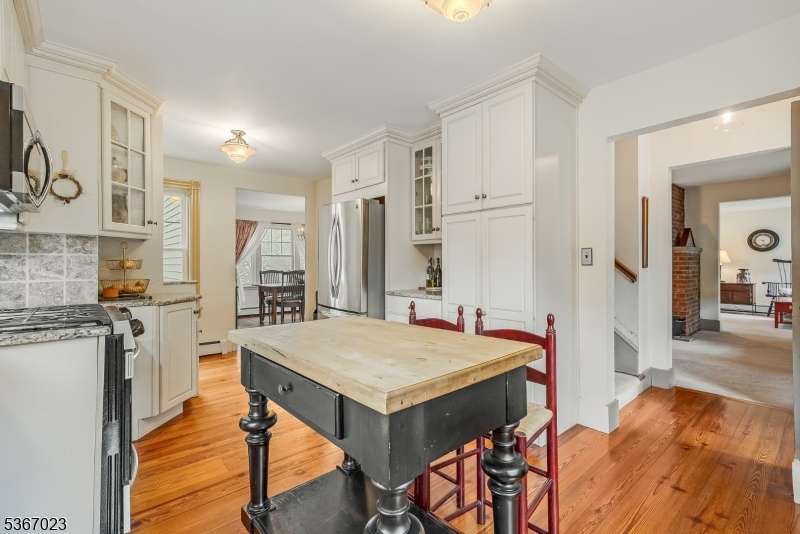 A rare residential gem is located in charming Califon Boro, a town that inspired the classic movie 'It's a Wonderful Life.' Nestled in the heart of the historic downtown district on a private road, this thoughtfully expanded 1840 Colonial blends timeless character and modern comforts. The classic mahogany front porch-- complete with a bench swing-- sets an inviting tone for this vintage home. The restored exterior features quarter sawn clapboards sourced from Vermont. Lovingly renovated, picturesque, and meticulously maintained by its current owners, this treasured home is move-in ready. Natural light fills the first floor, where front-to-back sightlines create an airy, open feel from room to room. The updated eat-in-kitchen is a chef's delight, showcasing richly-toned cabinetry, granite countertops, stainless steel appliances and stunning antique River-Recovered® Heart Pine wide plank wood floors. The expanded dining room has French doors opening to a spacious deck that's perfect for entertaining amid the gentle sounds of a nearby stream fed from the Raritan River. In the living room, a substantial brick-surround pellet stove and custom built-in shelving add warmth and gracious style. The adjoining family room is a welcoming gathering place which also has French doors accessing the deck. Upstairs, the serene primary suite features vaulted ceilings, a cathedral window illuminating the space, ample-sized closets and a separate sitting area. A full bath with tub/stall shower, updated vanity and linen closet is located in between the bedrooms. The second bedroom retains its Colonial character, while the third bedroom, with French doors and an adjoining bonus office, could easily serve as a second primary suite. A walk-up attic provides useful storage, while the stone-walled basement includes a laundry area with washer and dryer, a work bench, abundant storage and direct walk out access to the backyard. Utilities include two-zone heating and central air, public water and a brand-new three-bedroom septic system. Manicured grounds envisioned by landscape designer Shannon Savage feature a side yard oasis with mature plantings, a hardscaped stone patio, fire-pit, oversized stone steps and an enchanting garden shed. The terrific location allows easy access to the local general store, conveniences in downtown Califon and scenic trails. This updated Colonial affords a friendly small town lifestyle with great schools, including the National Blue Ribbon Voorhees High School, whose accomplishments have been noted in publications including U.S. News & World Report, New Jersey Monthly, Newsweek and The Washington Post.
