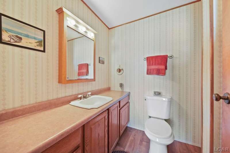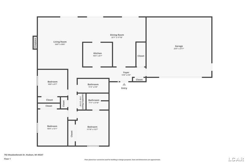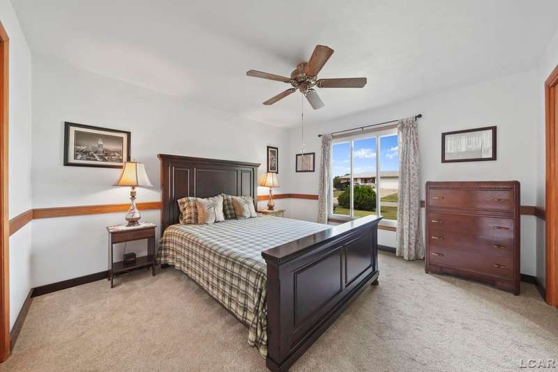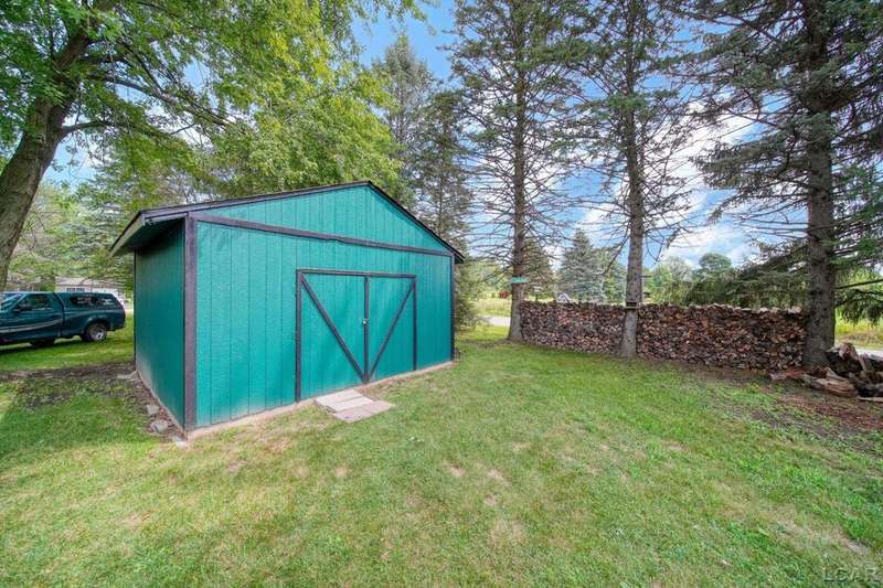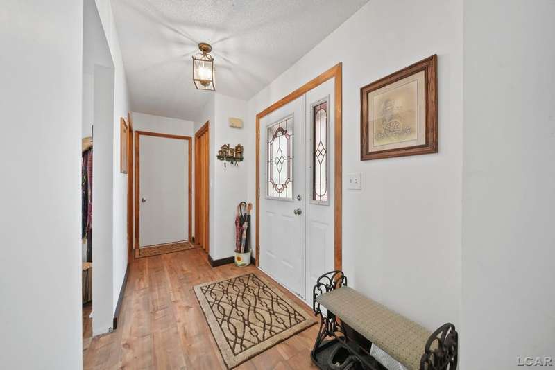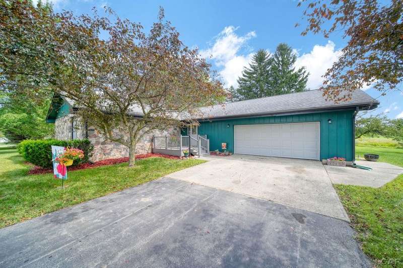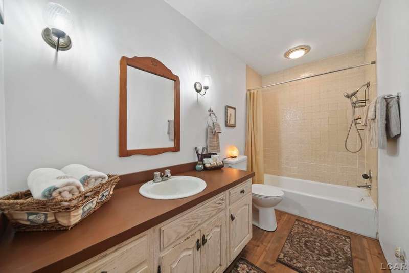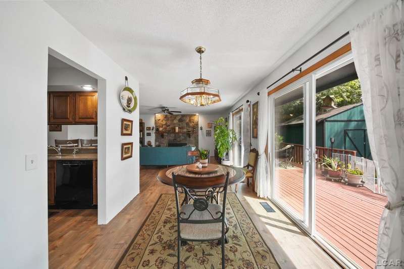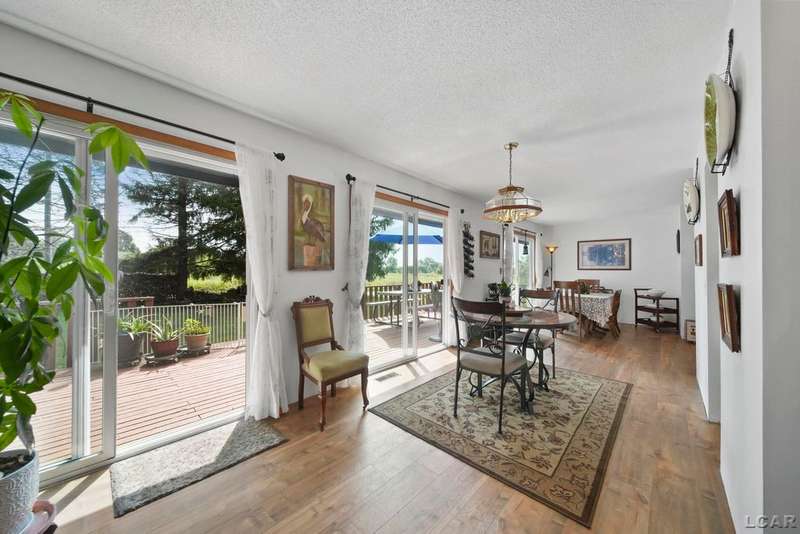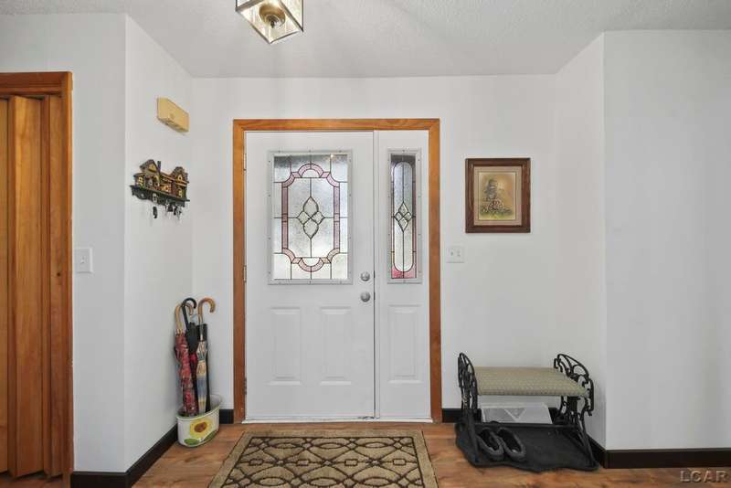 Beautifully remodeled ranch with inviting country ambiance! This nicely updated and open concept 3 bedroom 3 bath ranch blends modern comfort with timeless northern country charm. Nestled in a peaceful tree-lined setting, this home features a spacious open layout, natural wood burning fireplace with stone surround, updated kitchen with newer appliances, first floor laundry, new vinyl plank flooring, newly carpeted bedrooms and freshly painted inside & out. Enjoy relaxing on the large spacious back deck overlooking the backyard oasis with large 16x16 shed, fruit trees and country views. Thoughtful updates with a unique and neutral palette throughout complements the home's rustic appeal. Whether you're looking for quiet country living or a place to entertain in style, this move-in-ready gem offers the best of both worlds. Basement with tall ceilings could be transformed into the perfect space for family/media room. Large corner lot offers space to drive in from Sunrise Dr. and space allows for additional parking. Close to downtown Hudson and Lake Hudson Recreation Area!