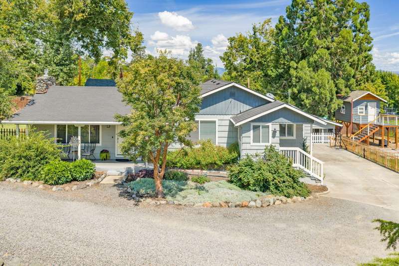 This well-maintained home sits in a desirable area of Sams Valley with great views and lots of great amenities! For outdoor enthusiasts you are just minutes away from the Table Rocks and Rogue River. Property features 3 bedrooms, detached bonus room, 2 1/2 bathrooms, oversized 2 car garage and a 24x40 ft workshop with 2 roll-up door, 8.75 GPM well on 2.75 flat useable acres. Main house is 1638 sq ft, bonus room is 396 sq ft with its own bathroom. Home features a spacious great room with vaulted ceilings and 2 fireplaces (wood & propane), breezeway with laundry area, mud room and lots of storage cabinets and a fenced backyard with a covered back patio. Property features huge workshop, carport, lots parking/storage space and much more. Recent updates include: exterior paint on house and workshop, new insulation in workshop attic, separate room in workshop and whole house water filter. Lots of potential with this rural setting home!