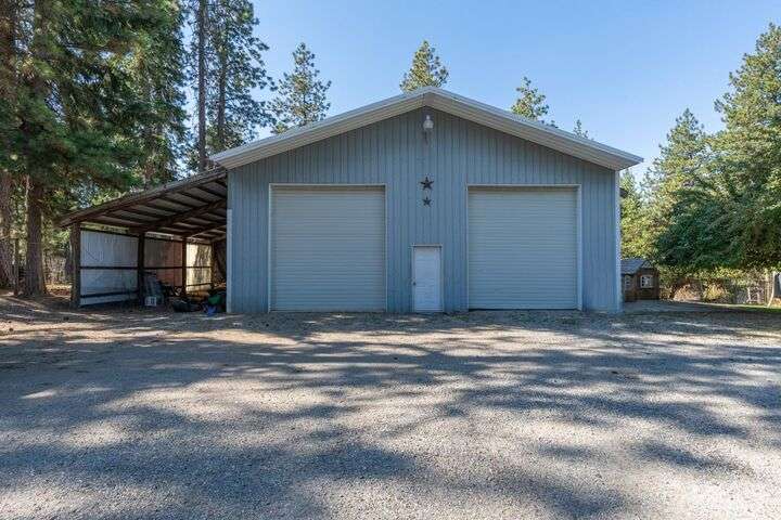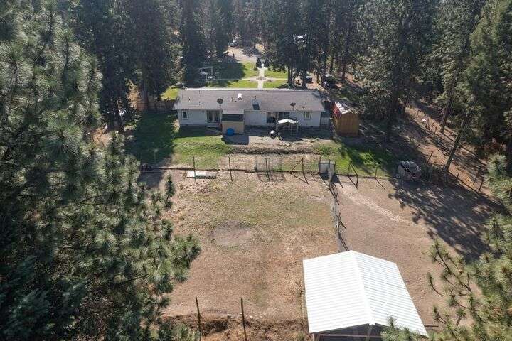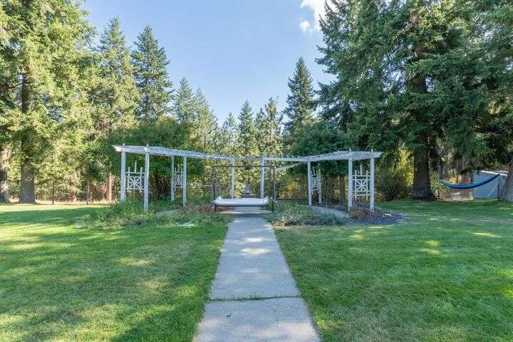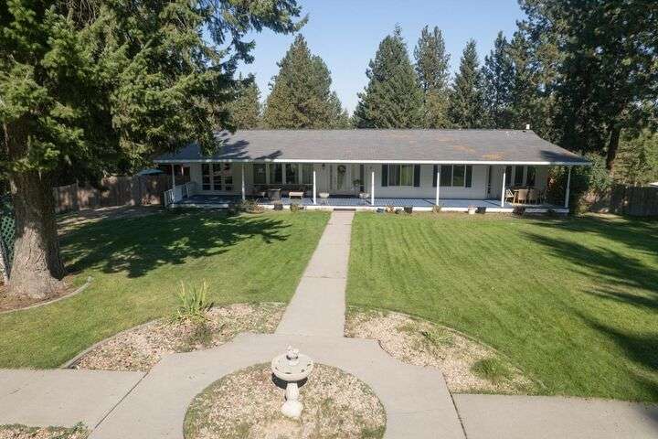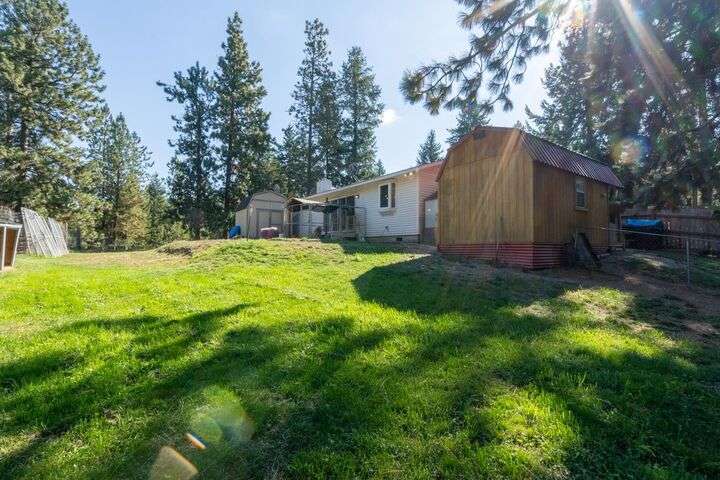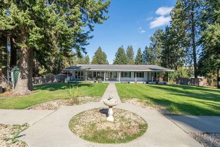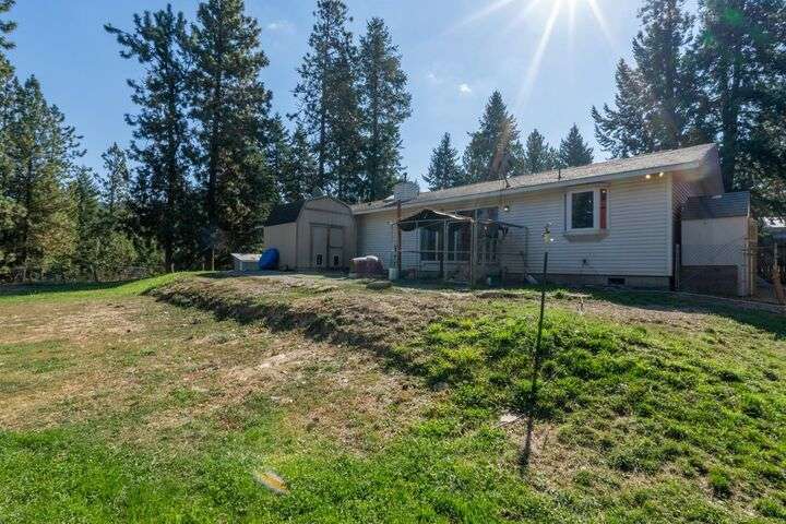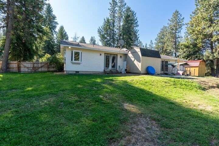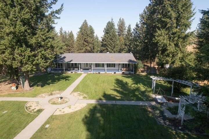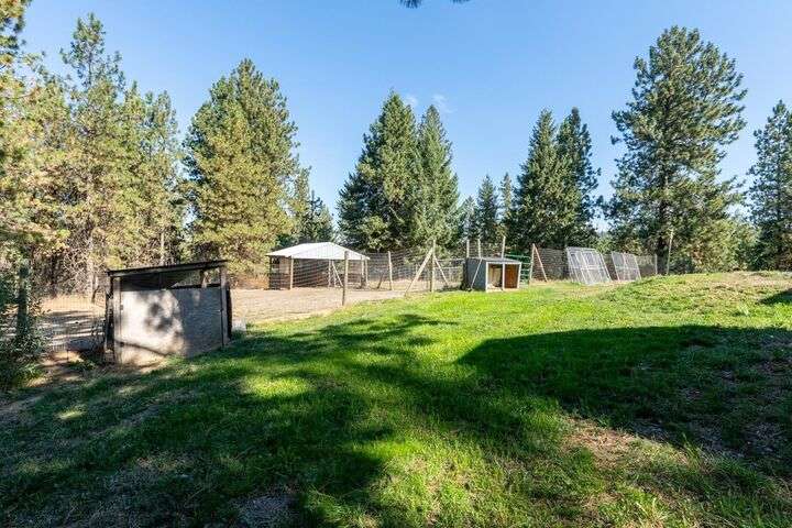 Calling all homesteaders or those looking for privacy---your own private Green Bluff. Gorgeous treed property with a year-round creek running through it. Featuring an orchard with 25 fruit trees, a berry garden, a vegetable garden, a she shed, lots of pens and shelters for animals, a chicken coop, a 30 x 40 shop, AND 3 RV HOOK UPS ALL WITH SEWER, WATER, & POWER. The seller enjoyed horses, cows, chickens, goats, and dogs all living on the property. The home is a very spacious 2150 sq ft one level 3 bed/2 bath with a welcoming covered porch. Kitchen has been updated with white cabinets & granite countertops. Primary bedroom has a walk in closet, additional flex room for an office, workout or reading room and a completely updated master bath with double sinks, walk in tiled shower, and garden tub. Main living area has 100 year old reclaimed wood flooring! Includes 2021 tractor! This is a MUST SEE property—bring your 4 wheelers!