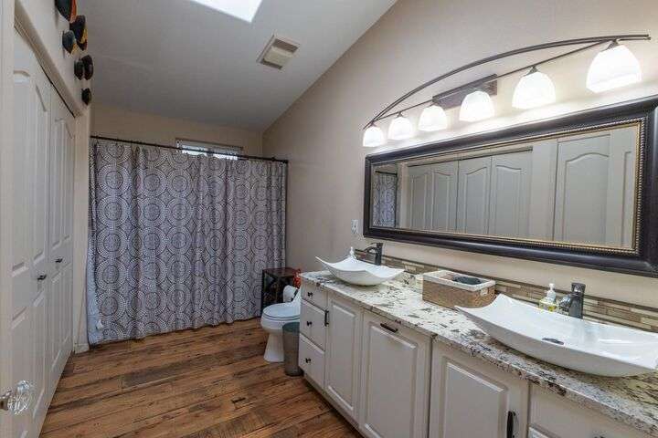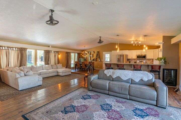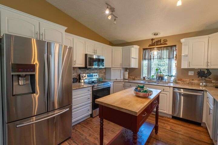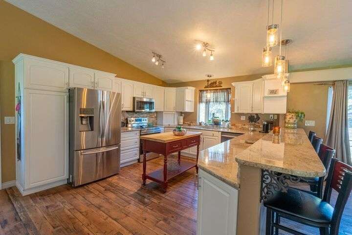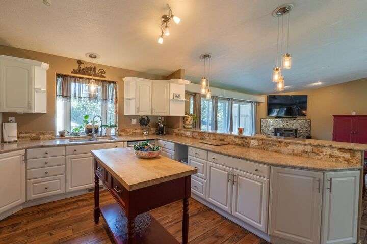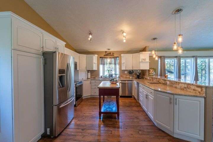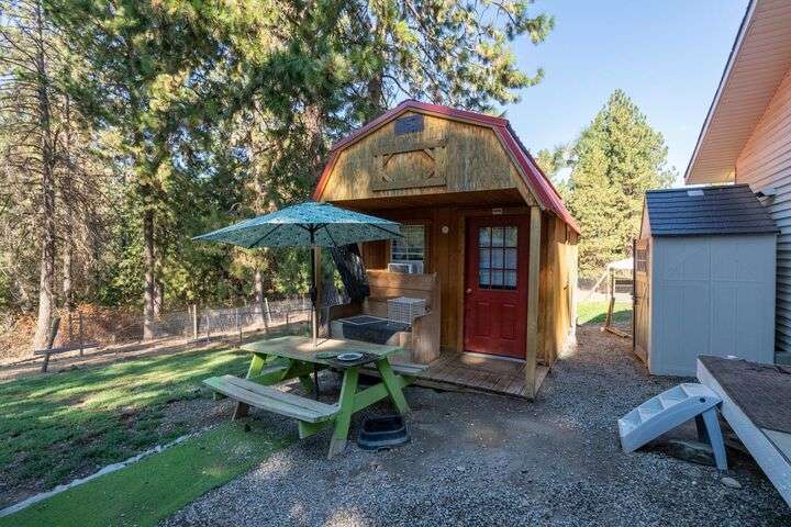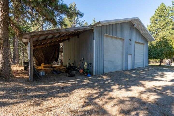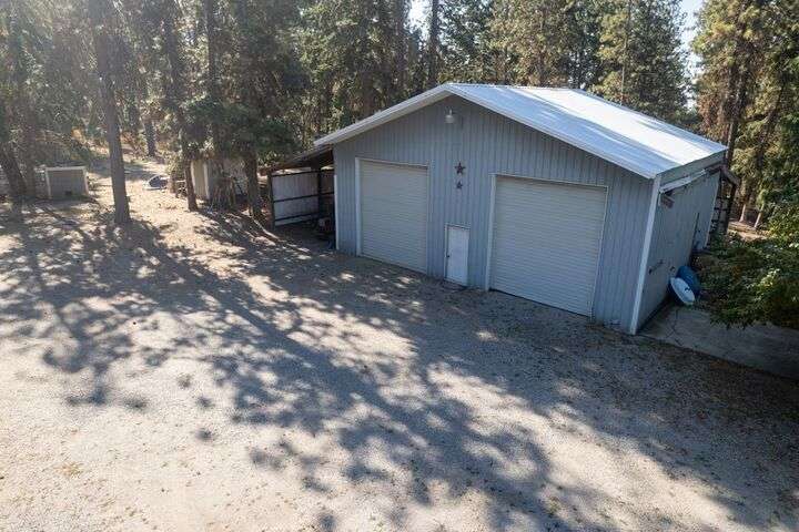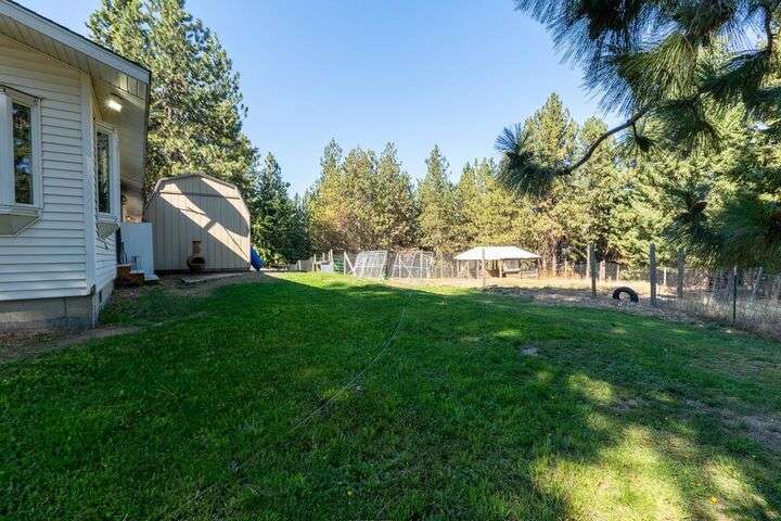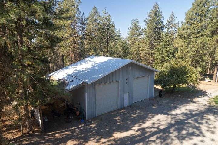 Calling all homesteaders or those looking for privacy---your own private Green Bluff. Gorgeous treed property with a year-round creek running through it. Featuring an orchard with 25 fruit trees, a berry garden, a vegetable garden, a she shed, lots of pens and shelters for animals, a chicken coop, a 30 x 40 shop, AND 3 RV HOOK UPS ALL WITH SEWER, WATER, & POWER. The seller enjoyed horses, cows, chickens, goats, and dogs all living on the property. The home is a very spacious 2150 sq ft one level 3 bed/2 bath with a welcoming covered porch. Kitchen has been updated with white cabinets & granite countertops. Primary bedroom has a walk in closet, additional flex room for an office, workout or reading room and a completely updated master bath with double sinks, walk in tiled shower, and garden tub. Main living area has 100 year old reclaimed wood flooring! Includes 2021 tractor! This is a MUST SEE property—bring your 4 wheelers!