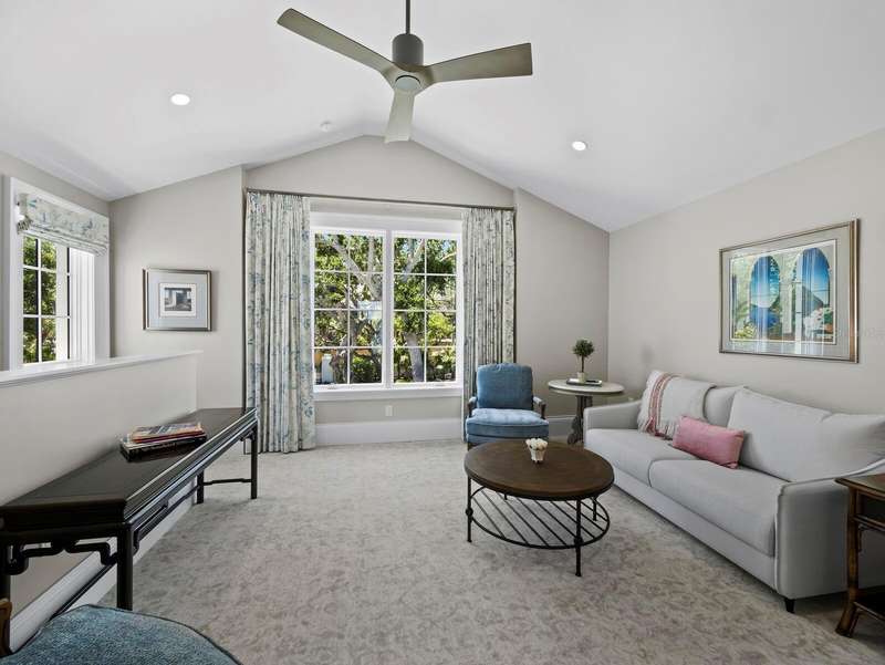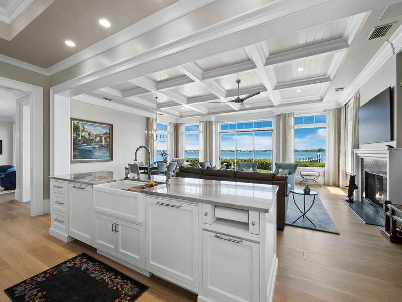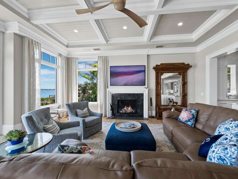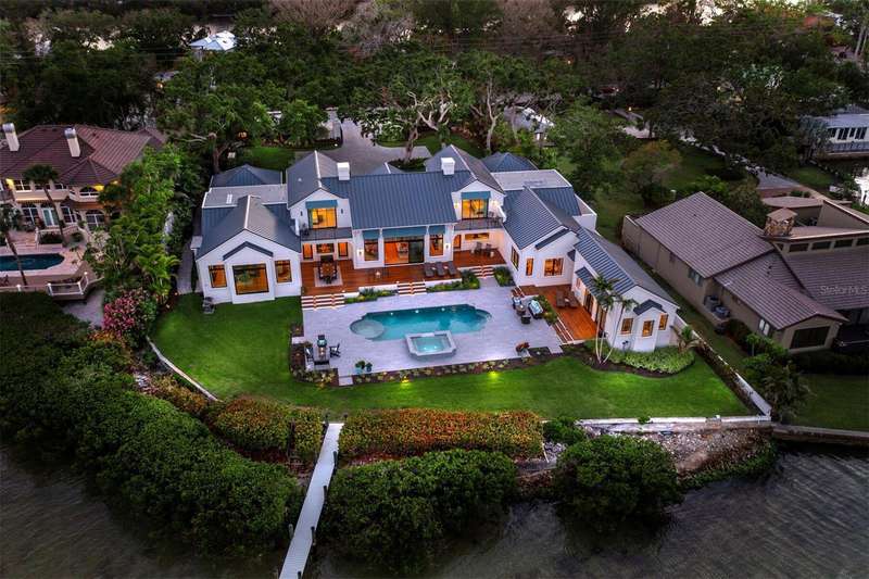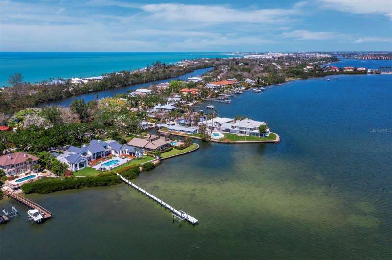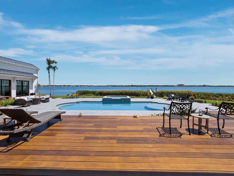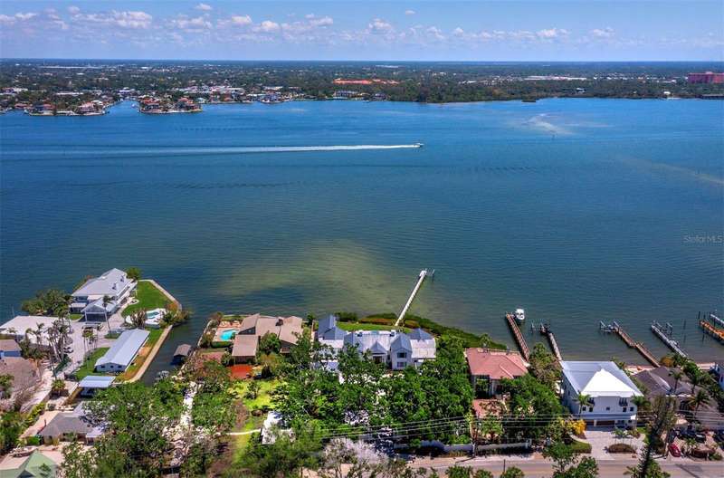 Welcome to one of the most impeccably reimagined residences at 8155 Midnight Pass on the quiet southern end of Siesta Key — a breathtaking bayside coastal estate that artfully blends modern innovation with timeless design. Set on nearly an acre of prime waterfront with 154 feet of shoreline, this gated property offers just under 7,500 square feet of luxurious living area with more than 9,200 total square feet of combined living and entertaining space, recently transformed through a full-scale two-year architectural renovation by Braidenview Architects and Christner Brothers — winners of the 2024 Aurora Grand Award for Best Renovated Home. From the moment you arrive at the gated motor court, you’ll be struck by the serenity of the grand live oaks, artistically designed landscaping, and elegant curb appeal. Inside, the home, with classical proportions, opens to soaring ceilings, DuChateau European oak flooring, and thoughtful details at every turn — from custom cabinetry and designer lighting to Euro-Wall sliders and state-of-the-art automation by Coastal Smart Homes. The heart of the home features multiple expansive living areas, all with views of Little Sarasota Bay and the Intracoastal Waterway from nearly every room, a show-stopping kitchen outfitted with Wolf and Sub-Zero appliances, double islands, and a butler’s pantry make for effortless entertaining. With four bedrooms, 2 of which offer additional sleeping areas in the suites, six baths, a private gym, a large office with two separate workspaces, a sewing/project room, and bespoke closets throughout — every space is both beautiful and functional. Step outside to enjoy a reimagined resort-style pool and new spa, Brazilian IPE decking, and multiple areas to savor sunsets over the Intracoastal Waterway. For boating enthusiasts, there is an impressive 200-foot dock with lift to accommodate a 25’ vessel plus an additional mooring area. Whether hosting a family celebration or simply savoring the coastal breeze, this property is designed for making lasting memories. Plus you are minutes from Siesta Key beach when you want to take a walk and put your toes in the famed quartz-sand as you watch the sun disappear into the horizon. With Sarasota’s vibrant cultural offerings, shopping and dining just moments away, you are all set to enjoy every imaginable amenity for an impressive lifestyle.