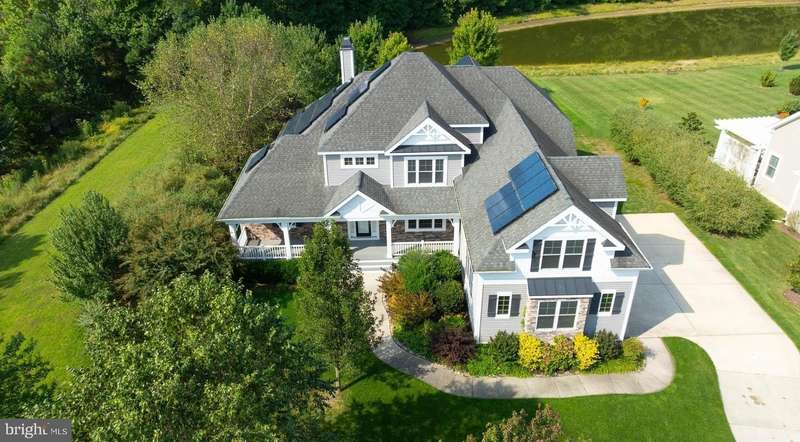 Welcome to your Exquisite Luxury Home in the Reserves at Lewes Landing. A Stunning 5 Bedroom, 3-full bath, Schell Brothers-built home in the highly desirable Reserves at Lewes Landing. Spanning an impressive 4,264 Sq Ft. on a generously sized .51 acre lot. This home seamlessly blends luxury and functionality, offering privacy and a resort style living experience. With an abundance of high-end features and upgrades, this property offers everything needed to live in comfort and style. Equipped with your completely owned 44 panel roof top solar equipment system with no lease involved. This home provides incredibly low energy costs with monthly electric bills in the low double digits, and a monthly return from the electric company. The spacious first floor offers wide plank wood floors with the look and feel of elegance. This home offers vaulted ceilings and includes a whole house speaker system which extends into the garage and outdoor living areas.. An oversized first floor master bedroom suite is a true retreat, featuring large windows, and an exquisite master bath with a jetted tub, walk in shower, and separate his & her vanities. A second 1st floor guest bedroom makes it ideal for visitors, in-laws, or one of a dozen other uses. The Chef's kitchen is perfect for those who love to entertain. The kitchen includes top -of-the-line stainless steel appliances, an induction stovetop, dual wall ovens, an oversized step up granite counter and a large pantry. With the sellers limited in home cooking, some of these appliances have never been used and are in new condition. The expansive living room boasts a gas fireplace and large windows providing breathtaking views of your private backyard and pond . The adjacent sunroom leads out to an oversized screened porch, offering the ideal setting for outdoor relaxation. The backyard is an entertainer's dream with extensively hardscaped brick patio and landscaped walls, including a fire pit area with seating, outdoor cooking/ built in BBQ space and a separate sitting area that overlooks the serene pond. Enjoy the tranquil evenings or host gatherings with ease while you overlook your backyard and adjoined pond views . Take the grand staircase to your 2nd floor with three generously sized bedrooms, the 3rd being oversized with room for a sitting area, office, gym or private retreat. An oversized 3 1/2-car garage with insulated ceiling, walls, and upgraded insulated garage doors offer plenty of room for your vehicles and additional storage. This home continues to offer convenience and upgrades including: Rinnai tankless on demand hot water system, first floor laundry with front loading washer & dryer, upgraded Guardian motion sensor security system, (not currently with a monitoring company) custom window treatments, sprinkler system for the entire yard (front, back and sides) including a dedicated watering system for your professionally landscaped front yard flower beds. Community Amenities include: A Community center, In ground pool, Tennis & Basketball Courts, Pickleball Courts with Biking and Walking Trails. With just a short drive from Lewes Beach, Cape Henlopen State Park, and the vibrant town of Lewes, this home is like a dream, combining Luxury, sustainability, and functionality in one remarkable package. Buyer to receive one year home warranty.