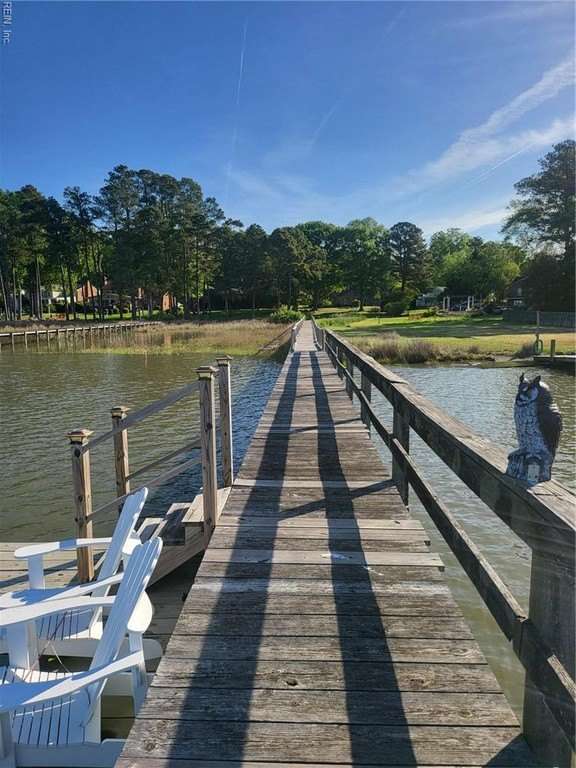 Welcome home to your all brick ranch style home on the Warwick River! Home is located in sought after Shore Park Subdivision in Denbigh! Big flat lot with private pier/dock! Home has open floorplan, to include foyer, living room with fireplace, dining room, eat-in kitchen, opens to family room with fireplace, sunroom, 3 good sized bedrooms, 2 baths, attached oversize 2 car garage with unfinished room above.