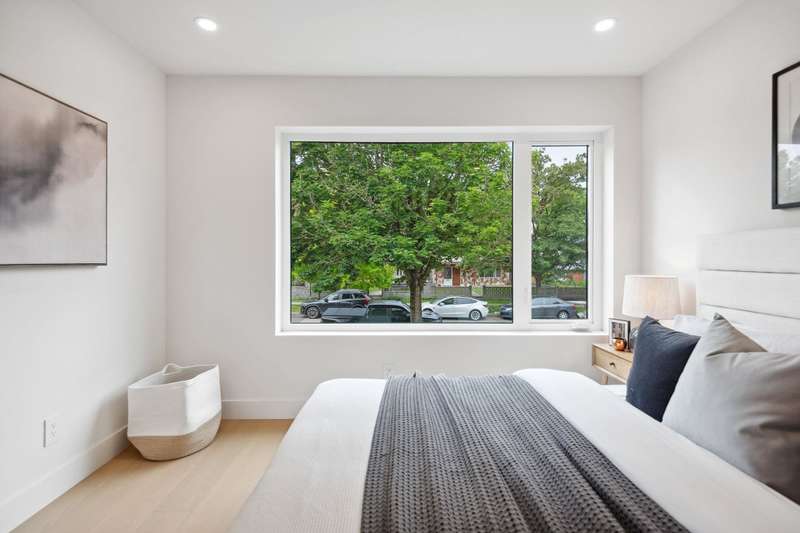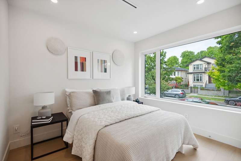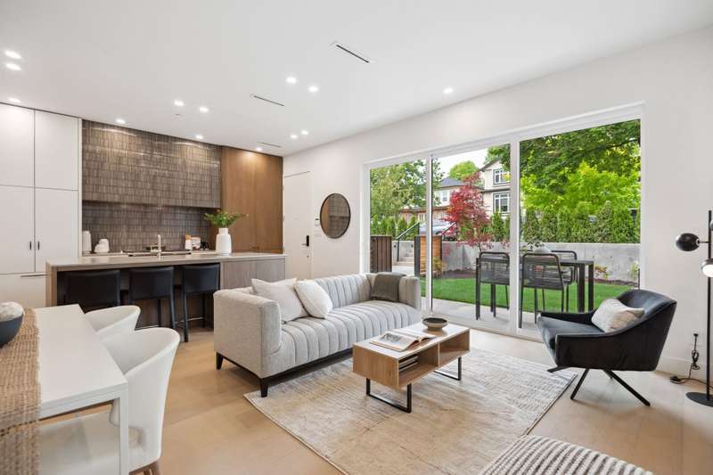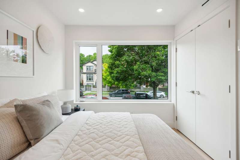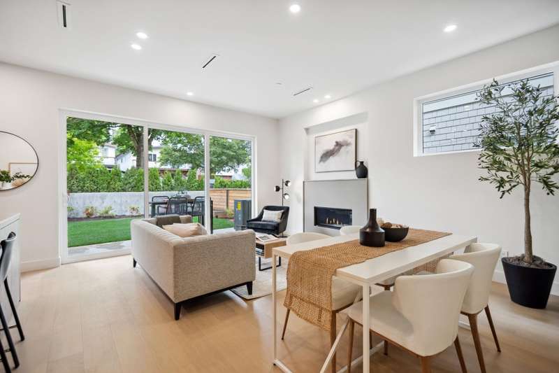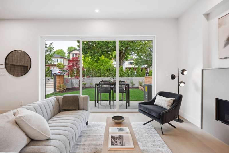 Mizan Developments & Architrix Design Studio present this stylish 1/2 duplex home in the desirable Kensington/Cedar Cottage neighbourhood of East Van. Each home offers 3 beds+Den/3.5 baths, an open-concept main floor, and luxurious earth-tone finishes, including quartz countertops, brushed oak flooring, and a gas fireplace. Kitchens feature large islands, Fisher Paykel appliances, and custom cabinetry, leading to spacious at grade outdoor patio and fully fenced private yard. The primary bedroom has a spa-like ensuite and large walk-through closet. Spacious upper level bedroom with sliding doors leading to the deck to enjoy the view. Detached garage with EV capable parking. Schools: Lord Selkirk Elem & Gladstone Secondary. Open House Aug 9th/10th Sat/Sun 2pm-4pm