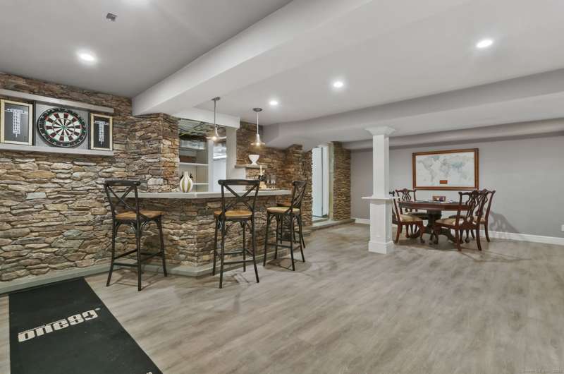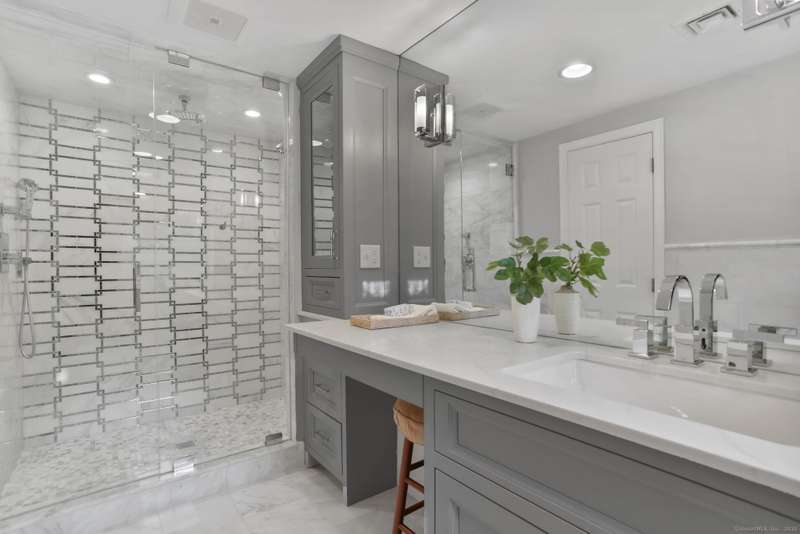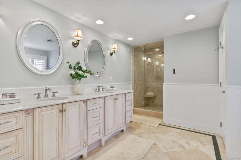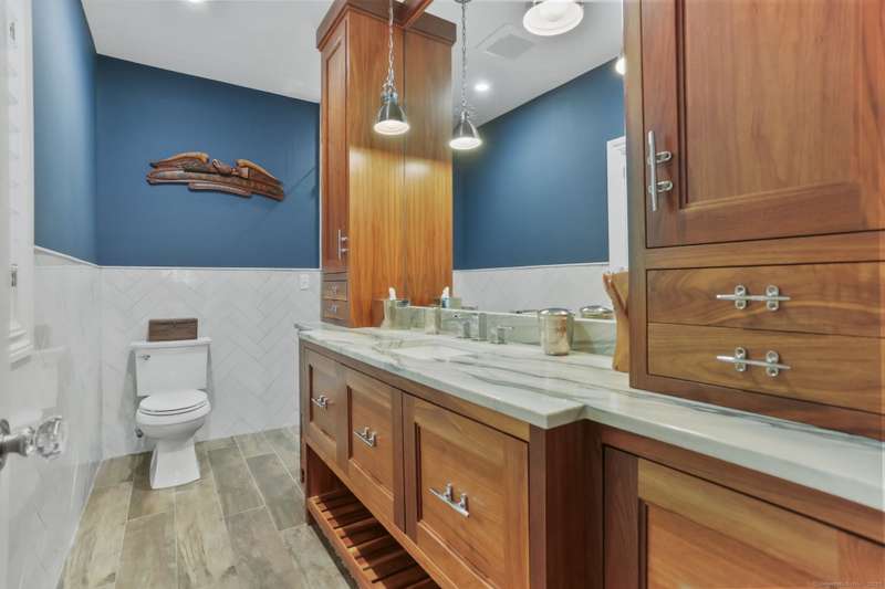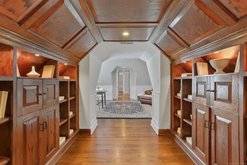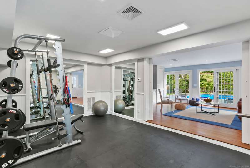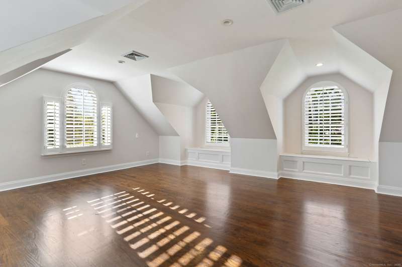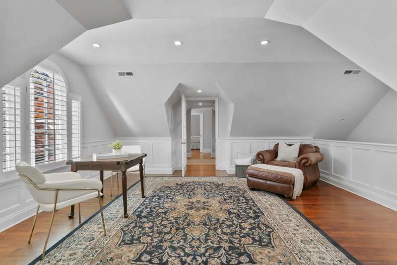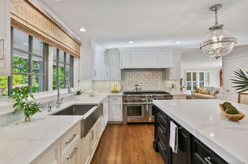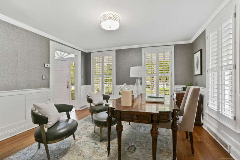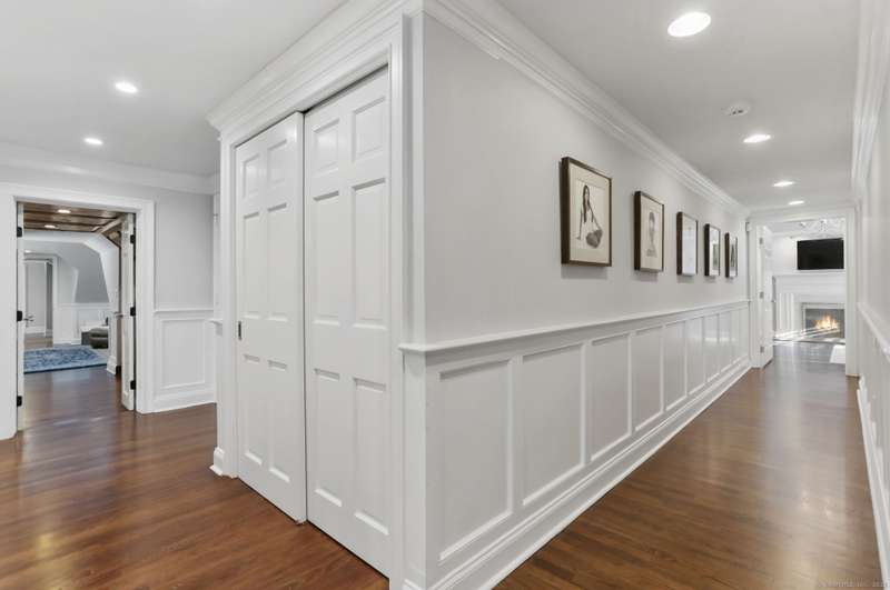 Welcome to 99 Old Academy Road, a distinguished Cape originally reimagined by local architect Richard Swann and thoughtfully expanded in 2019 by Alex Esposito. Arched-top dormers elevate the architecture, blending tradition with luxury. This residence offers 6 bedrooms plus a private two-level guest suite, 7 full / 3 half baths, all set on 2+ acres in lower Greenfield Hill. At the heart of the home, the kitchen offers an open layout with a spacious dining area, custom cabinetry, a floor-to-ceiling glass wine display, and walk-in pantry. The kitchen flows seamlessly onto a bluestone patio with a double-sided fireplace, perfect for indoor-outdoor living. The kitchen leads to the lower level, featuring a stone bar in the game room, a 10-seat cinema, and ample storage. The family room, with its built-ins, poolside views, and gas fireplace, offers an inviting year-round retreat, the main level also includes a private office. Upstairs, every bedroom is paired with its own private bath, each