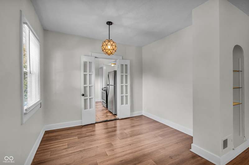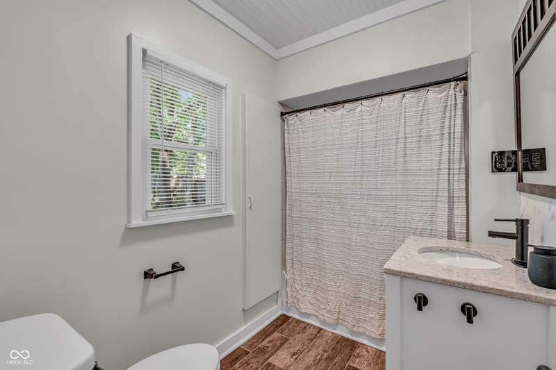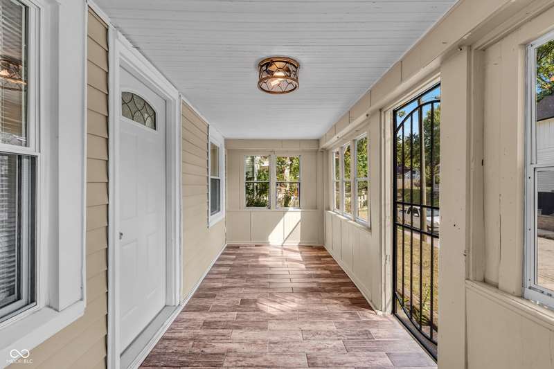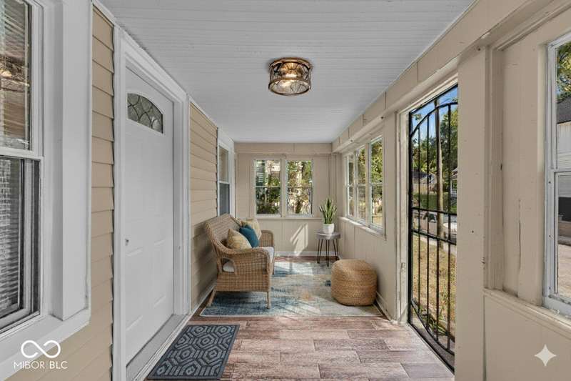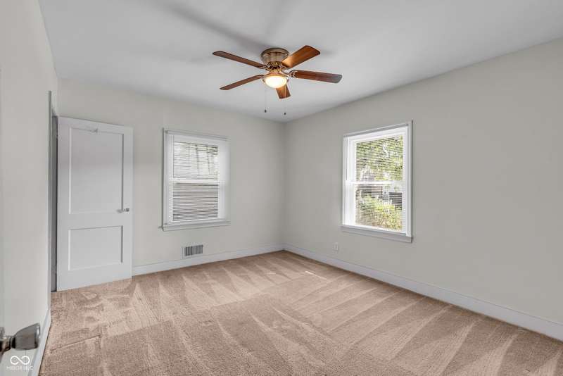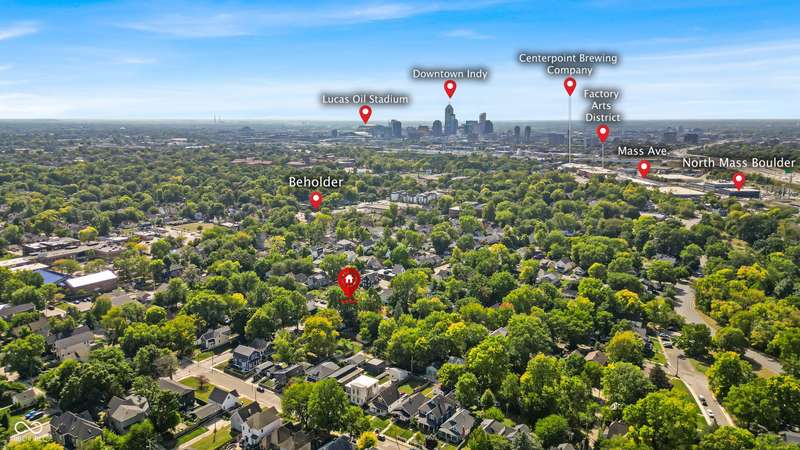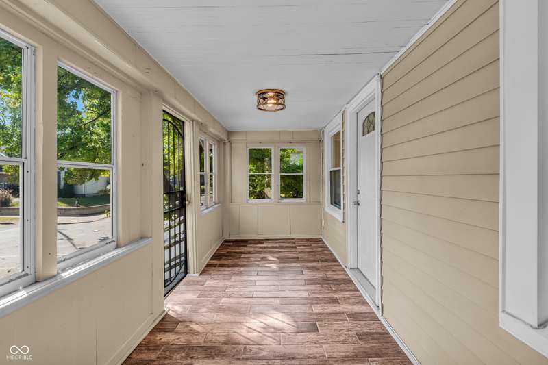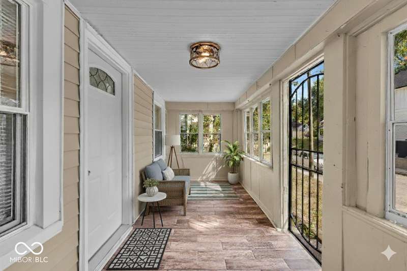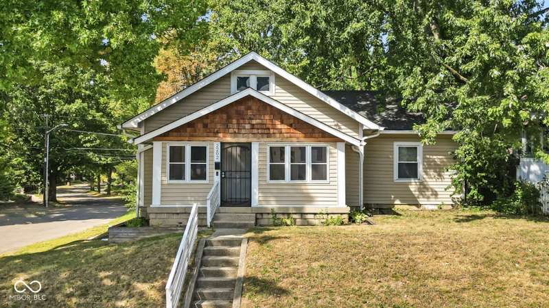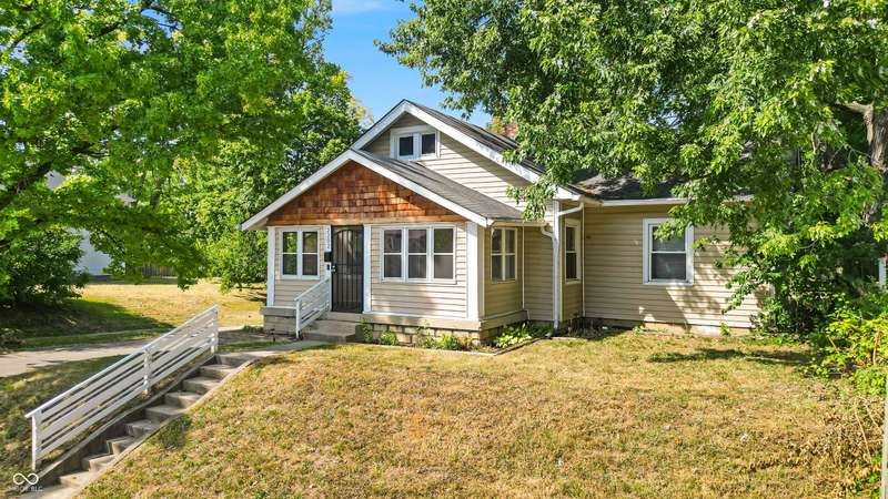 Craftsman Bungalow with Attached Oversized Garage in the sweet spot of Springdale, a block from Windsor Park! Tucked up on a hill among homes that boast century-old character alongside new construction modern cottages. Timeless touches like oversized baseboards and window trim highlight the home's turn-of-the-century charm. The open main level features laminate hardwoods that flow seamlessly through the Great Room and Dining Area, accented by built-in bookshelves and a niche perfect for a hutch or coffee bar. Glass French doors lead into the bright Kitchen, where an expansive window brings in natural light. The Kitchen is well-appointed with stainless steel appliances, including a gas cooktop, plentiful cabinets with roll-out shelving, tile backsplash, and ceramic flooring. From here, continue directly onto the back patio for easy evening grilling or smoking. All 3 bedrooms are oversized, with TWO offering impressive walk-in closets. Additional storage abound on the main level with a coat closet, shelved linen closet, and pull-down attic access. The full bath features a comfort-height vanity with quartz countertop, ceramic tile flooring, tiled tub/shower surround, beadboard ceiling, and an oversized medicine cabinet. A working attic fan provides economical cooling on mild summer days. Outdoor living is a highlight here, with multiple spaces to enjoy: a glassed and screened 19-foot front porch, and a fenced rear yard with patio and firepit shaded by mature trees. The unfinished basement holds loads of opportunity and connects directly to the rare attached Garage - HUGE (26x20) and ideal for a workshop with covered parking. NEW: main gas line, sewer line, laminate hardwood flooring, and fresh main-level interior paint. Pre-inspected for peace of mind. Unbeatable Location! Minutes from Mass Ave, Bottleworks, the Monon Trail, Kan-Kan Cinema, Spades Park, Beholder, Tik-Tock Lounge, North Mass Boulder, and the Factory Arts District for breweries, yoga, and more!