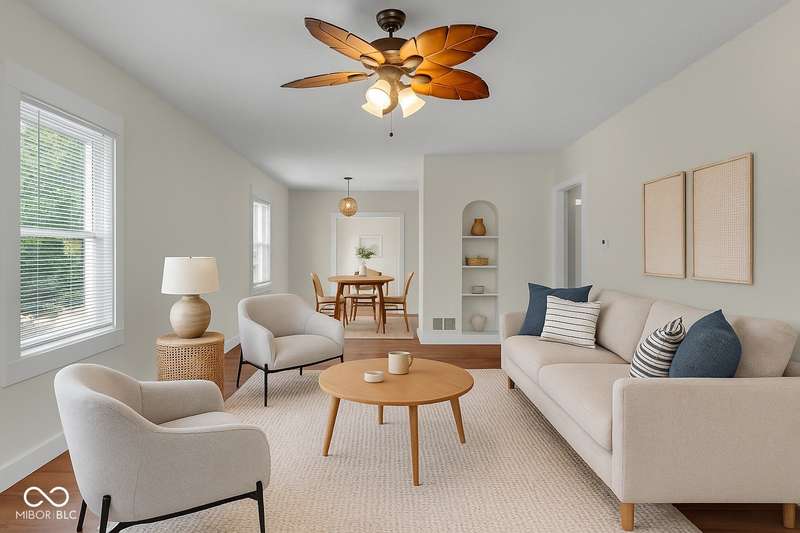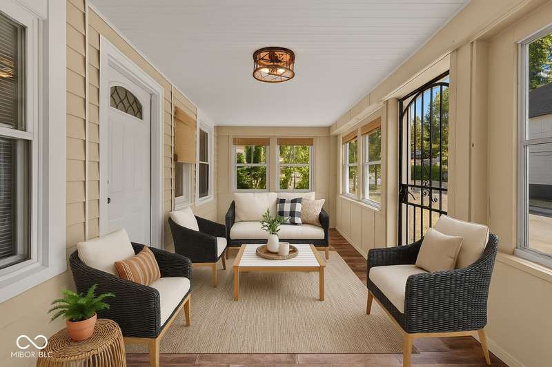 Craftsman Bungalow with Attached Oversized Garage in the sweet spot of Springdale! Tucked up on a hill among homes that boast century-old character alongside new construction modern cottages. Timeless touches like oversized baseboards and window trim highlight the home's turn-of-the-century charm. The open main level features laminate hardwoods that flow seamlessly through the Great Room and Dining Area, accented by built-in bookshelves and a niche perfect for a hutch or coffee bar. Glass French doors lead into the bright Kitchen, where an expansive window brings in natural light. The Kitchen is well-appointed with stainless steel appliances, including a gas cooktop, plentiful cabinets with roll-out shelving, tile backsplash, and ceramic flooring. From here, continue directly onto the back patio for easy evening grilling or smoking. All 3 bedrooms are oversized, with TWO offering impressive walk-in closets. Additional storage abound on the main level with a coat closet, shelved linen closet, and pull-down attic access. The full bath features a comfort-height vanity with quartz countertop, ceramic tile flooring, tiled tub/shower surround, beadboard ceiling, and an oversized medicine cabinet. A working attic fan provides economical cooling on mild summer days. Outdoor living is a highlight here, with multiple spaces to enjoy: a glassed and screened 19-foot front porch, and a fenced rear yard with patio and firepit shaded by mature trees. The unfinished basement holds loads of opportunity and connects directly to the rare attached Garage - HUGE (26x20) and ideal for a workshop with covered parking. NEW: main gas line, sewer line, laminate hardwood flooring, and fresh main-level interior paint. Pre-inspected for peace of mind. Unbeatable Location! Minutes from Spades Park, Beholder, Tik-Tock Lounge, Mass Ave, the lively summer Woodruff Flea Market, North Mass Boulder, and the Factory Arts District for breweries, yoga, and more!