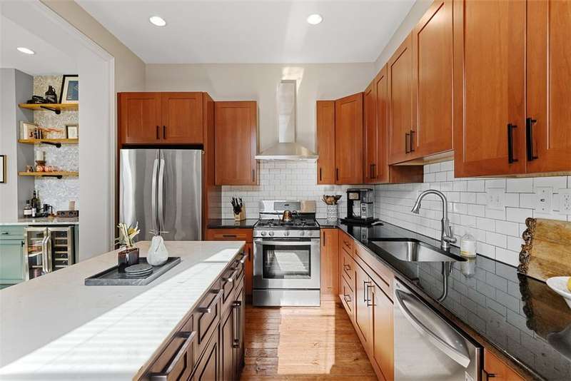 Tucked away on a quiet street, this beautifully restored historic home offers the perfect blend of old character & modern convenience. Step inside to find gorgeous original hardwood floors, a stunning tile fireplace, & timeless architectural details that make every room feel special. Fully renovated from top to bottom, the home features 2 spacious bedrooms, each with its own private en-suite bathroom, & a convenient 2nd floor laundry for added ease. The kitchen opens to a stylish accent wall with a built-in bar & wine fridge?the perfect spot for entertaining friends or unwinding after a long day. Outside, enjoy the large fenced-in backyard with a beautiful gazebo, ideal for summer gatherings or quiet evenings. With 3 off-street parking spots, a rare find in the city, this home truly checks every box. This North Side gem offers the best of Pittsburgh living ? history, style, and space ? all just minutes from downtown, local parks, and the vibrant amenities of the North Shore.