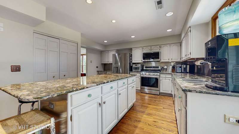 This 4-bedroom, 3.5-bath home in the highly sought-after Astor Place Subdivision offers a perfect blend of comfort, style, and modern living. Located in award-winning District 102 and Stevenson High School, it provides a functional and inviting layout ideal for everyday living and gatherings. The main level features an open, light-filled floor plan with hardwood floors, a brick fireplace, formal dining room, and a bright breakfast area. The gourmet kitchen includes white cabinetry, granite countertops, a stainless-steel backsplash, oversized island, and newer stainless-steel appliances. Upstairs, the primary suite offers an updated ensuite bath with a double vanity and glass-door shower, along with three additional bedrooms and a full bath. A vaulted-ceiling great room addition and finished partial basement with full bath expand the living space. Two newer HVAC systems and water heaters ensure year-round comfort, while the professionally landscaped, park-like backyard on an oversized lot with two patios provides a private outdoor retreat, perfect for relaxation and entertaining. This home combines thoughtful design, modern updates, and top-tier schools, making it an exceptional place to live. Schedule your private tour today and experience Buffalo Grove at its finest.