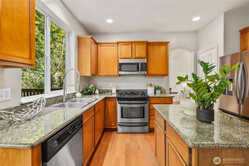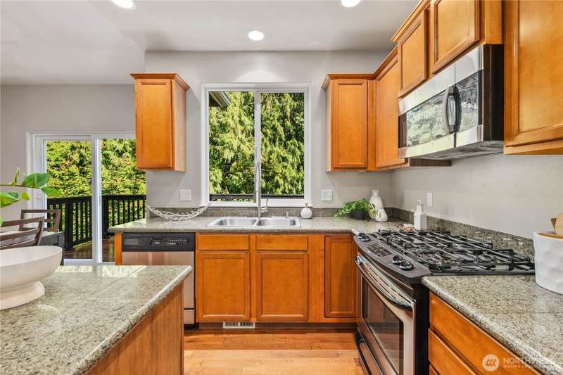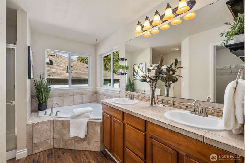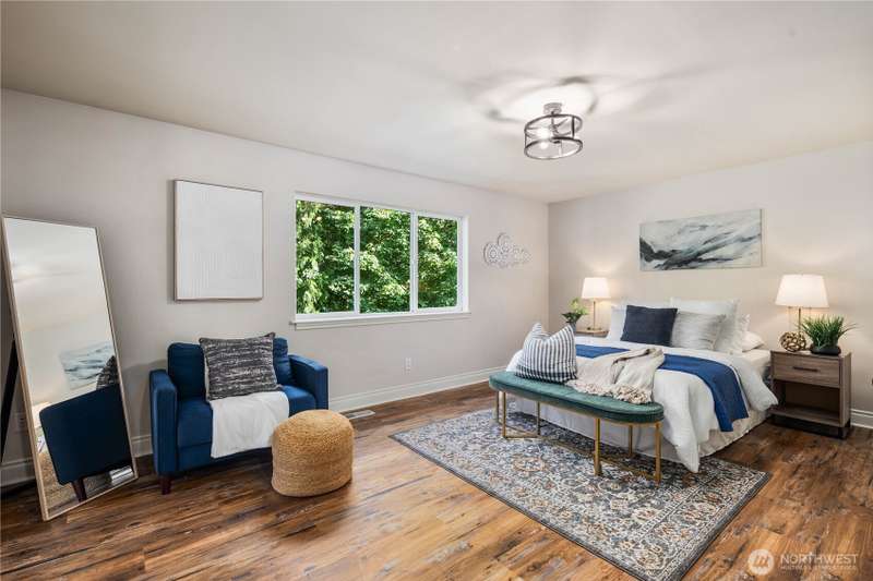 Spacious 5-bedroom home in a quiet Lake Stevens cul-de-sac with a brand new roof (Oct. 2025). Features 3 bedrooms upstairs including a large primary suite with ensuite bath. Lower-level mother-in-law suite has 2 bedrooms, full bath, living area, and kitchen-ready space—great for extended living or rental potential. Main floor offers open-concept kitchen/living area and a dedicated office. Includes 2+ car garage, ample storage, and is close to schools, parks, and shopping.