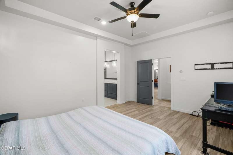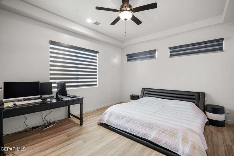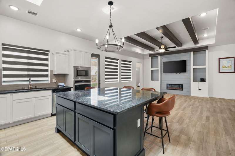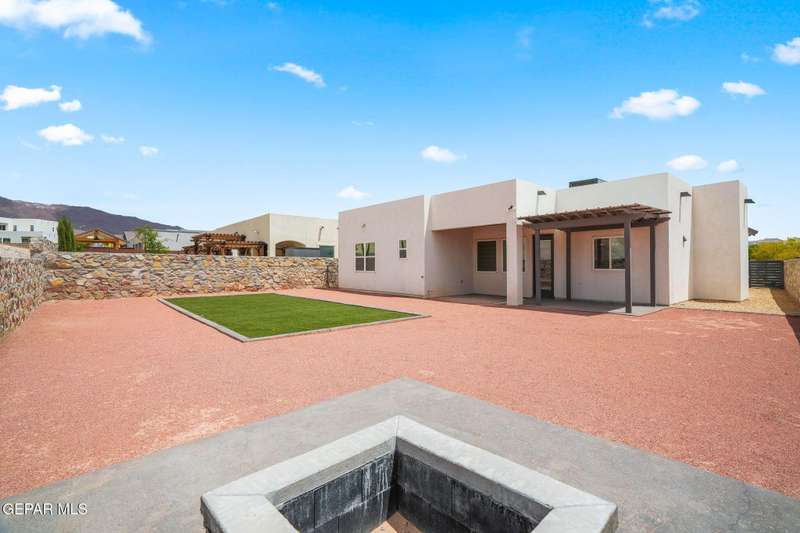 Beautiful ICON custom built farmhouse located in one of the most desirable locations in El Paso. 4 spacious and zoned bedrooms, 3 baths and double car garage. Home has tile throughout and an open concept beamed ceiling living area. Elegant upgrades throughout. Large mud room, walk-in pantry, kitchen island with space for 4 chairs and a water softener is included. Home is near a park and close to entertainment, shopping and major roads/highways. Fire pit and sitting area in back yard as well as a pergola. Landscaping requires very little maintenance.