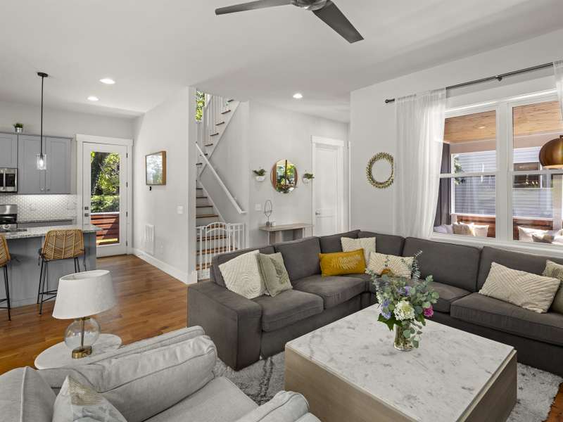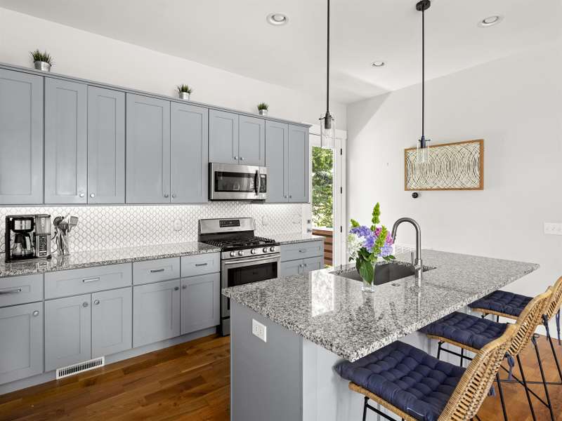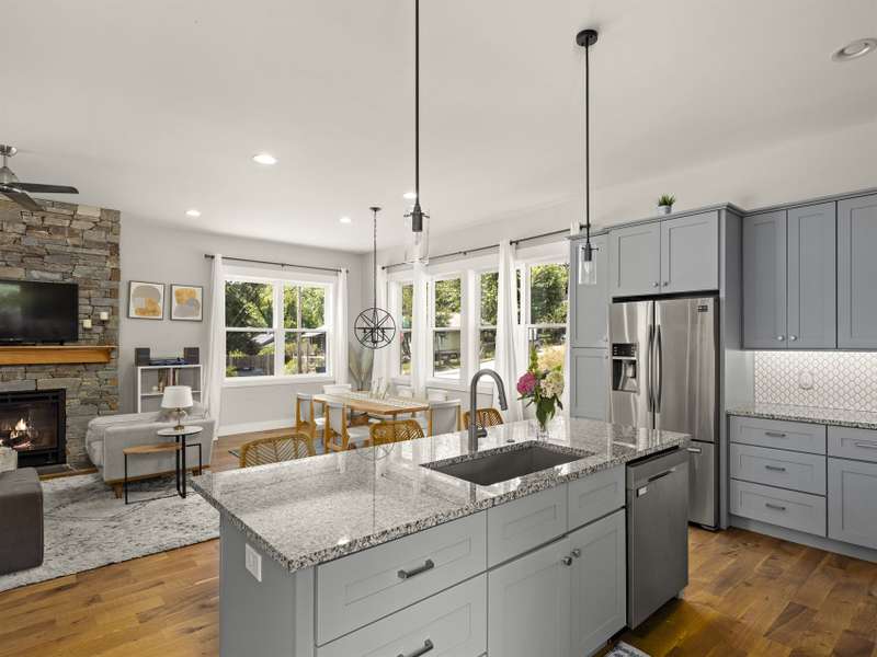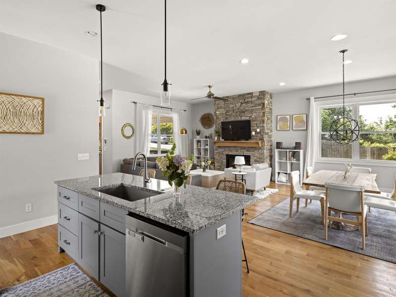 Discover this meticulously maintained home, built in 2018, located in highly desirable West Asheville. This property offers an ideal location, just steps from the shops and restaurants of Haywood Road, a short walk to Carrier Park and minutes to the River Arts District and downtown.The home is move-in ready and designed for comfortable living and entertaining. The main level features an open-concept layout, with a gas fireplace, soaring 10-foot ceilings and hardwood flooring. The kitchen is equipped with granite countertops, stainless steel appliances and abundant cabinetry. A flexible downstairs bedroom offers an ideal space for a home office or guest room. Upstairs, the primary bedroom suite offers comfort and privacy with 9-foot ceilings, large windows and a private ensuite bathroom. The second floor also includes two additional bedrooms, a full bathroom and a conveniently located laundry closet. Outdoor amenities include a fenced-in front yard and a generous covered porch.