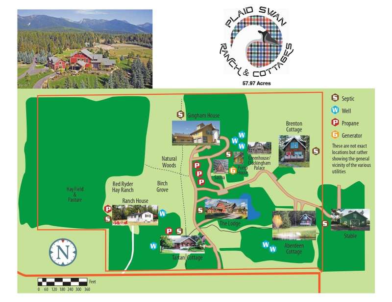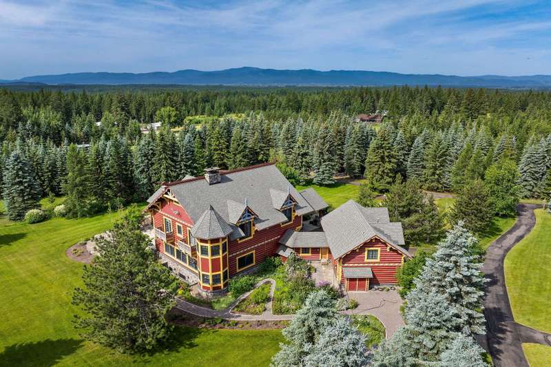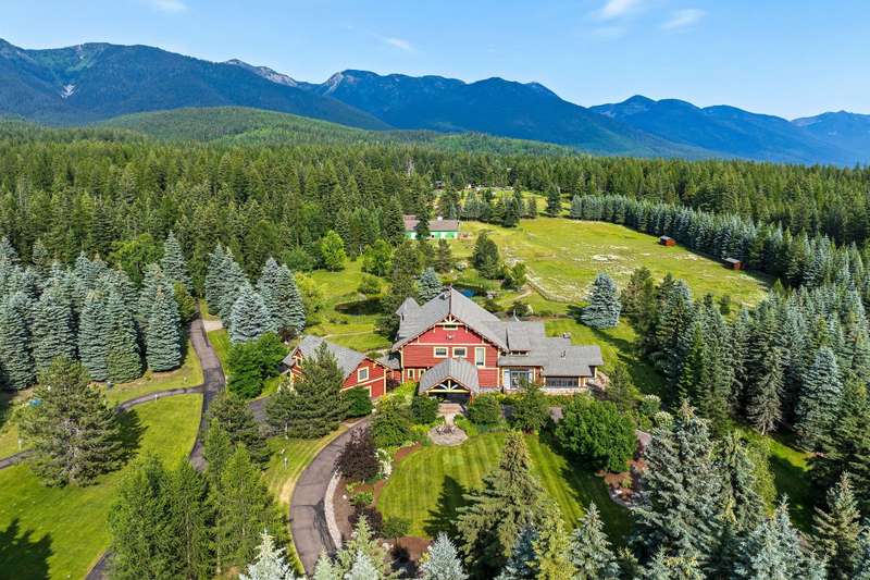 Where legacy meets wilderness! An iconic 14,228 SF lodge with five additional homes on nearly 60 acres of hayfields, forest, fenced pasture, and trails. A rare Montana sanctuary and compound built for gathering, roaming, and living fully immersed in nature. Plaid Swan Ranch is among the most distinguished estates in the Flathead Valley, representing a magnificent offering where cinematic legacy and Montana's raw natural beauty converge. Encompassing nearly 60 acres of pristine land at the base of the Swan Mountain Range, this exceptional property includes fabulous views of Jewel Basin, one of northwest Montana's most unique hiking areas. Just 30 miles from Glacier Park International Airport and a short drive from the vibrant village of Bigfork, this property is an exceptional haven for those who value both seclusion and proximity to vibrant community life. At its center stands an extraordinary 14,228 square foot, chalet-style main residence inspired by the iconic McDonald Lake Lodge in Glacier National Park. Designed with a refined, upscale mountain style and decorated to represent a European hunting lodge, this architectural masterpiece showcases a breathtaking great room of more than 2,000 square feet, with soaring 27-foot vaulted ceilings and an impressive stone fireplace that doubles as a rock-climbing wall. Blending luxury and function, the home is set up for unforgettable entertaining and features a sunroom with fossil stone floors and exquisite hand-painted ceiling murals, elegant marble-floored dining areas, a custom-designed theater, an expansive wine cellar accommodating approximately 2,900 bottles, multiple balconies and patios, whole-house speakers and smart lighting automation, an elevator servicing all levels, and countless refined and romantic touches throughout. Beyond the main residence, the estate offers a wealth of additional accommodations and amenities. These include a 2BD/1BA carriage house apartment attached to the main residence; a 2BD/1BA caretaker's cottage; two charming 1BD/1BA guest chalets; a 2BD/1BA fairytale-like cottage, enchanting visitors with its storybook character; and a 1BD/2BA ranch house. A 4,200-square-foot, 4-stall stable complements the property, alongside cross-fenced pastures, a private trout-stocked pond, Finnish sauna, scenic walking trails, a greenhouse, chicken coop, and an array of outbuildings that include a heated generator house and loafing sheds. Approximately 20 acres are dedicated to dryland hay, with another 20 acres of mature forest, while the remaining acreage encompasses barns, pastures, manicured landscaping, and residences, all seamlessly connected by a winding paved driveway, adorned with wired lamp posts, that ensures privacy and effortless access throughout the estate. No expense was spared in developing this remarkable property, which features superior infrastructure and exceptional versatility for a wide range of uses. Whether envisioned as an exclusive family compound, an equestrian paradise, a retreat space, a luxurious wedding venue, or a serene wellness sanctuary, Plaid Swan Ranch presents a rare opportunity to own a true Montana legacy estate - one that stands as a masterful fusion of history, refined design, and enduring beauty. This property is offered turn-key with exclusions and enjoys the benefits of no HOA or CC&Rs. Plaid Swan Ranch is not merely a property, but an invitation to embrace the grandeur, serenity, and boundless possibilities that define the Montana dream. A 55+ page Homebook will be provided upon request. All prospective buyers must provide financial pre-qualifications/certification of funds, information on buyer profile, and sign an NDA prior to showing.