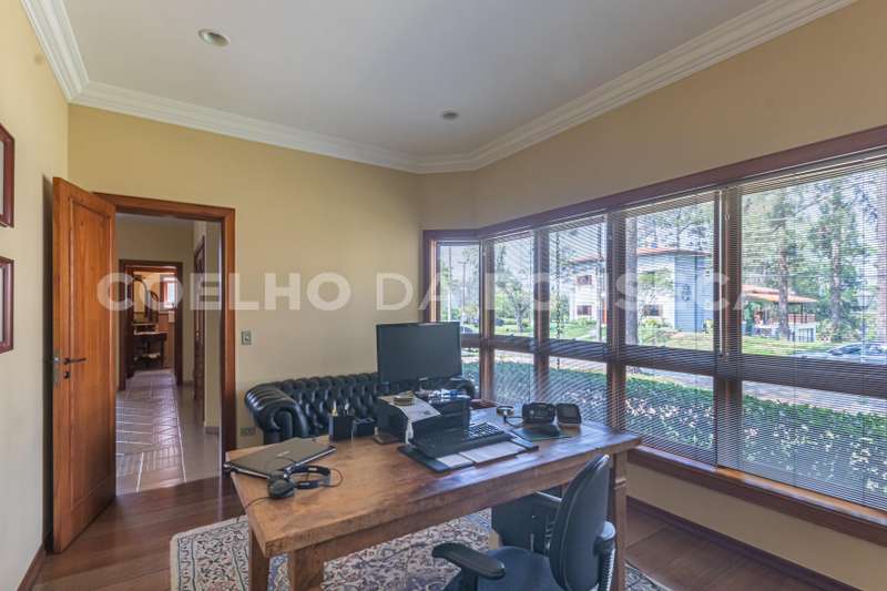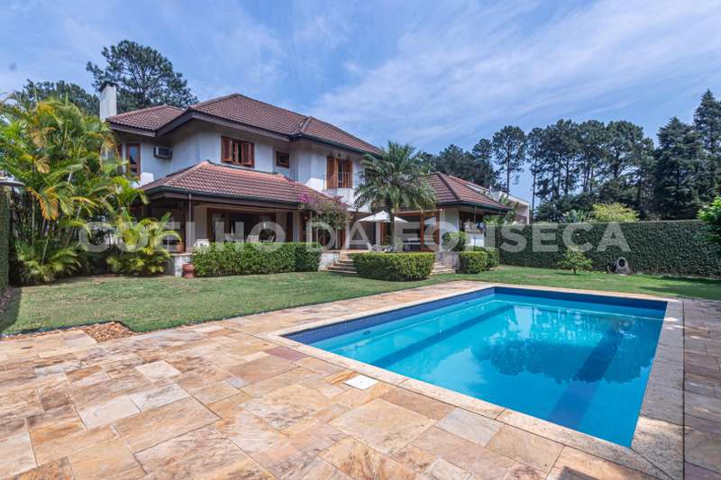 Casa em Condomínio no bairro Aldeia da Serra com 552m² área construída, 4 dormitório(s), 4 suíte(s), 8 vaga(s), 6 banheiro(s), piscina, escritório, depósito, dep. de empregados, varanda.