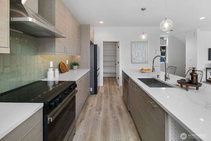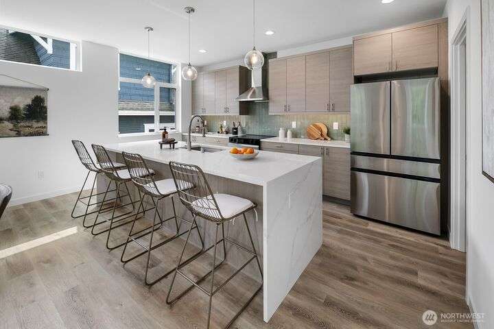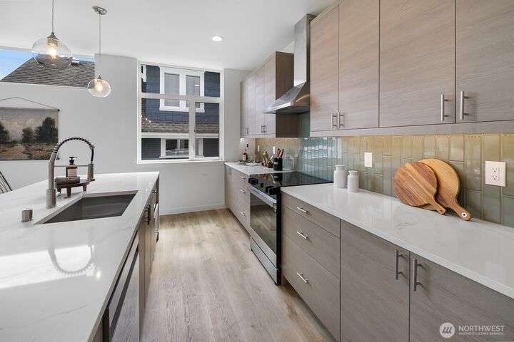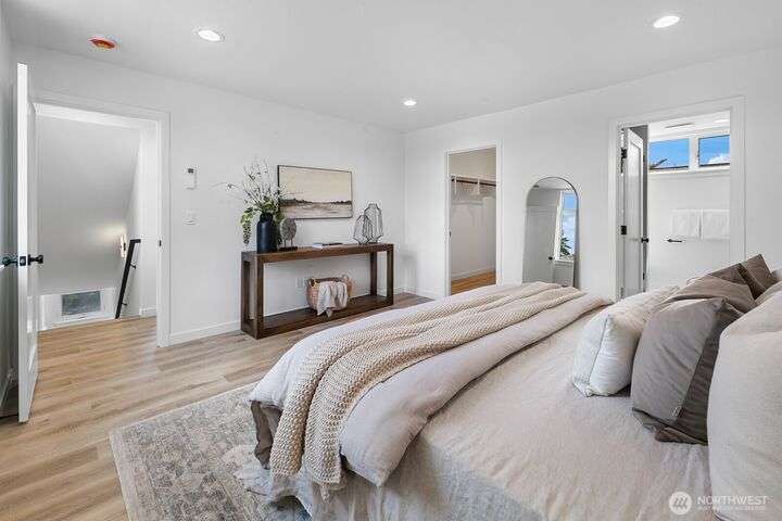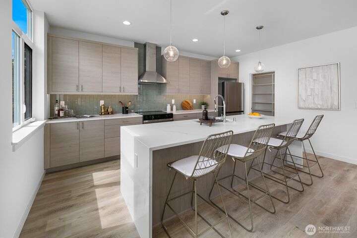 Tucked into West Seattle’s vibrant Admiral district and minutes from Alki Beach, this 4-bedroom home is part of a 3-home collection by Jamison Construction, showcasing curated design and quality craftsmanship. Expansive second-floor living is anchored by a walk-in pantry and open gathering spaces, paired with a coveted floorplan placing bedrooms upstairs and a flexible lower level for guests or office use. You’ll appreciate efficient mini-splits for year-round comfort and radiant heated floors in the primary bath. A rooftop deck captures views of Mt. Rainier and Olympics. An attached EV-ready garage adds convenience. Near Prost!, Mission Cantina, and Circa Grill, with PCC and Met Market just blocks away-West Seattle living at its best!
