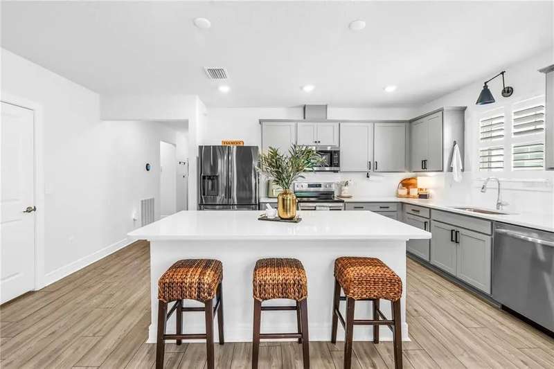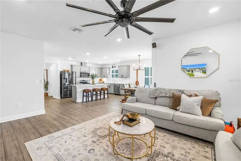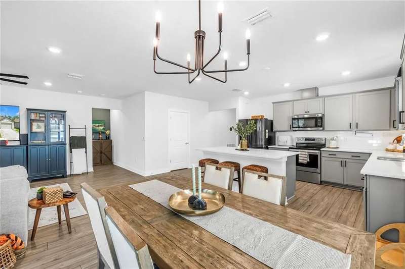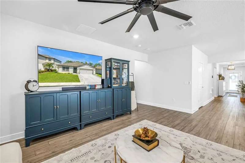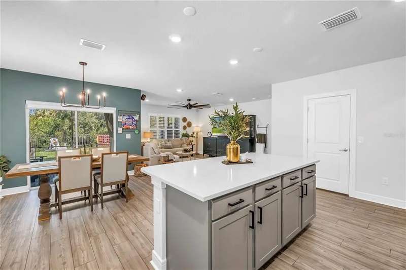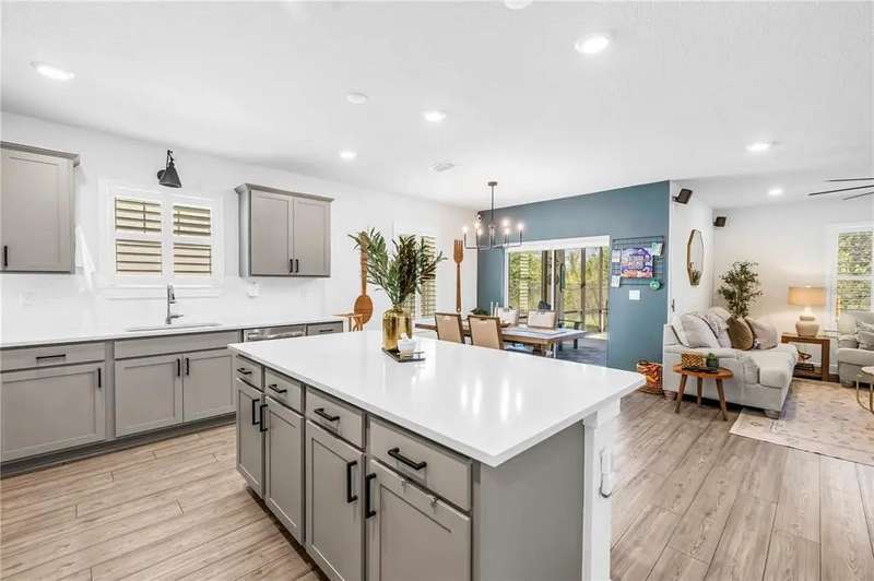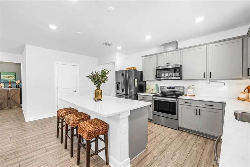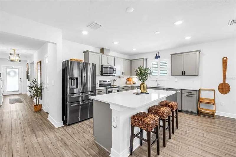 Welcome to this stunning Hanover model by Centex, built in 2019 and thoughtfully upgraded to balance Florida charm with modern function. Featuring 4 bedrooms, 2 full bathrooms, and a 2-car garage, this 1,844 SF home sits on a serene preserve lot and showcases an inviting open-concept design where the kitchen, dining, and living areas flow seamlessly together. The split floor plan offers flexibility with two guest bedrooms and a full bath up front, a third bedroom or office in the middle, and a private owner’s suite at the back complete with preserve views, a spacious walk-in closet, and a spa-like bath with dual vanities. Interior highlights include LVP flooring, quartz countertops, upgraded fixtures, feature walls, and plantation shutters, while functional upgrades such as a well-sized laundry room, epoxy-finished garage with mini split AC, expanded driveway, xeriscape landscaping, whole-home gutters, and a fully fenced yard with extended screened patio make the home move-in ready. Residents enjoy resort-style community amenities, including a luxurious pool with zero-entry access, fitness center, scenic trails, playground, and clubhouse with entertainment and gaming areas, all for a minimal $150 annual HOA fee. Ideally located in the booming Parrish community of Isles at BayView, this property offers quick access to I-75, placing Tampa, Sarasota, and St. Petersburg within easy reach, along with exciting growth in local dining, shopping, and a new hospital underway—making this more than a house, but a lifestyle upgrade waiting for its next owner. Schedule your future home tour today!