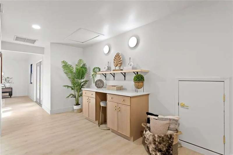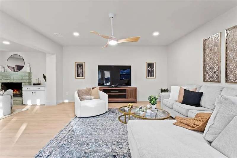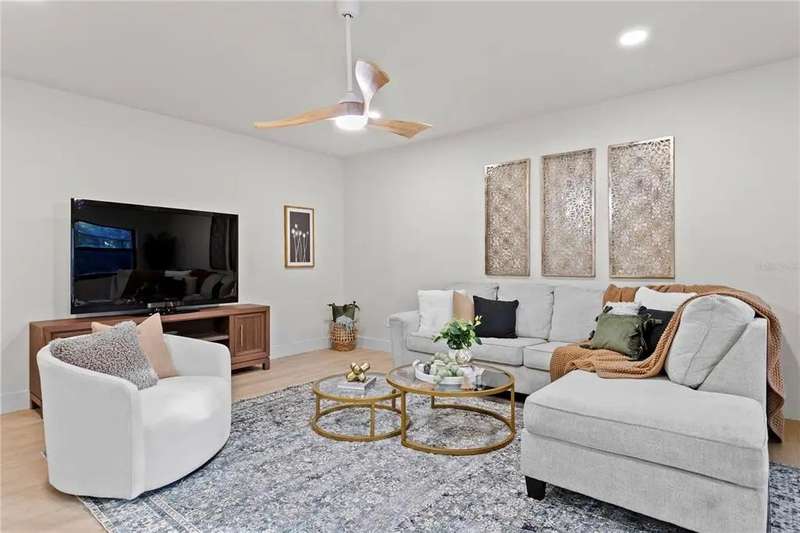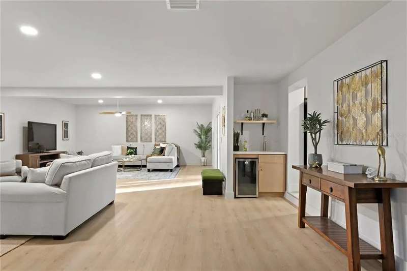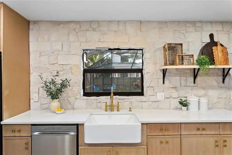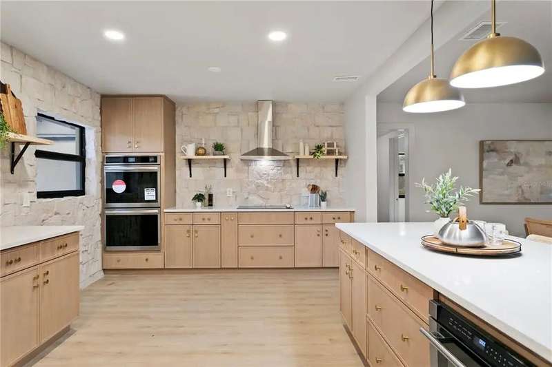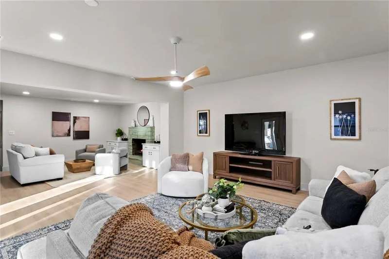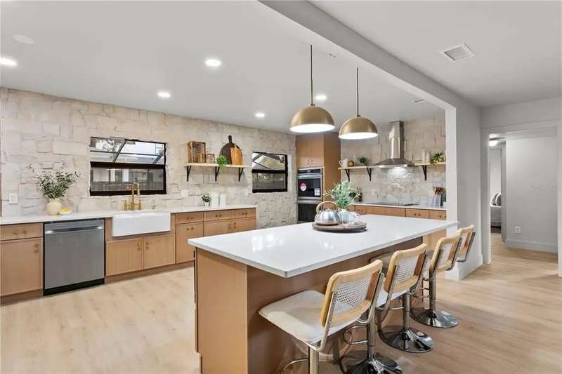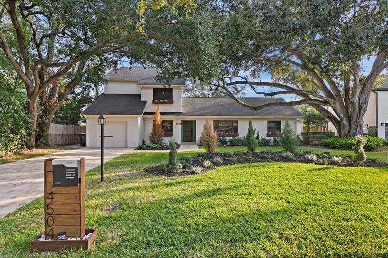 Experience modern elegance in this beautifully renovated 3-bedroom, 3-bath home, with an office, offering 3,291 sq. ft. of refined living space on a quarter-acre lot in the highly desirable Sunset Park neighborhood of South Tampa. Never Flooded and featuring a Brand-New Roof, this home combines timeless design with modern peace of mind. As you enter, you’re greeted by a designated dining area that opens to an expansive chef’s kitchen, featuring custom wood cabinetry, quartz countertops, stainless steel appliances, and a large entertainer’s island. Just off the kitchen, you’ll find two spacious guest bedrooms - one with an en suite bath - along with another full guest bathroom, offering comfort and privacy for family or visitors. On the opposite side of the kitchen, a cozy sitting area and wet bar lead into a large family room with a wood-burning fireplace, creating an inviting space for relaxing or entertaining. The adjoining living room flows seamlessly through glass doors to the screened-in pool and a backyard that features turfed landscaping and a charming pergola, perfect for outdoor dining, lounging, or entertaining year-round. Upstairs, the luxurious primary suite serves as a private retreat, featuring a balcony overlooking the pool, a freestanding soaking tub, double vanities, and a walk-in shower with designer tile. Also upstairs is a versatile space - ideal as a home office, nursery, gym, or media room - offering flexibility to suit your lifestyle. Additional highlights include all-new landscaping and sod, a brand-new driveway enhancing curb appeal. Located minutes from Downtown Tampa, premier shopping, dining, and major highways, and just 3 minutes to Kenneth E. Adum K-8 Magnet School and 4 minutes to Mabry Elementary, this move-in-ready home perfectly blends luxury, comfort, and versatile indoor-outdoor living in one of Tampa’s most coveted neighborhoods.
