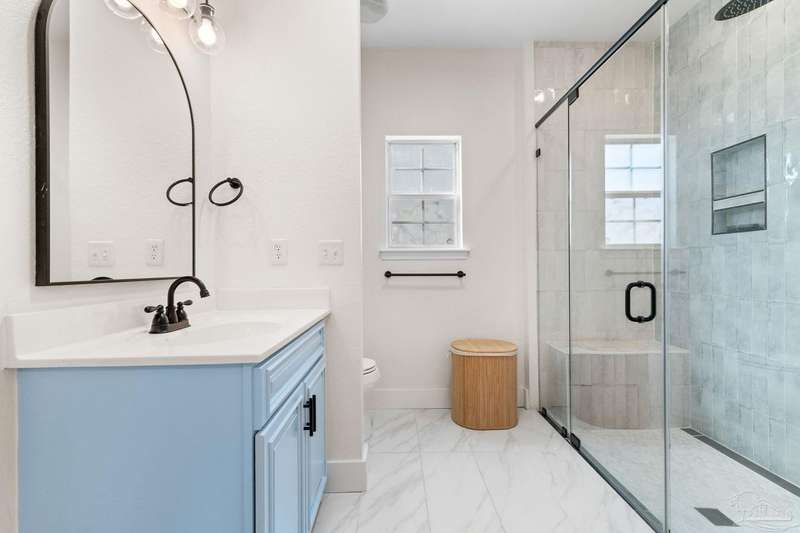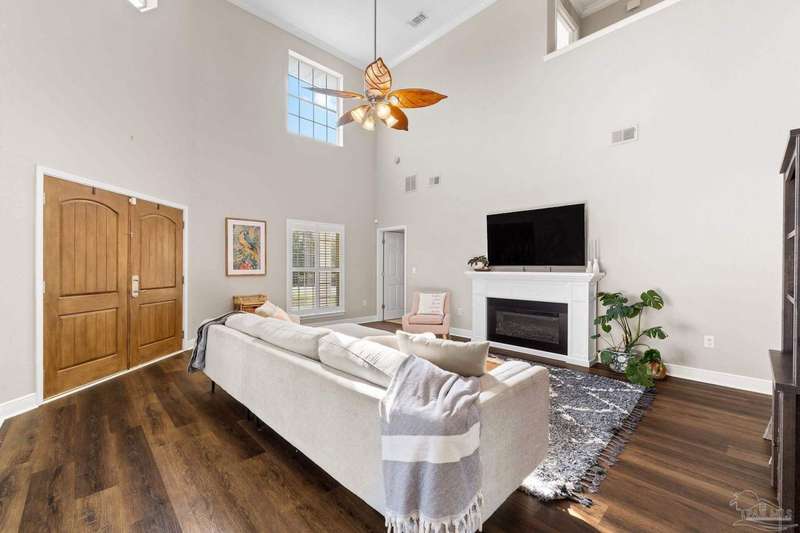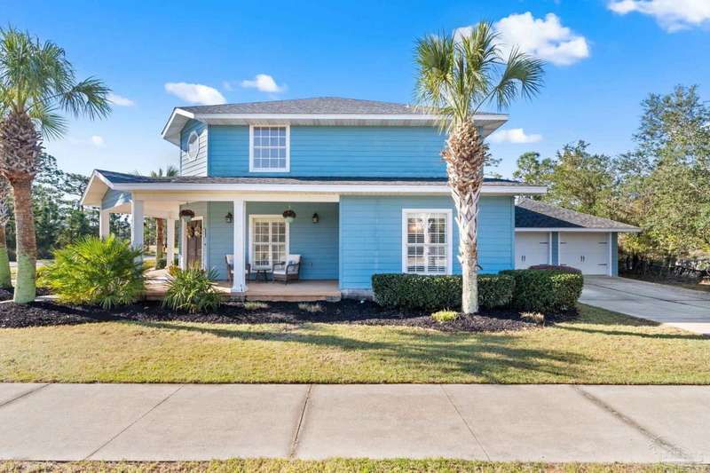 ASSUMABLE LOAN! Situated on a desirable corner lot, this breathtaking 4-bedroom, 3.5-bathroom coastal home is packed with luxurious updates! Step through the newly stained double wooden doors into a bright and airy living space, where soaring ceilings and brand-new wood-look flooring create a seamless and inviting atmosphere. The open layout flows effortlessly into the dining area and beautifully renovated kitchen, designed for both style and functionality. The kitchen is a true showpiece, featuring light quartz countertops, a breakfast bar, sleek stainless steel appliances, a stunning new backsplash, modern light fixtures, and stylish floating shelves for added charm and convenience. Located on the first floor, the spacious primary suite is a private retreat with double walk-in closets and oversized windows that fill the room with natural light. The newly remodeled ensuite bathroom is pure luxury, boasting a soaking tub, dual vanities, a beautifully tiled walk-in shower, and elegant new tile flooring. Additional highlights include a detached two-car garage, extra storage space, and a low-maintenance yard with a paved open patio-fantastic for relaxing or entertaining. Situated in a sought-after neighborhood just minutes from the beach, this home offers the ultimate coastal lifestyle. HOA amenities include a sparkling community pool, picnic area, and more. Don't miss this incredible opportunity-schedule your showing today and experience all this vibrant community has to offer!