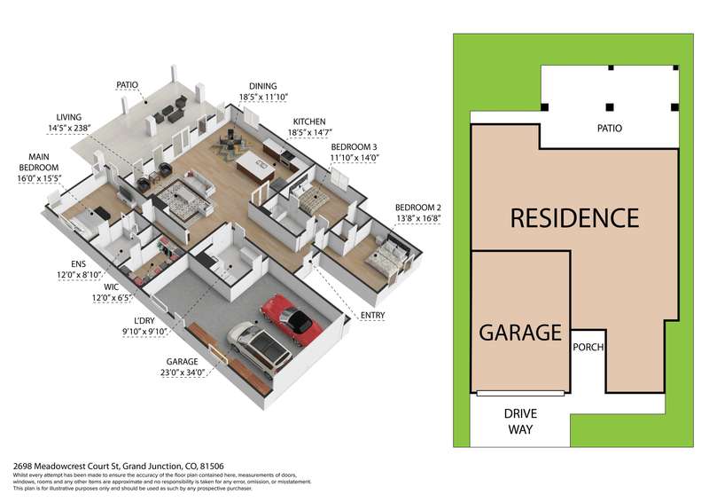 Experience refined living in this beautifully updated single-family home, perfectly situated in the sought-after Summerhill Subdivision. This 3-bedroom, 2-bathroom residence blends modern elegance with comfort and style. The open-concept layout and split floorplan create a seamless flow, ideal for both everyday living and entertaining. The living room features a cozy gas log fireplace, surrounded by tasteful finishes that elevate the home’s sophisticated ambiance. The chef-inspired kitchen opens to the dining and living areas, offering the perfect setting for gatherings. Step outside to your partially covered back patio, where views of the Summerhill community pond and the majestic Bookcliffs provide the ultimate backdrop for relaxation. The three-car tandem garage, complete with epoxy flooring, adds a touch of luxury and practicality. Impeccably maintained and thoughtfully designed, this home offers the best of modern comfort and scenic serenity—a true gem in one of the Grand Valley’s most desirable neighborhoods.
