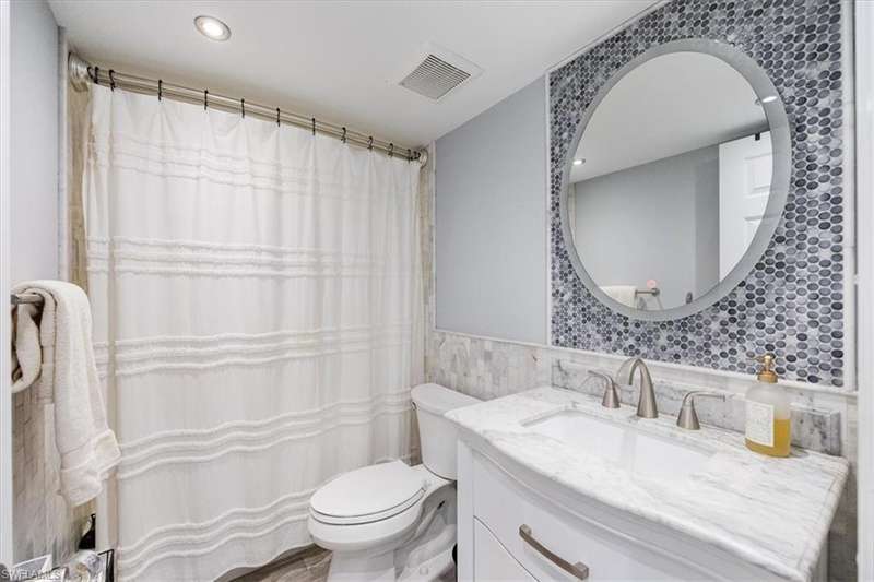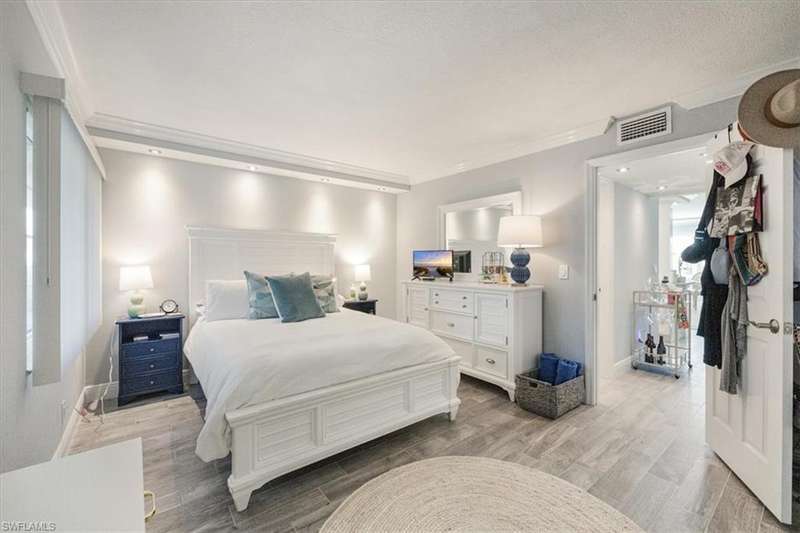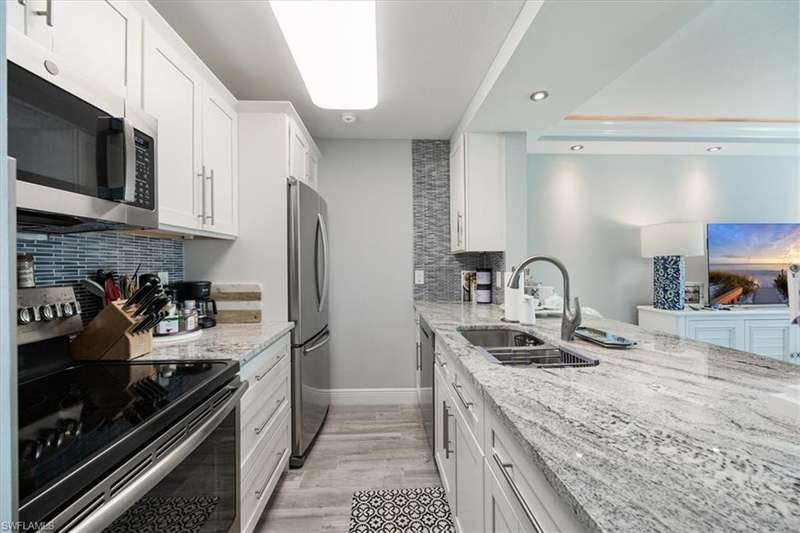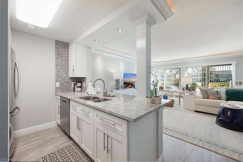 Welcome to your new home in paradise! This beautifully renovated, first floor condo is a serene retreat located in the heart of Naples, Florida, within a vibrant 55+ community. Boasting one spacious bedroom and a modern bathroom, this residence offers a perfect blend of comfort and coastal style. Step inside to discover a bright and airy open-concept living space, where newly updated features enhance both functionality and style. The nicely detailed living area opens into a contemporary kitchen with sleek appliances and stylish white cabinetry. The bedroom is a tranquil haven with ample closet space, and the renovated bathroom features a bath/shower with modern fixtures and lighting. The unit is steps away from the laundry facility and trash chute. The sparkling swimming pool is but a short walk to enjoy sunbathing and a dip in the water. Centrally located, this condo provides easy access to Naples finest dining, shopping, and cultural attractions, as well as pristine beaches and scen