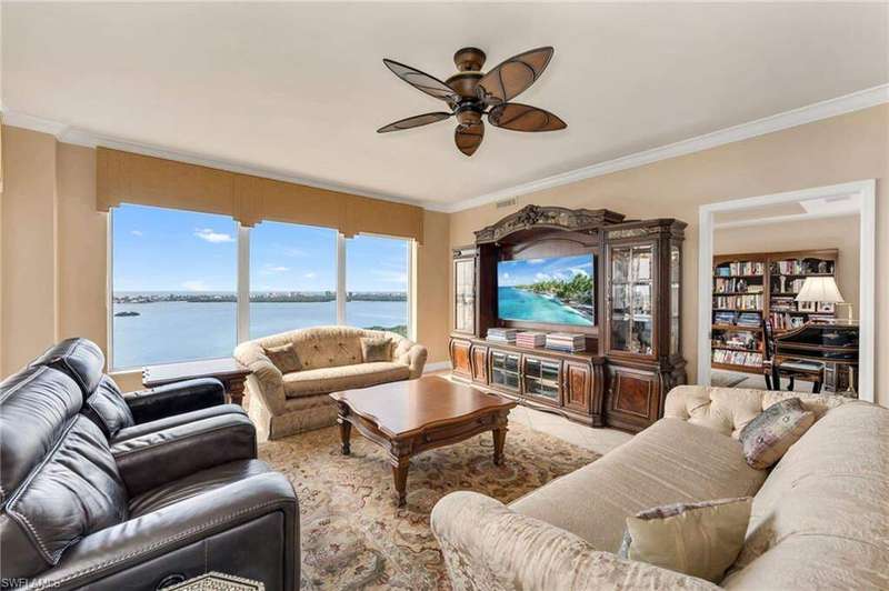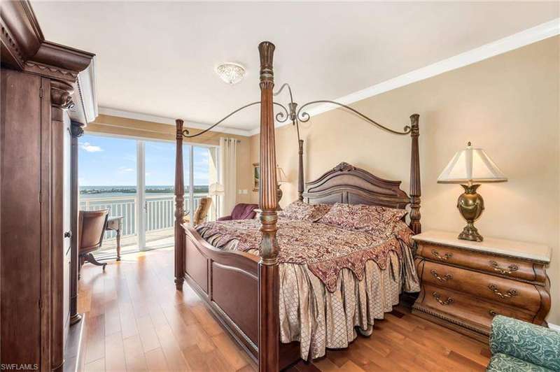 This fabulous spacious split floorplan, 17th floor residence, with upgrades, embodies the casual yet sophisticated lifestyle of SW Florida. Floor-to-ceiling sliding glass doors opening onto three west and south facing terraces provide spectacular views of Gulf of Mexico, Golf Courses and Estero Bay from every room! Watch the dolphins play in Estero Bay and enjoy fabulous sunsets over the Gulf of Mexico. Finishes include 18 inch tiles on the diagonal, crown molding, wood cabinetry with slide out shelving, granite counters. Aspiring chefs will love the spacious, centrally located kitchen with adjacent sun filled breakfast room. There are storm shutters on the screened terrace, and an infrared sauna in bathroom three. This residence comes with two parking spaces and separate storage area. Vistas offers 2 guest suites, updated communal areas with social and card rooms and fitness center. Vistas also has a spacious pool and spa with bar and grill area. Bonita Bay has 5 golf courses, 15 court tennis center 18,000 s.f. fitness center 8,000 s.f. Lifestyle spa & salon, full-service marina, Gulf front beach park, 6 restaurants, 15 pickle ball courts, crochet, bocce ball, canoeing, life enrichment center, 3 parks & more.