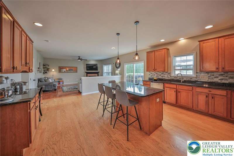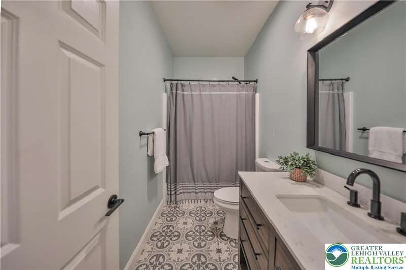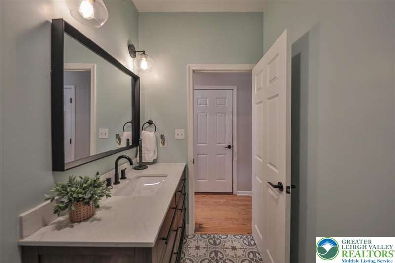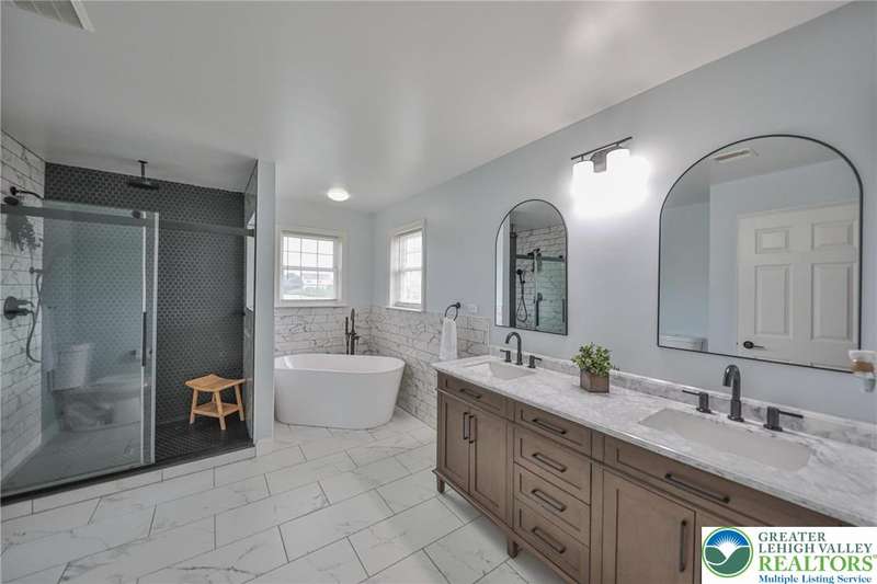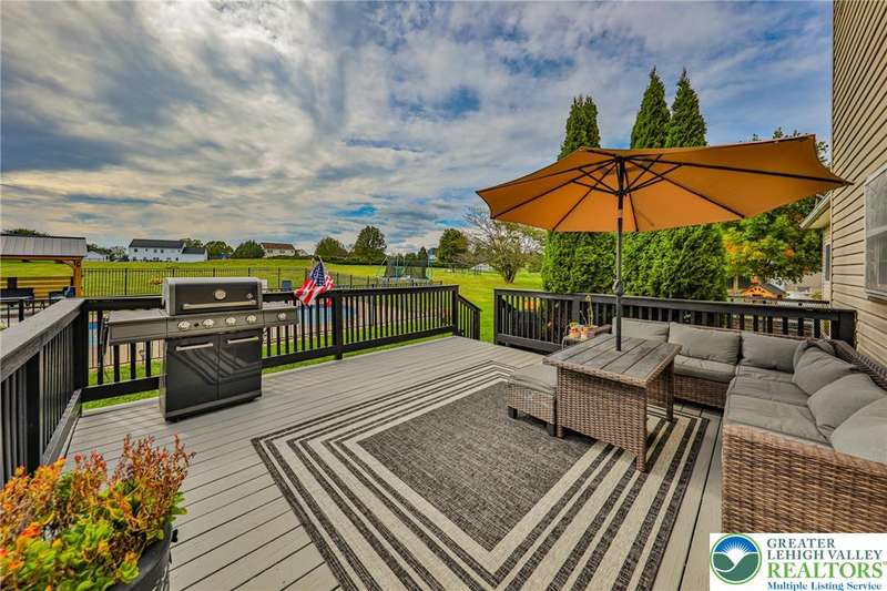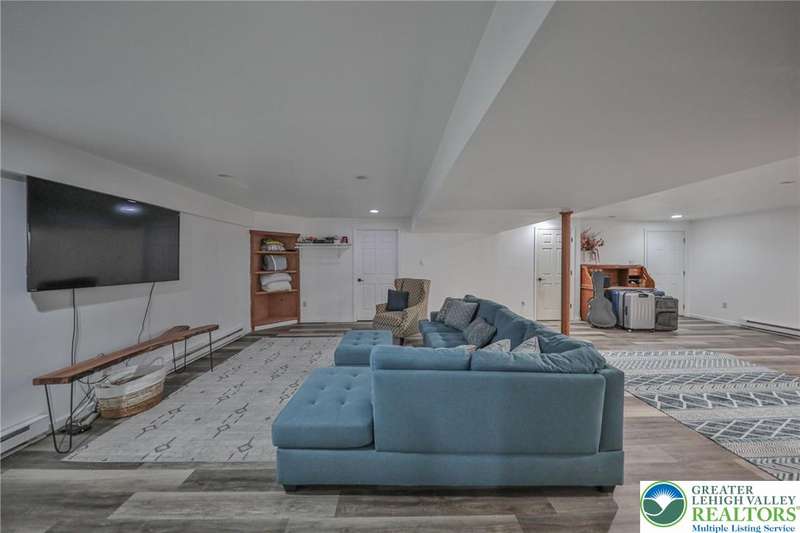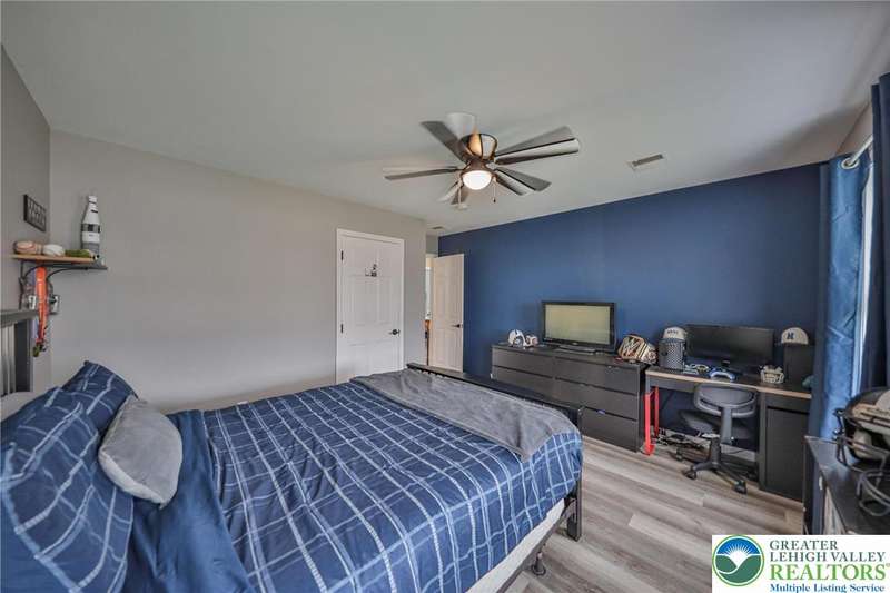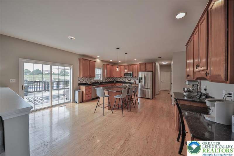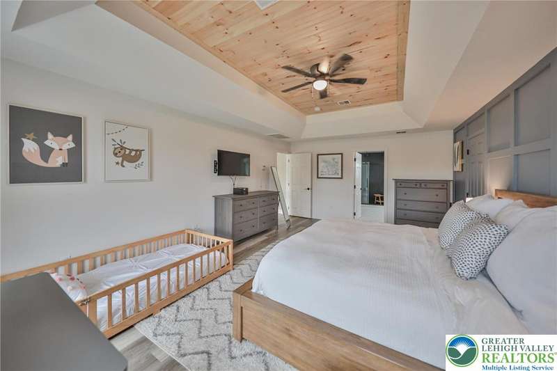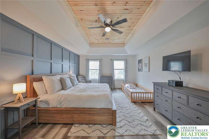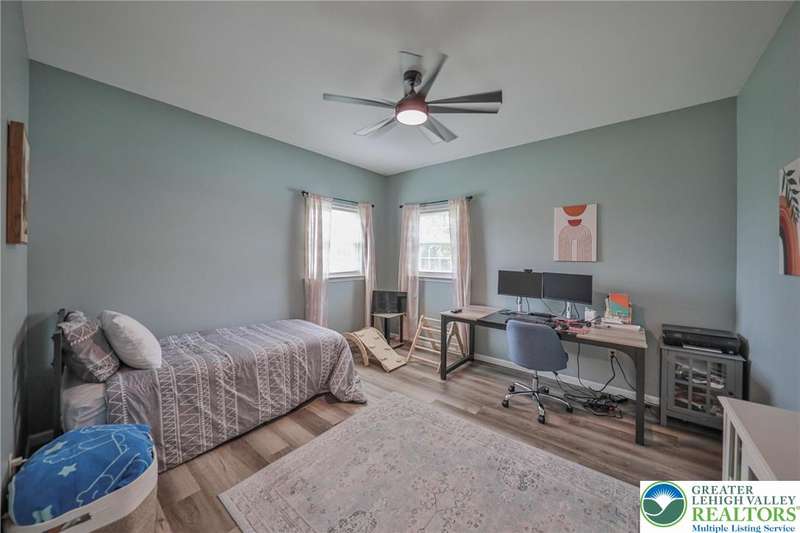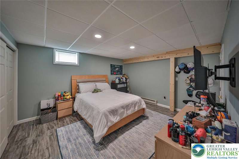 Beautiful Florey Farm 5 bedroom 3 full bath colonial, located in NAZARETH SCHOOL DISTRICT features plenty of updates and incredible space. You will love having a full bath and bedroom on the main floor which is perfect for guests or extended family! The elegant two story foyer entry showcases a formal dining room to the right accented with raised panel molding and modern chandelier, and a formal sitting room to the left, which could serve as an office space. A gas fireplace is the focal point of the open concept family room which leads to a well appointed eat in kitchen that comes with an oversized center island with additional seating. Every bathroom has been tastefully updated with modern flair. The flooring is newer throughout most of the home, including LVP, and Bruce hardwood flooring encompassing the formal dining and living rooms as well as the family room. The master bedroom features stunning tray ceiling with wood accents, and raised panel molding, walk in closet, and a recently renovated designer ensuite with step in shower with glass doors, luxurious soaking tub, and modern dual vanity. The full finished basement also has an expansive family room plus an additional two more rooms perfect for office/den. Enjoy back yard bbq sitting on the deck that overlooks a dreamy backyard and a fabulous inground pool and new cabana. Plenty of room to roam, garden, and enjoy here.