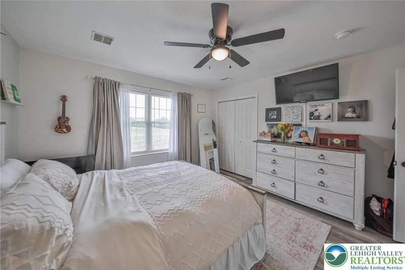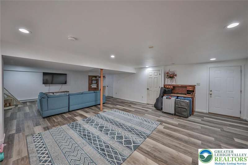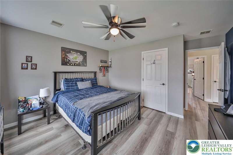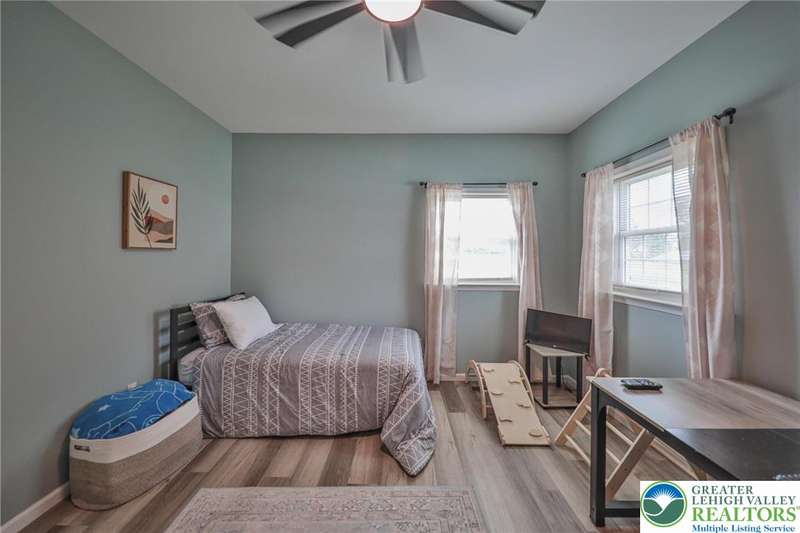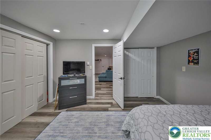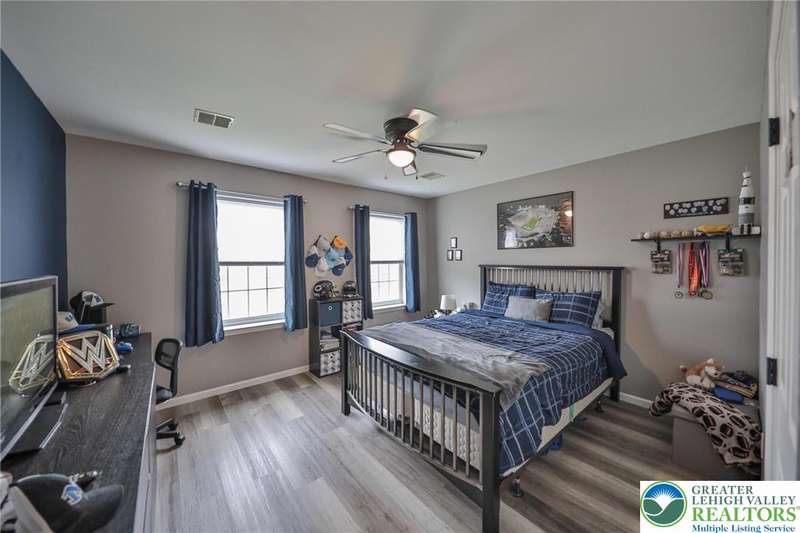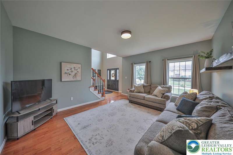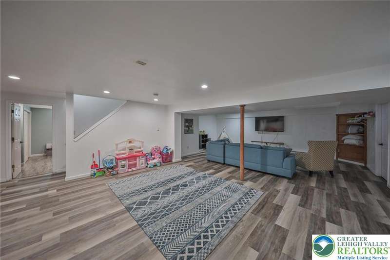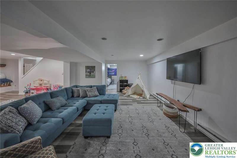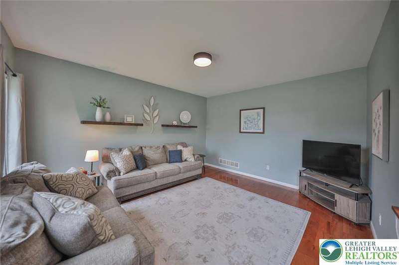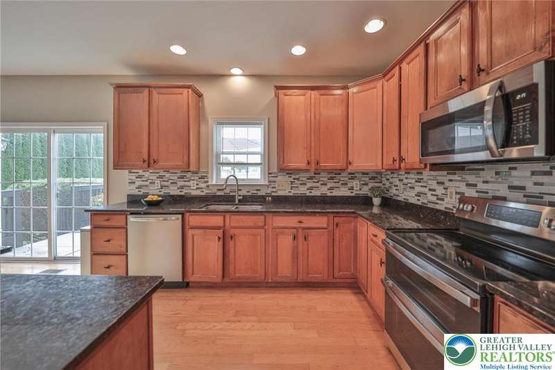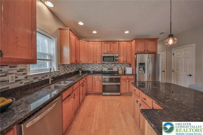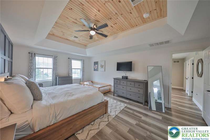 Beautiful Florey Farm 5 bedroom 3 full bath colonial, located in NAZARETH SCHOOL DISTRICT features plenty of updates and incredible space. You will love having a full bath and bedroom on the main floor which is perfect for guests or extended family! The elegant two story foyer entry showcases a formal dining room to the right accented with raised panel molding and modern chandelier, and a formal sitting room to the left, which could serve as an office space. A gas fireplace is the focal point of the open concept family room which leads to a well appointed eat in kitchen that comes with an oversized center island with additional seating. Every bathroom has been tastefully updated with modern flair. The flooring is newer throughout most of the home, including LVP, and Bruce hardwood flooring encompassing the formal dining and living rooms as well as the family room. The master bedroom features stunning tray ceiling with wood accents, and raised panel molding, walk in closet, and a recently renovated designer ensuite with step in shower with glass doors, luxurious soaking tub, and modern dual vanity. The full finished basement also has an expansive family room plus an additional two more rooms perfect for office/den. Enjoy back yard bbq sitting on the deck that overlooks a dreamy backyard and a fabulous inground pool and new cabana. Plenty of room to roam, garden, and enjoy here.