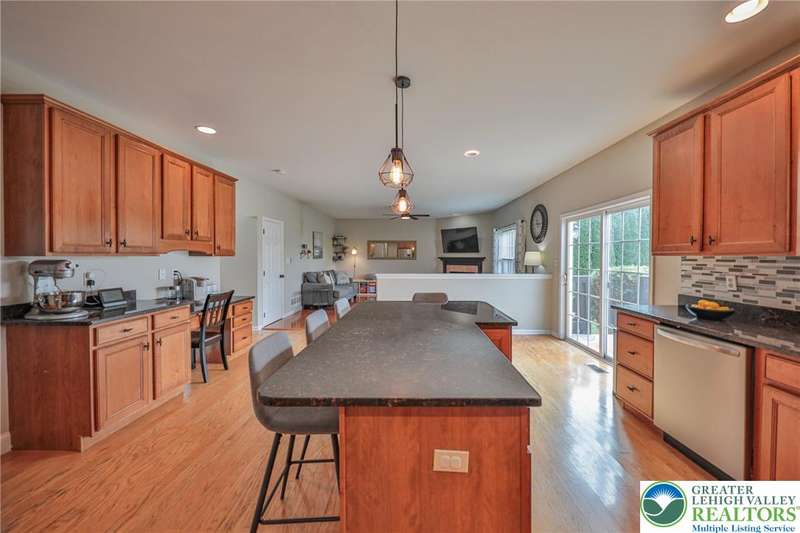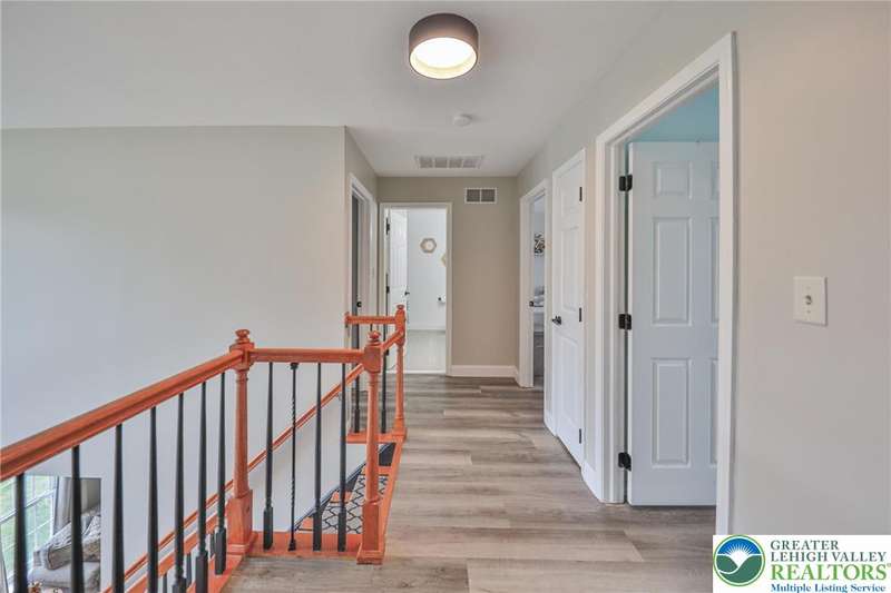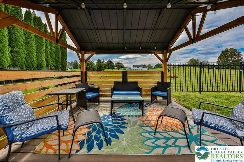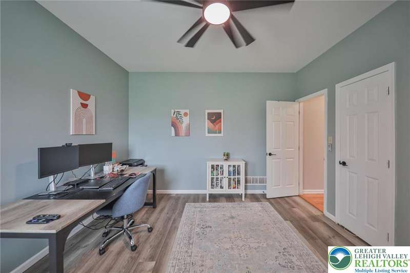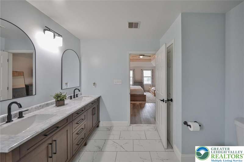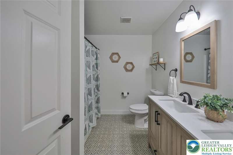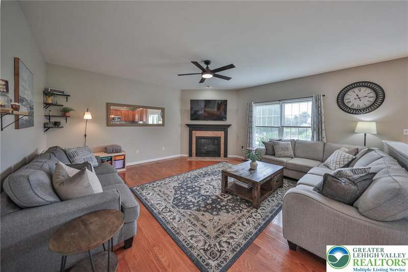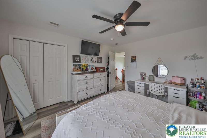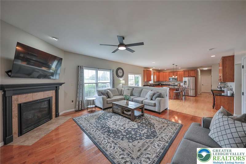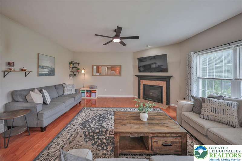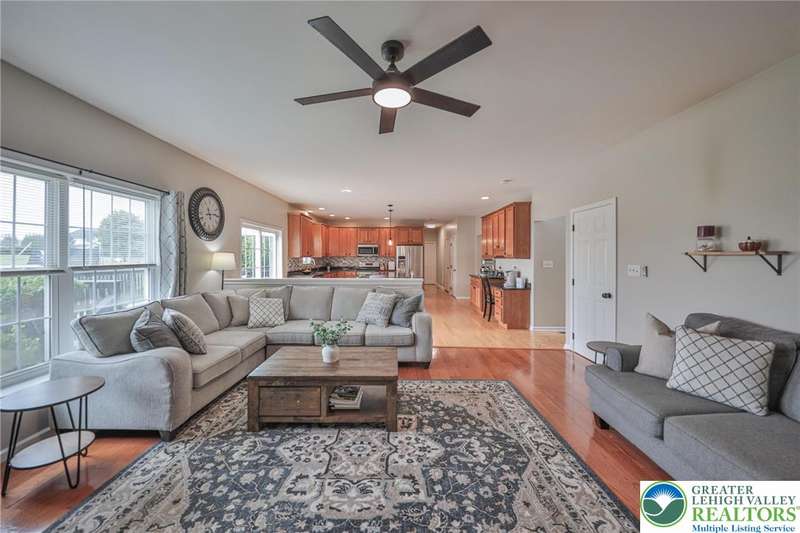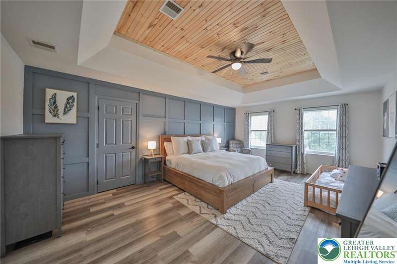 Beautiful Florey Farm 5 bedroom 3 full bath colonial, located in NAZARETH SCHOOL DISTRICT features plenty of updates and incredible space. You will love having a full bath and bedroom on the main floor which is perfect for guests or extended family! The elegant two story foyer entry showcases a formal dining room to the right accented with raised panel molding and modern chandelier, and a formal sitting room to the left, which could serve as an office space. A gas fireplace is the focal point of the open concept family room which leads to a well appointed eat in kitchen that comes with an oversized center island with additional seating. Every bathroom has been tastefully updated with modern flair. The flooring is newer throughout most of the home, including LVP, and Bruce hardwood flooring encompassing the formal dining and living rooms as well as the family room. The master bedroom features stunning tray ceiling with wood accents, and raised panel molding, walk in closet, and a recently renovated designer ensuite with step in shower with glass doors, luxurious soaking tub, and modern dual vanity. The full finished basement also has an expansive family room plus an additional two more rooms perfect for office/den. Enjoy back yard bbq sitting on the deck that overlooks a dreamy backyard and a fabulous inground pool and new cabana. Plenty of room to roam, garden, and enjoy here.