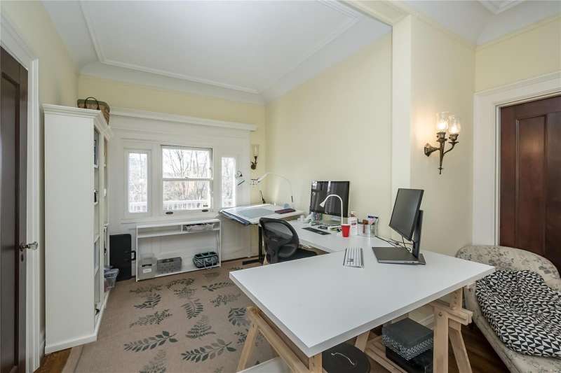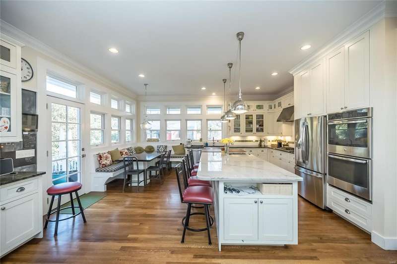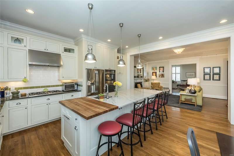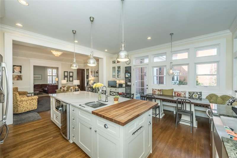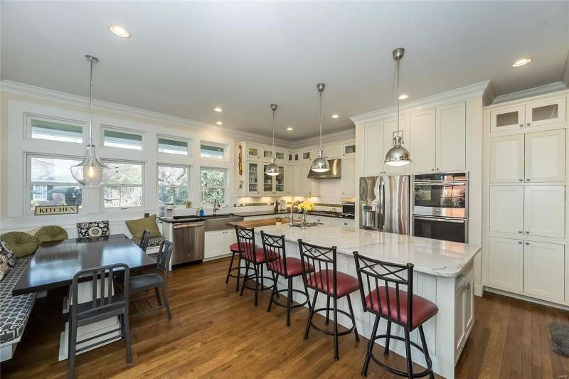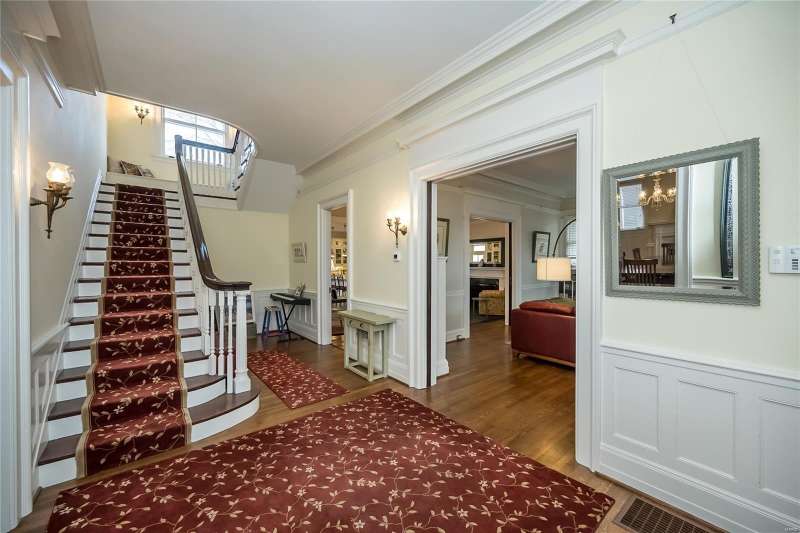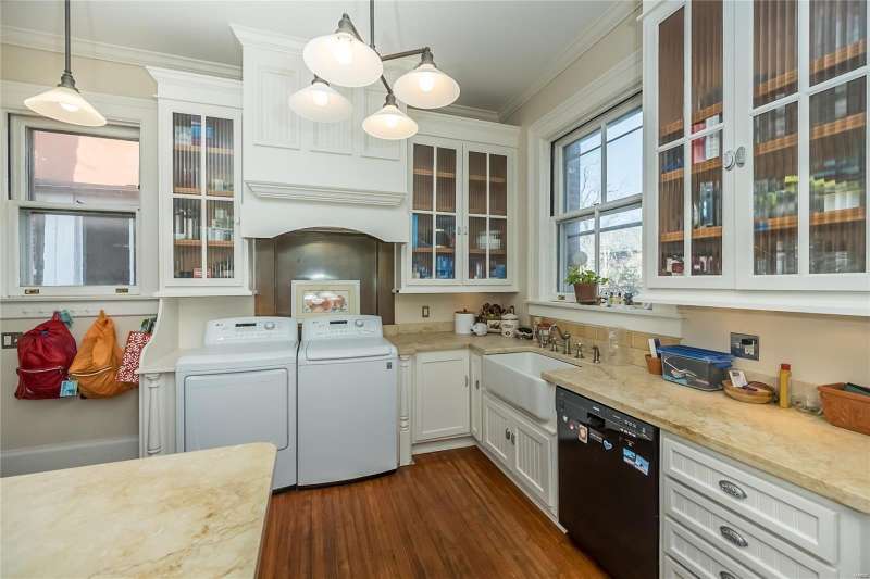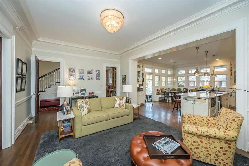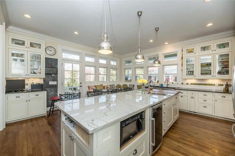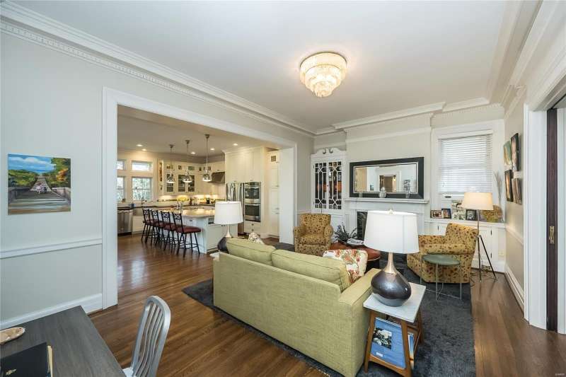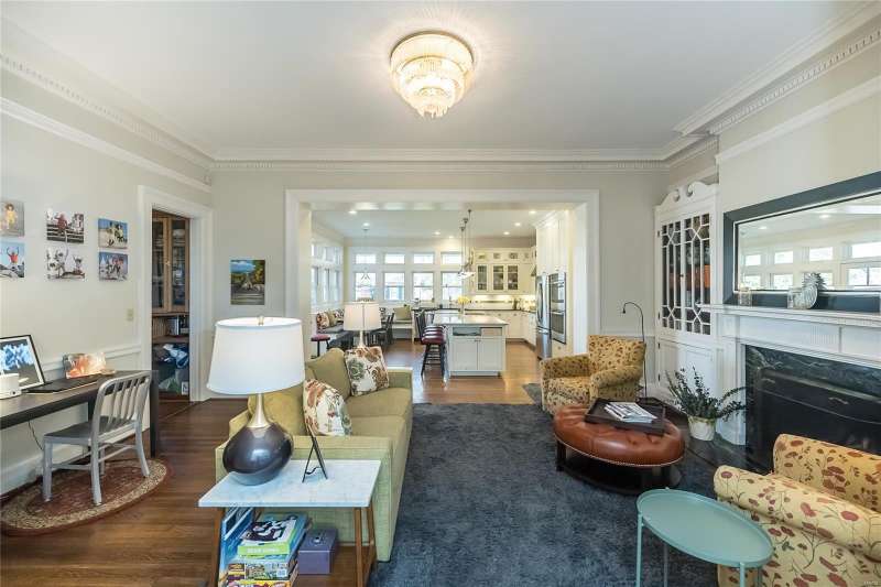 Perfectly situated on a premier private street, this handsome Georgian-style residence features remarkable architectural detail including a gracious center-hall staircase, original millwork, fireplace mantels, built-in bookcases, hardwood floors, and has been lovingly updated by its current owners. Substantial improvements include a large kitchen addition with SS appliances, center island, built-in dining area, an updated primary bathroom, plus two additional updated bathrooms, newer HVAC systems on all three floors, a first floor laundry and mud room, a backyard patio and extensive landscaping improvements including an in-ground irrigation system and landscape lighting. An oversize 3 car garage with private alley entrance. This exceptional home has been meticulously cared for. A true architectural gem.