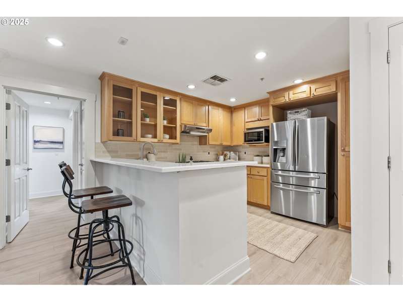 OPEN HOUSE SAT 9/6 10:30A-12:30PM! WOW! 3 BEDROOMS ON ONE LEVEL FOR UNDER $500K! In Portland, we’re lucky to have the Willamette River as our backyard playground. In the charming Sellwood neighborhood, water-lovers stroll the streets, but the real enthusiasts know about Riverpark Condominiums—a hidden gem offering adventures by foot, bike, or kayak. Glide along the Willamette’s eastern shore, enjoy the sparkle of city lights at night, or explore Sellwood Park with its pickleball courts, picnic spots, and more. Hungry? Gino’s will serve you the coziest spaghetti in town.Welcome to Riverpark! This stunning one-level condo offers 1,559 square feet of stylish living space, featuring 3 bedrooms and 2 full baths. New waterproof luxury vinyl flooring flows through most of the home, and the spacious living room boasts high ceilings, built-ins, and a cozy gas fireplace. Two private balconies invite summer breezes and al fresco dining.The primary suite is a retreat with ample closet space and a luxurious ensuite with double sinks, a soaking tub, and a shower. Two additional bedrooms offer flexibility for guests, a home office, or a gym. The kitchen is a chef’s dream, with quartz countertops, subway tile, stainless appliances, and a breakfast bar. Host Thanksgiving in the formal dining area and create memories that last.Riverpark’s amenities include a community room, outdoor patio, and two deeded parking spaces—plus rare guest parking! The well-managed HOA ensures carefree living. Discover the perfect blend of nature and city life. Welcome home to Riverpark Condominiums!